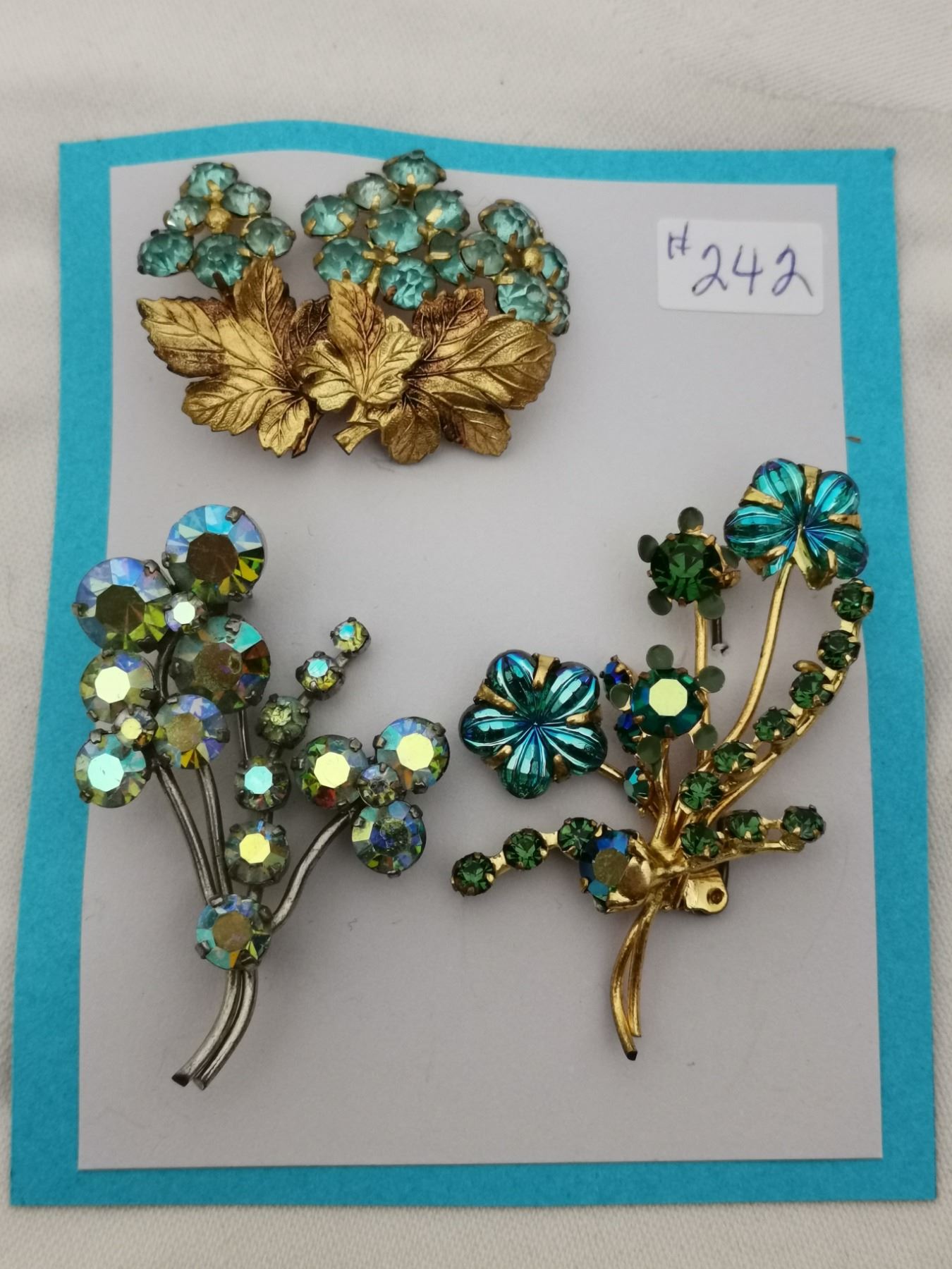 Card of 3 “blue” rhinestone broaches