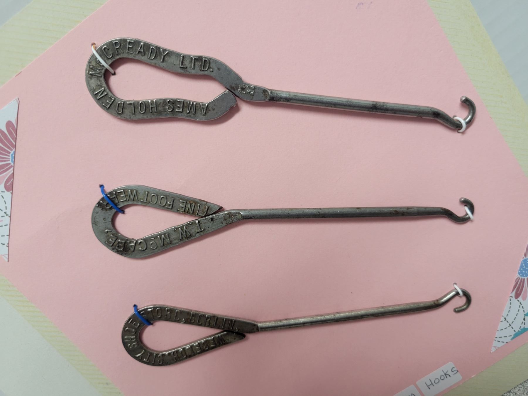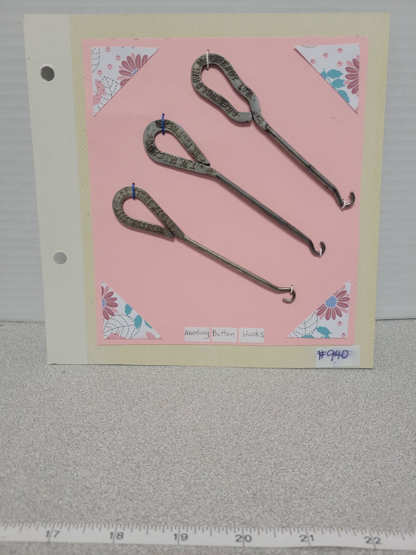 Card of advertising button hooks