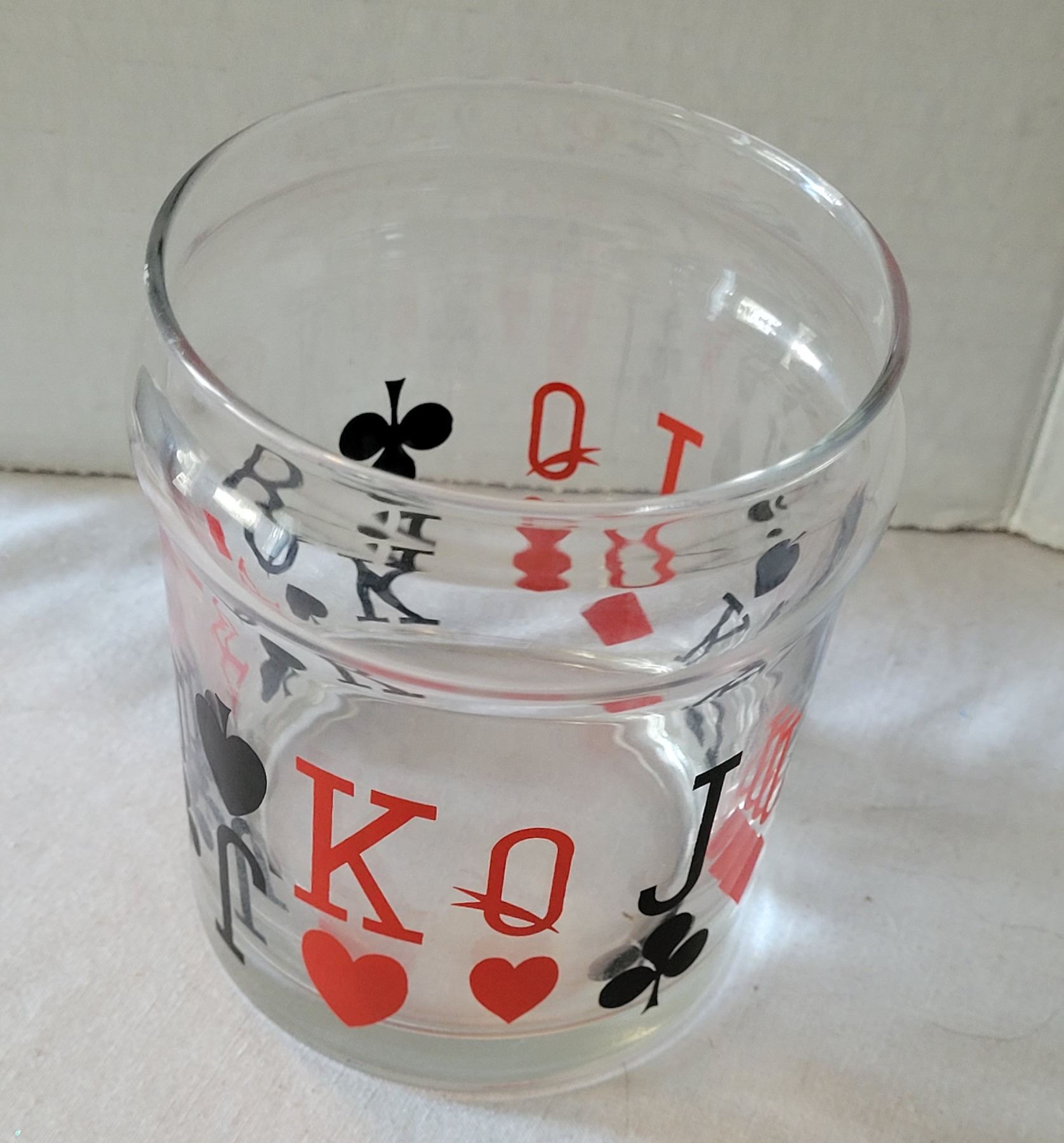 Card players vtg. “Suits of Kings” glassware & nut jar.