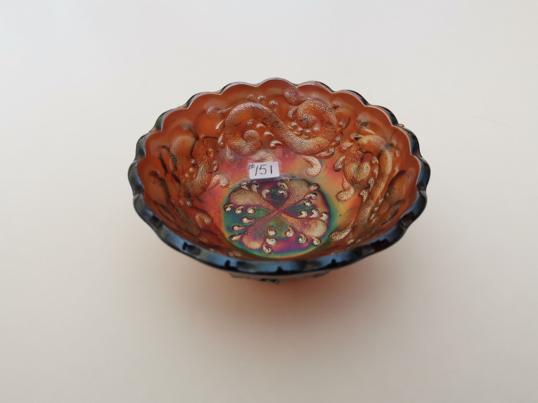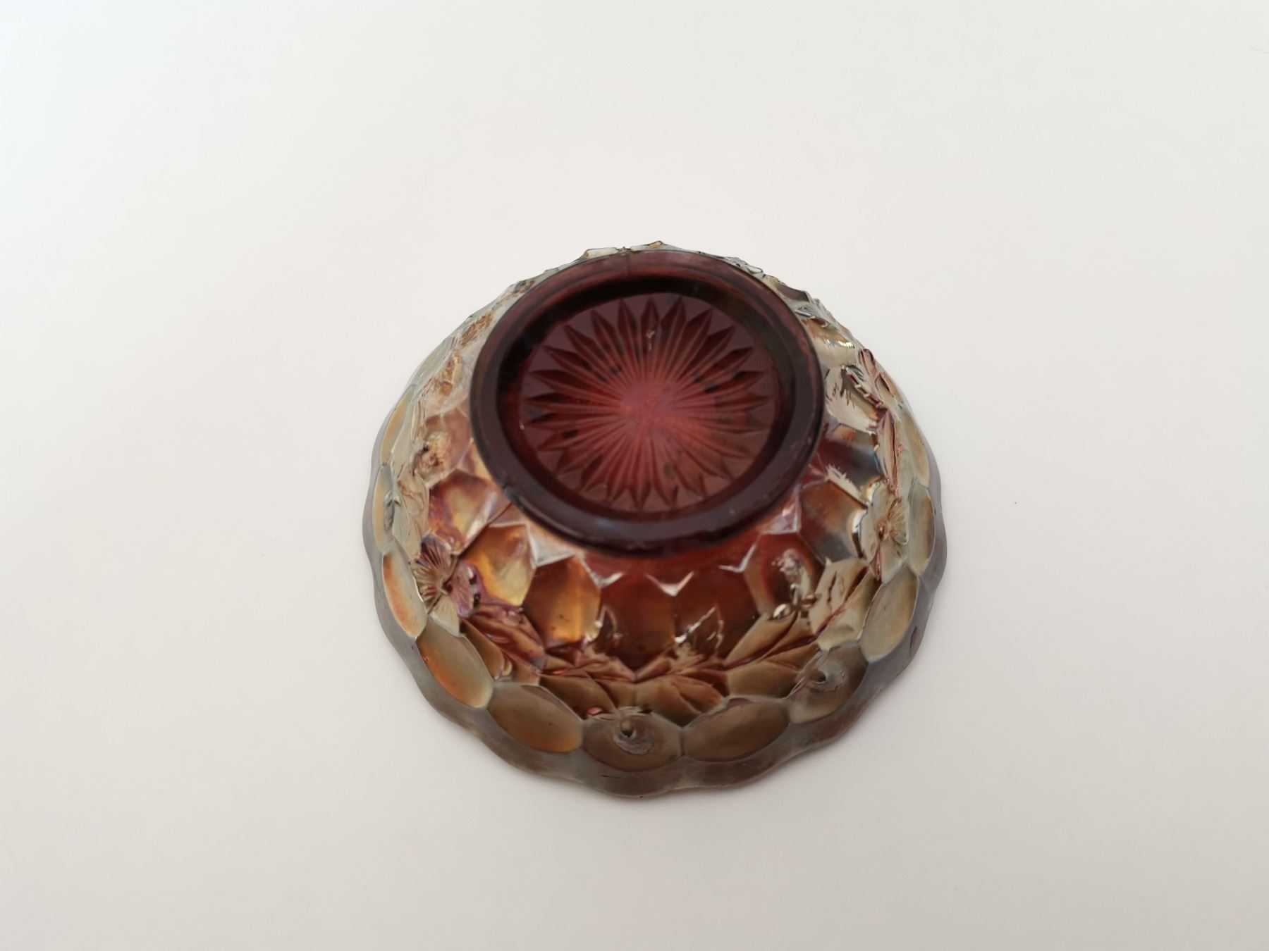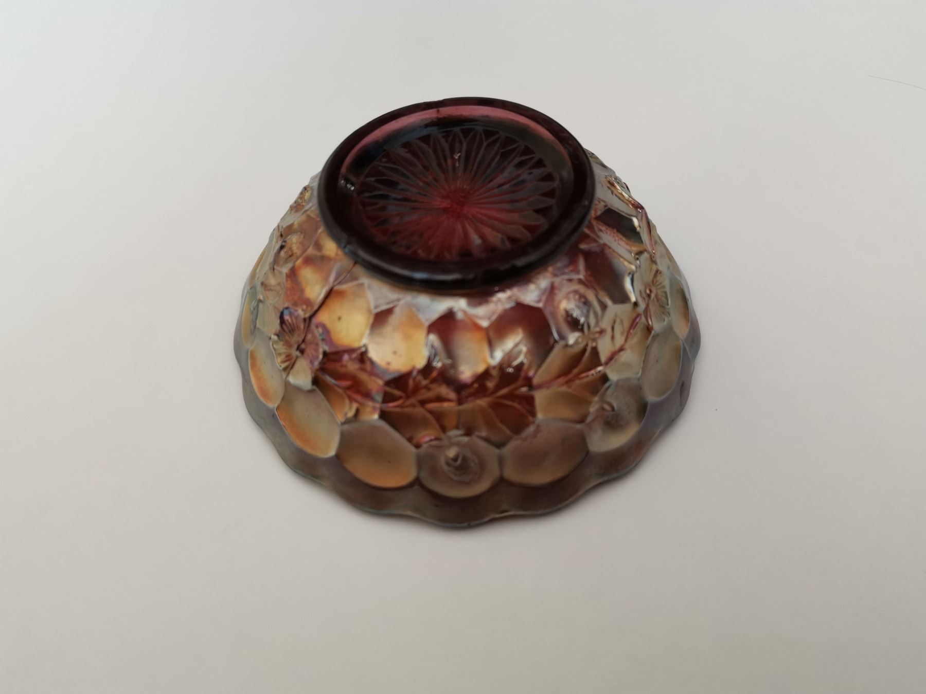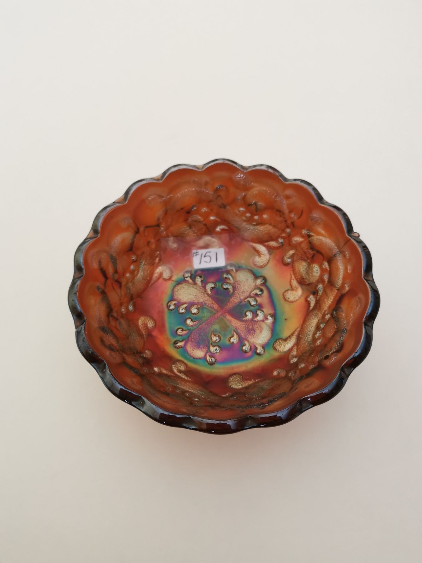 Carnival Glass fruit nappy, “Feathered Serpent”, 5”, Fenton Glass, 1910