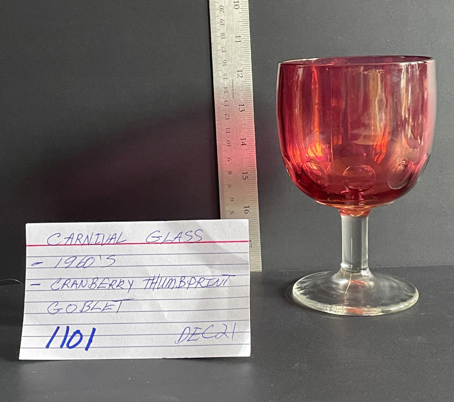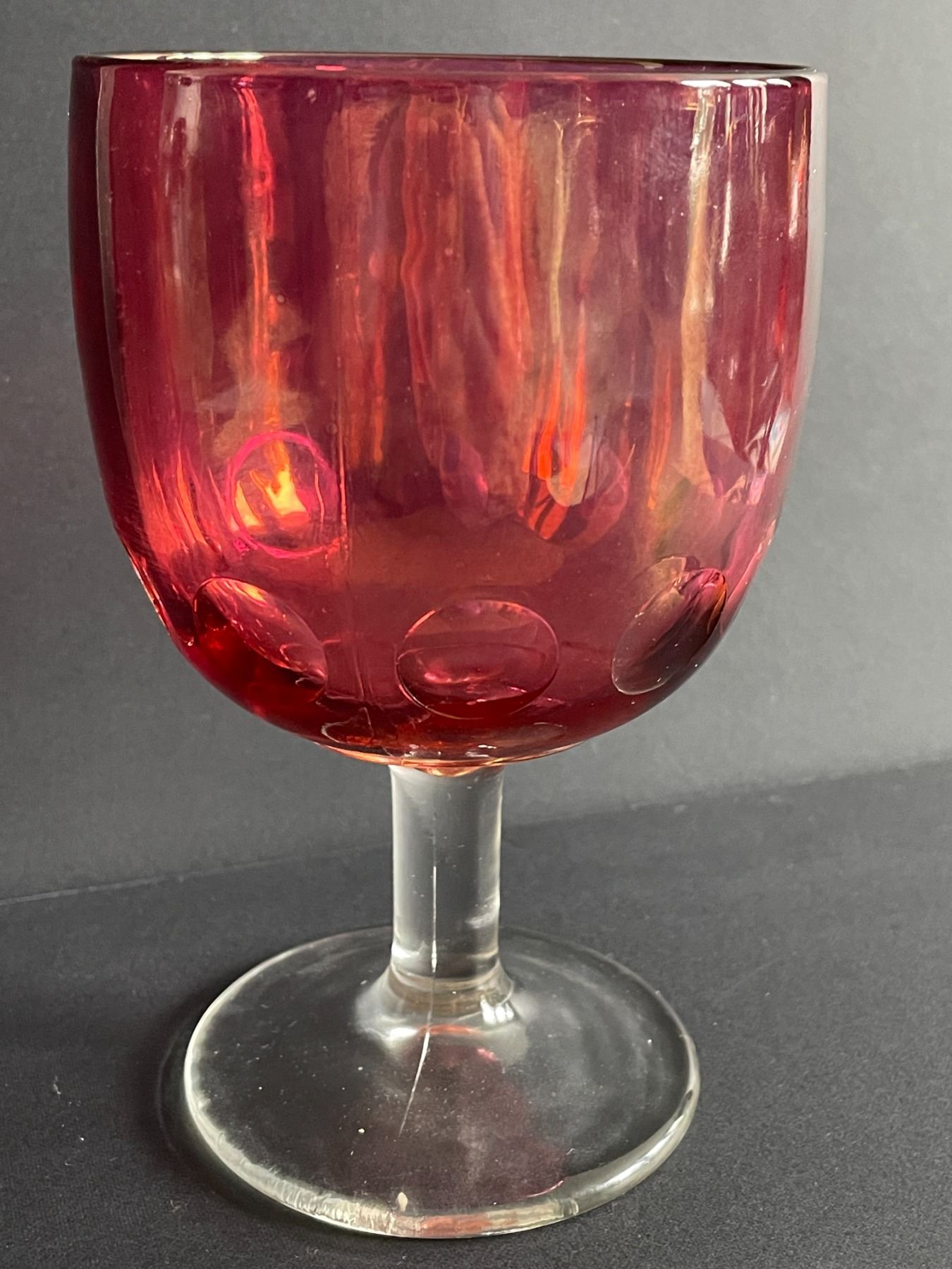 Carnival glass, cranberry goblet