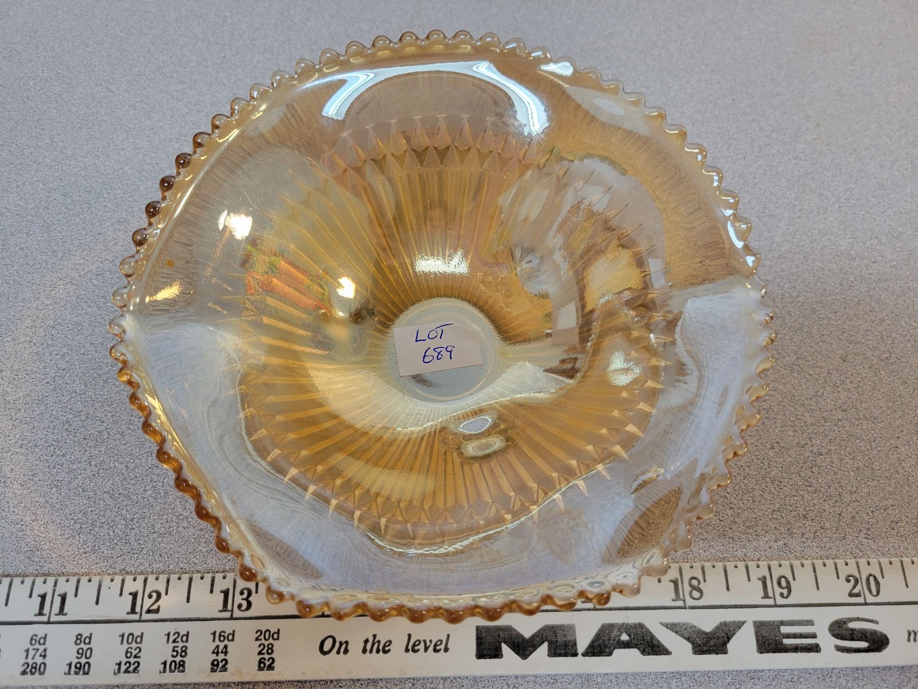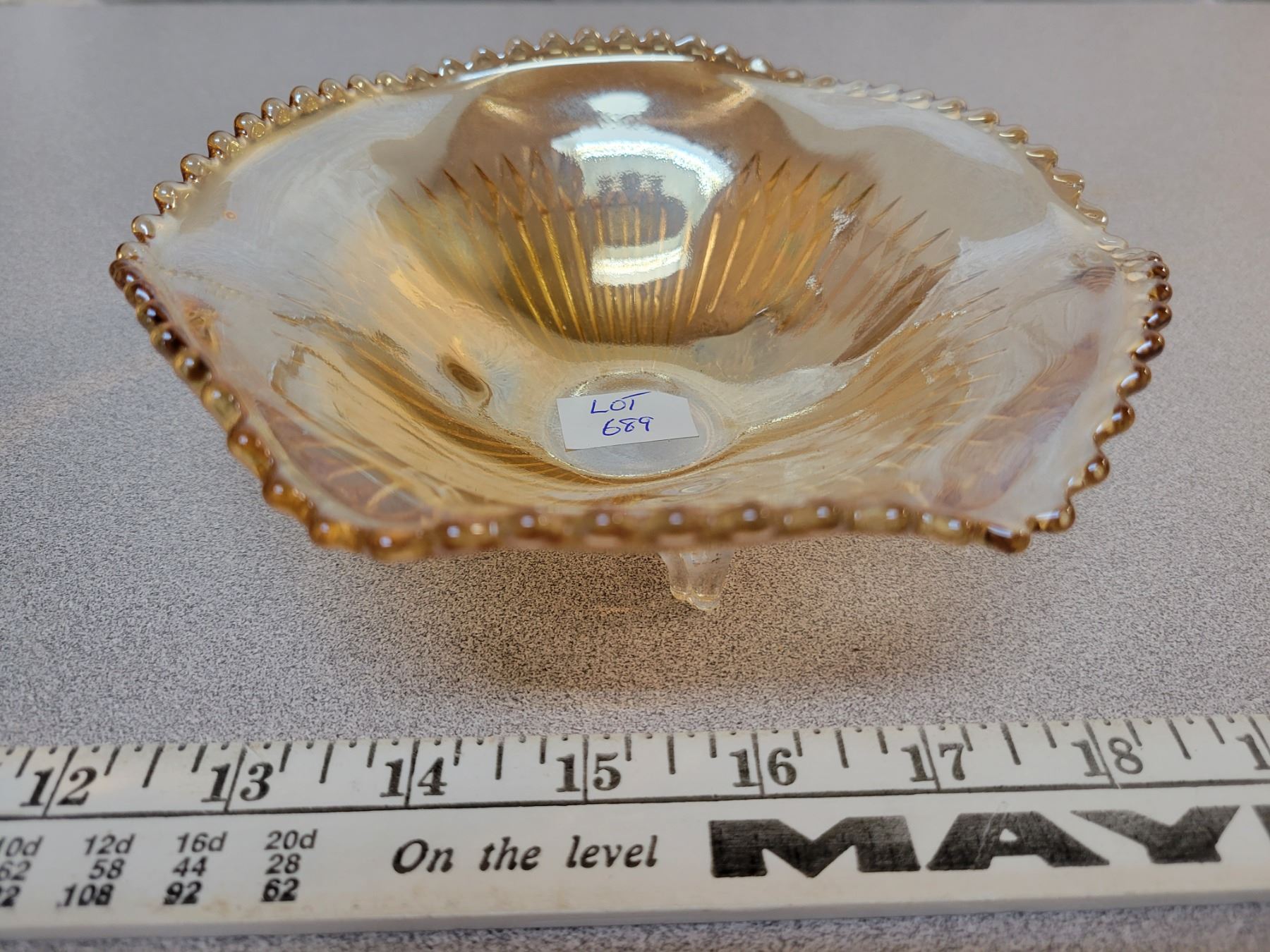Carnival glass footed bowl