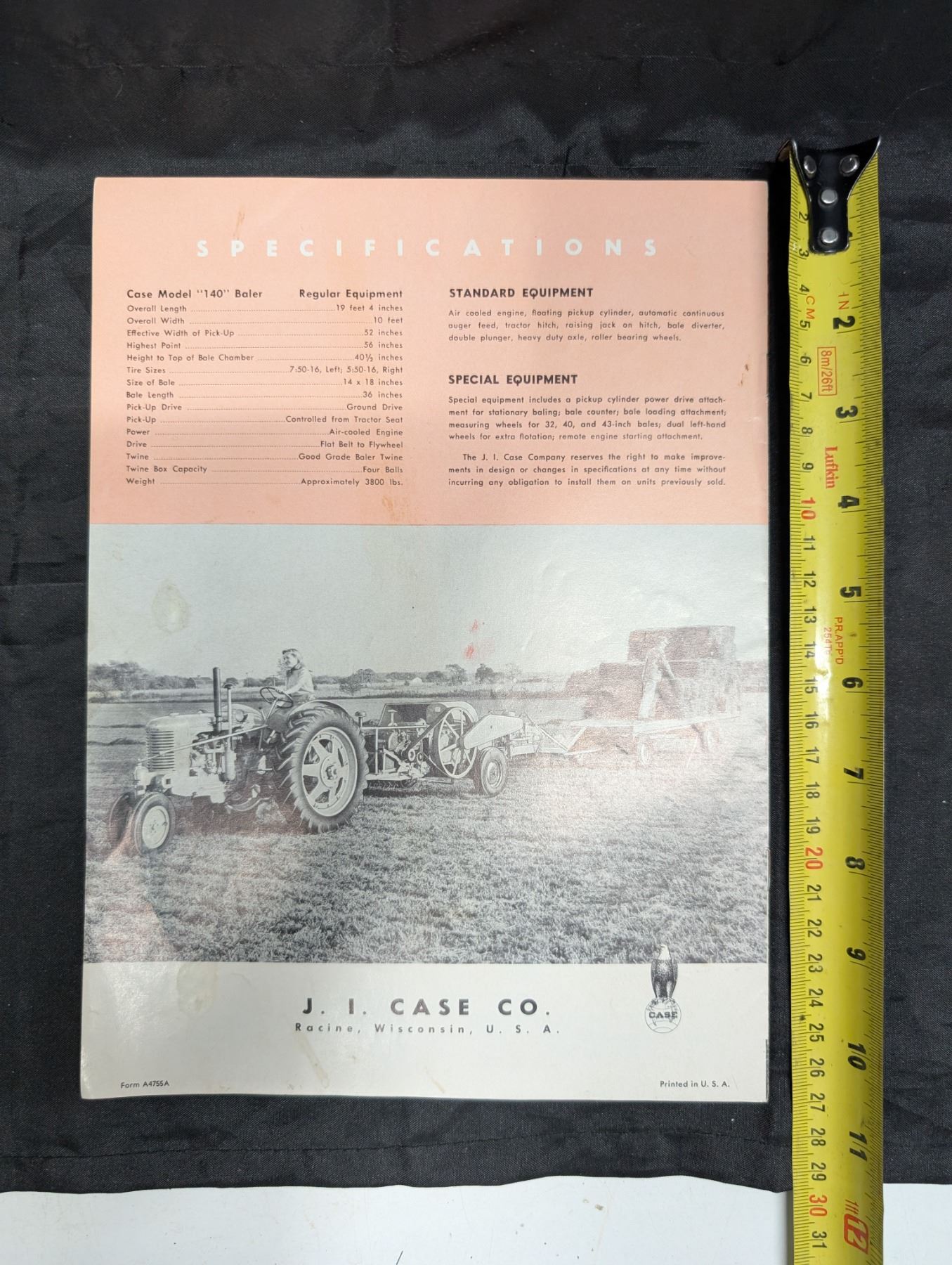Case 140 Bale W/ a Case Brochure