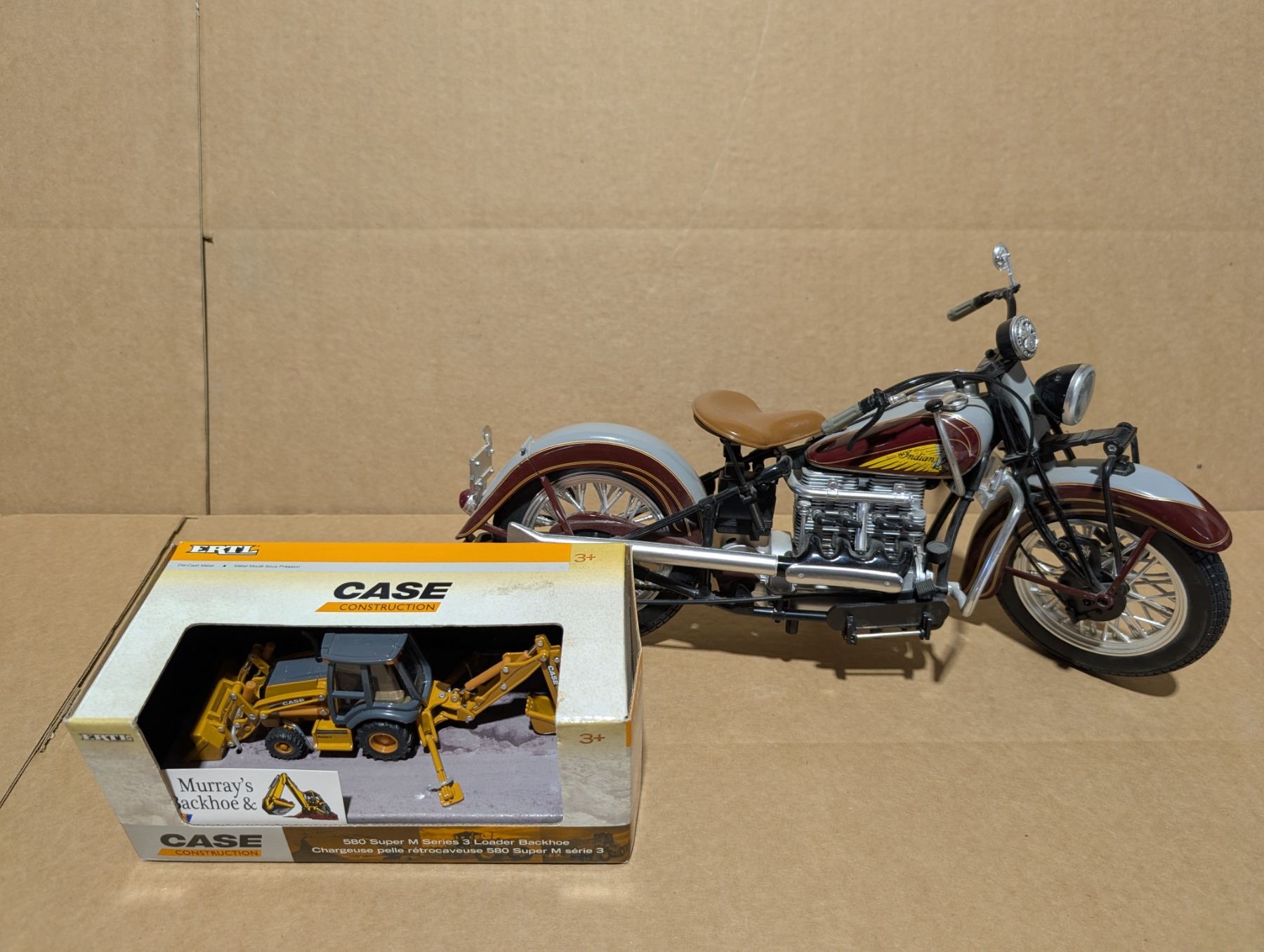 Case Construction Die Cast 1/50 Model and Plastic Indian Motorcycle Model