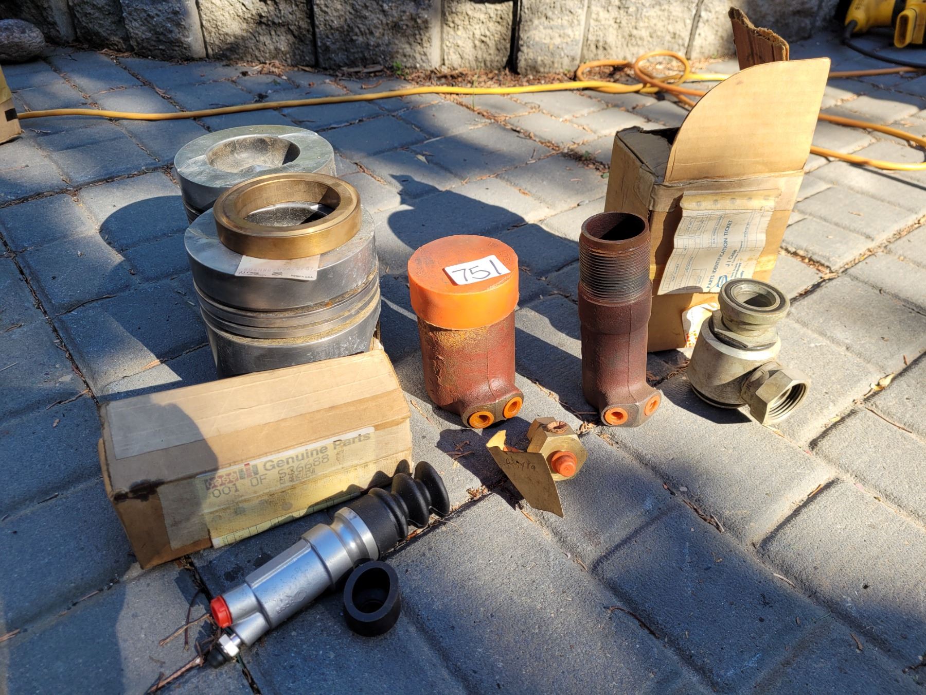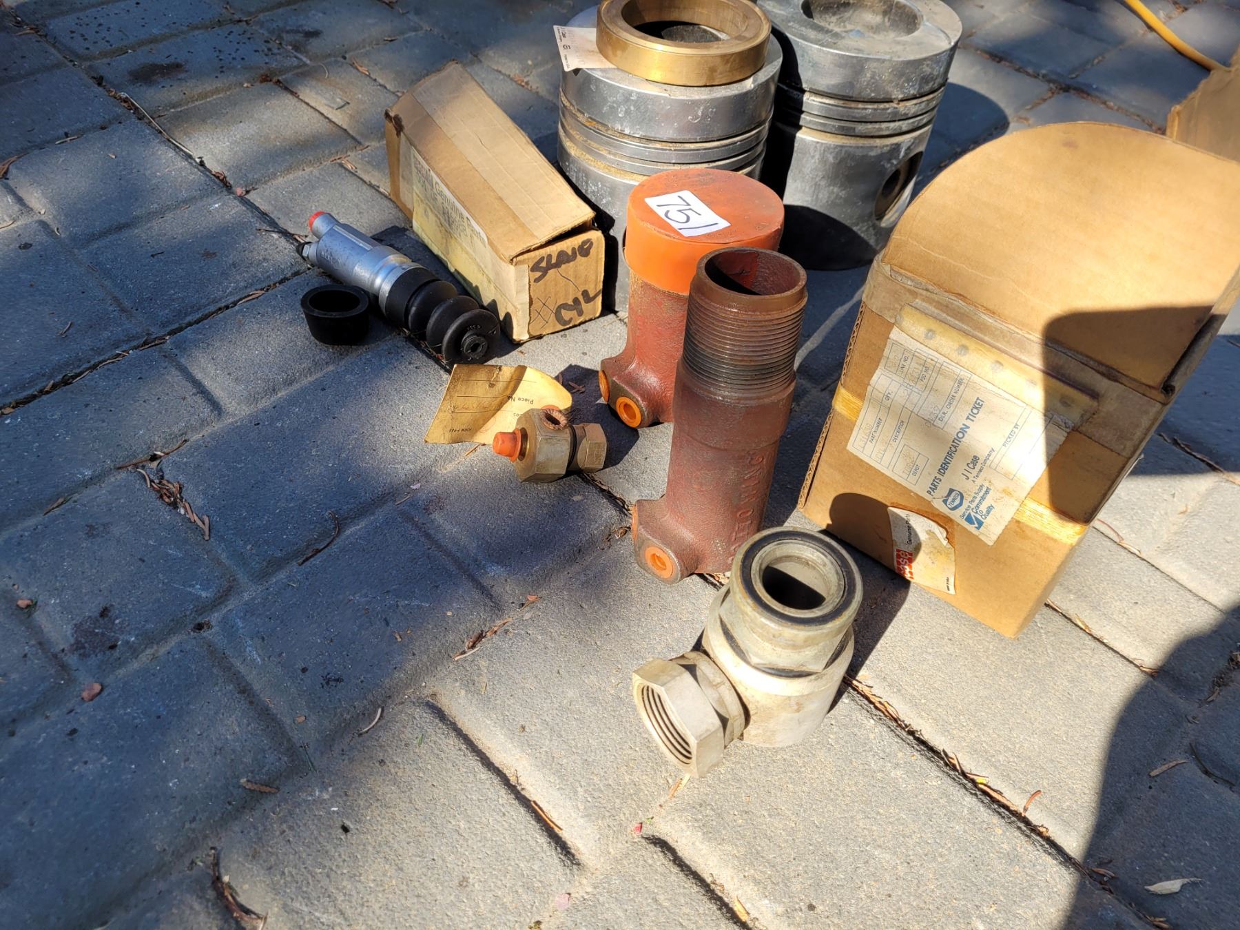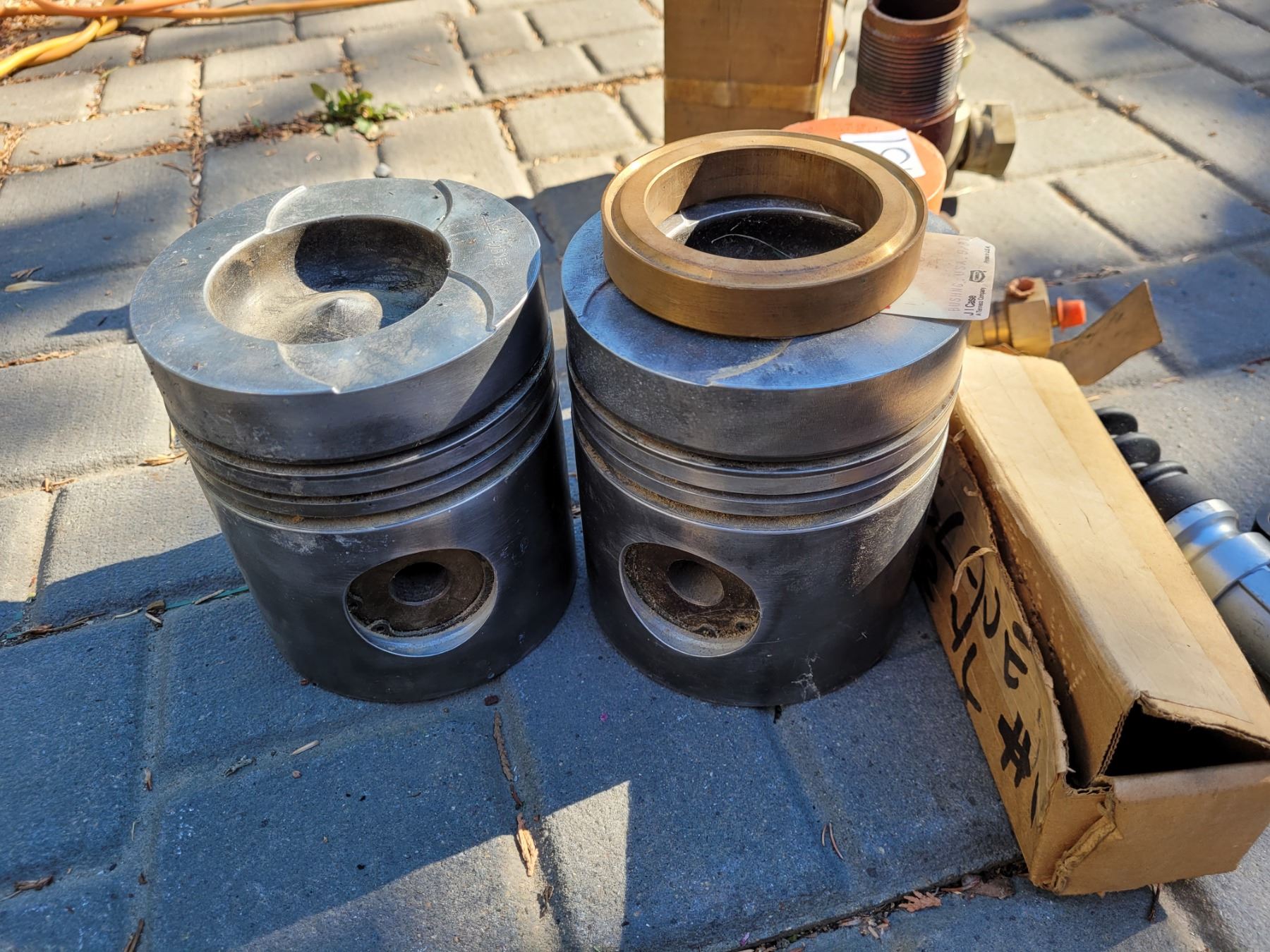 Case parts and 2 old 2470 case pistons (were used as bookends)