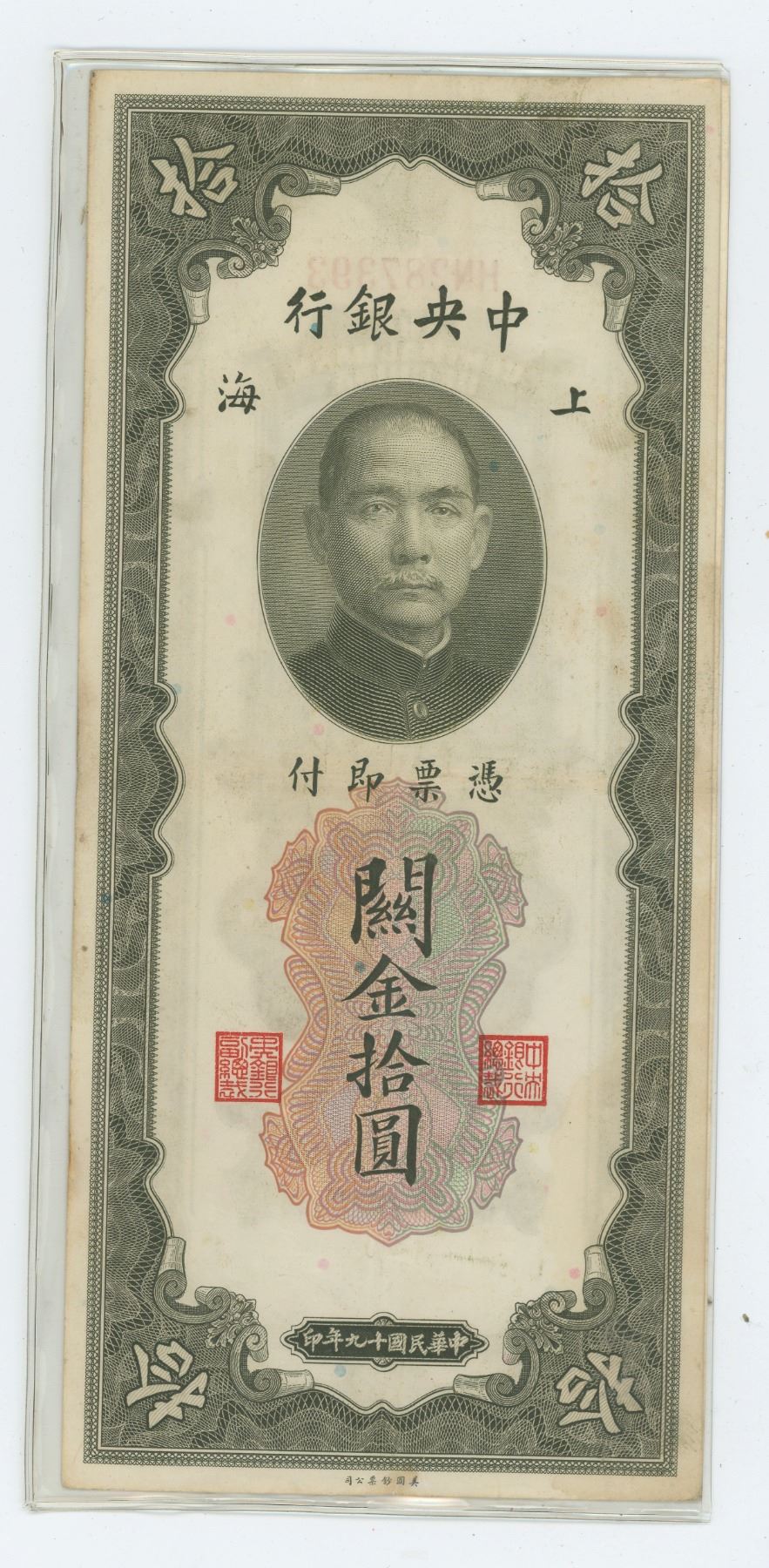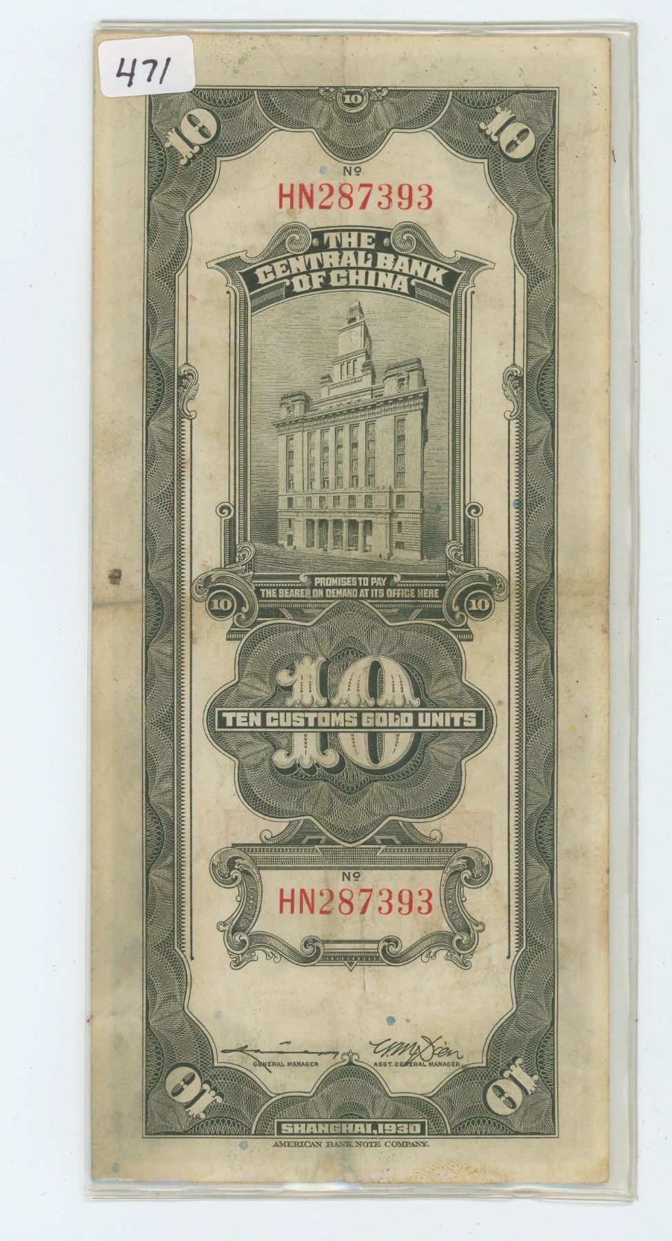 Central Bank of China 1930 10 Customs Gold Units note. Shanghai. F-15.