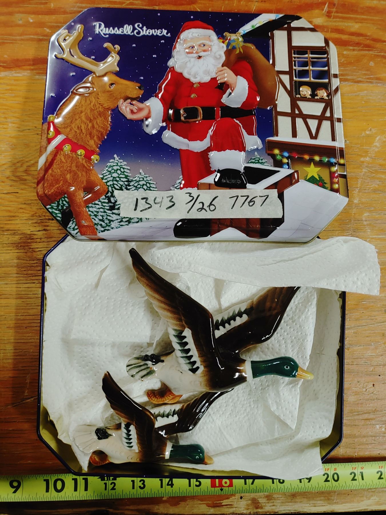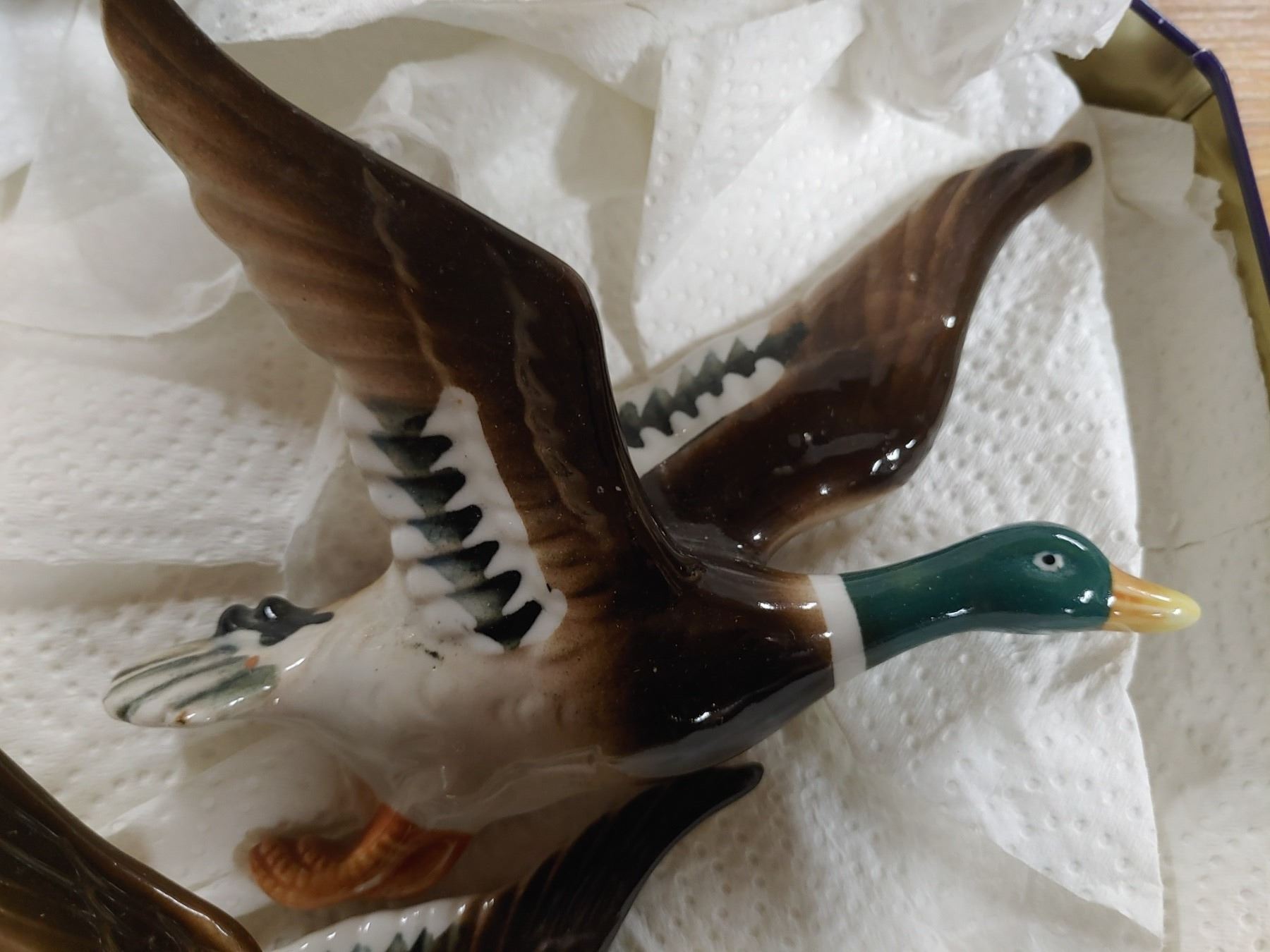 Ceramic Duck Figures In Xmas Tin