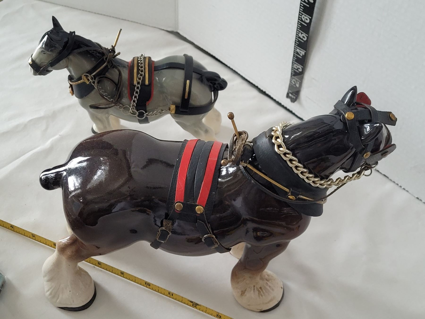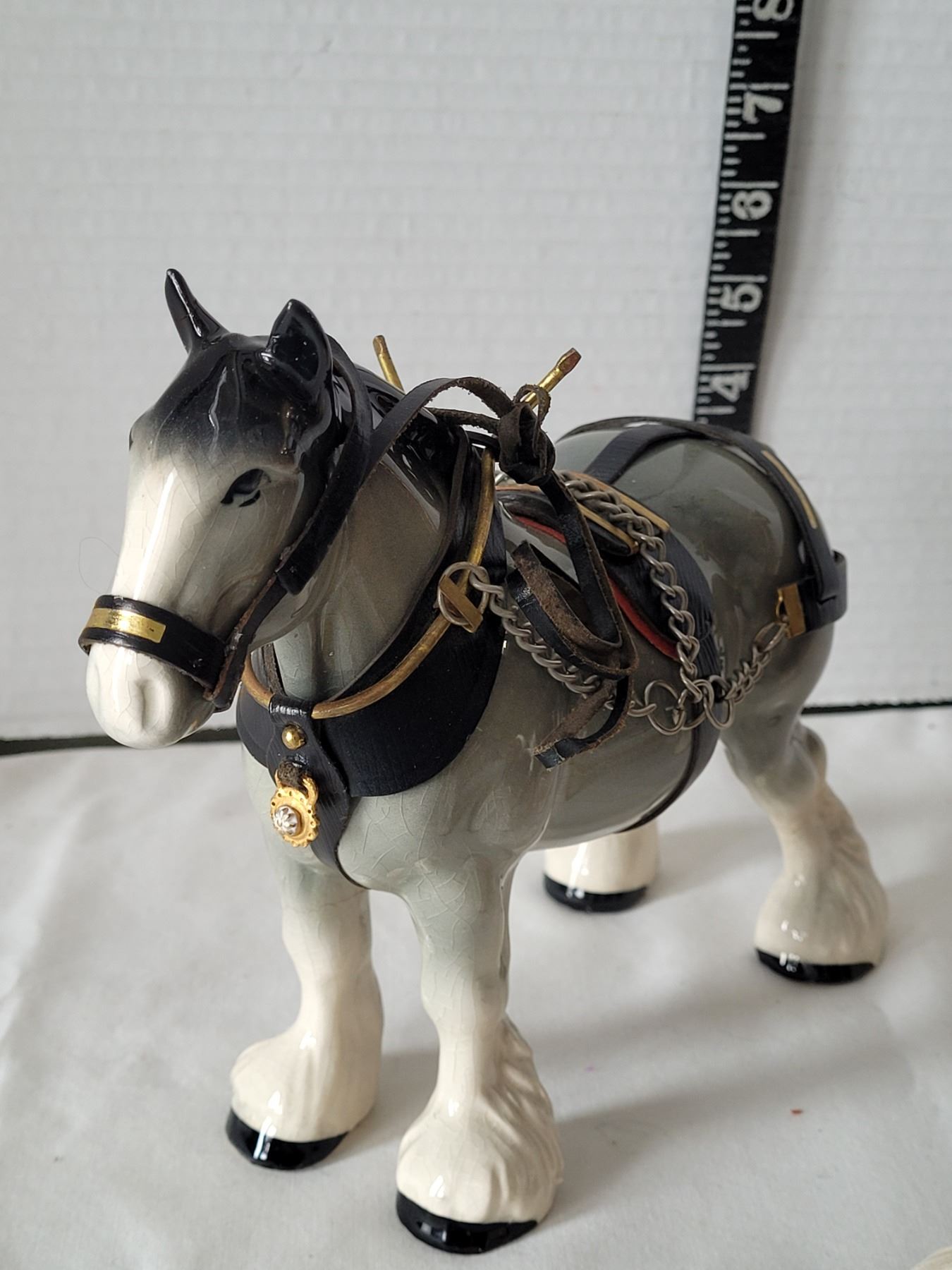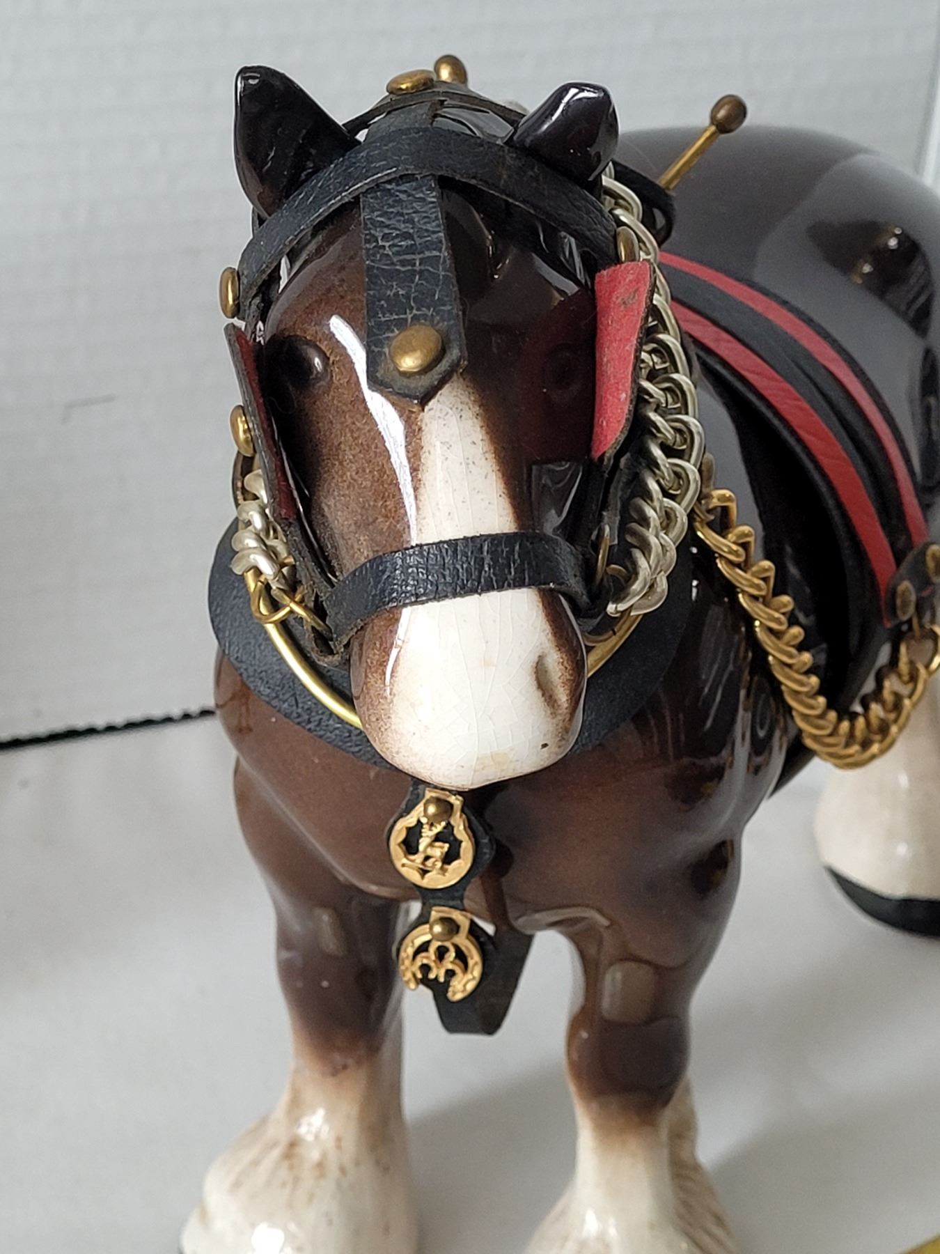 Ceramic clydesdale horses complete with full work Harness.Repaired cracks