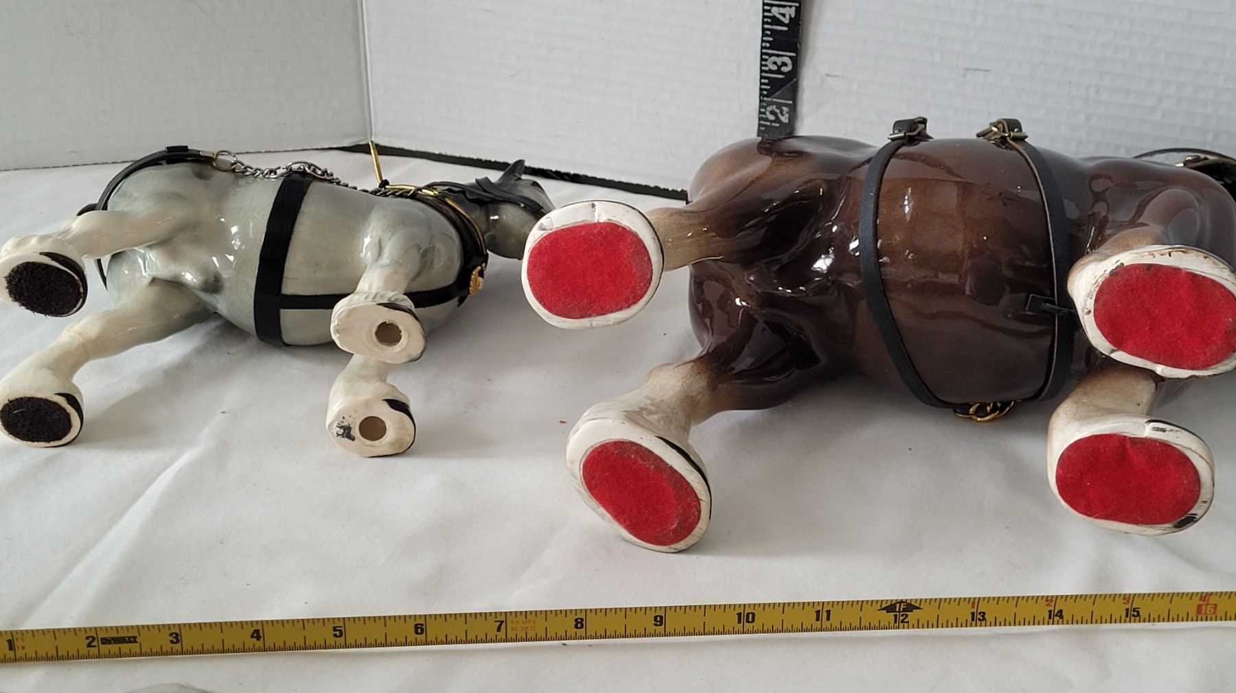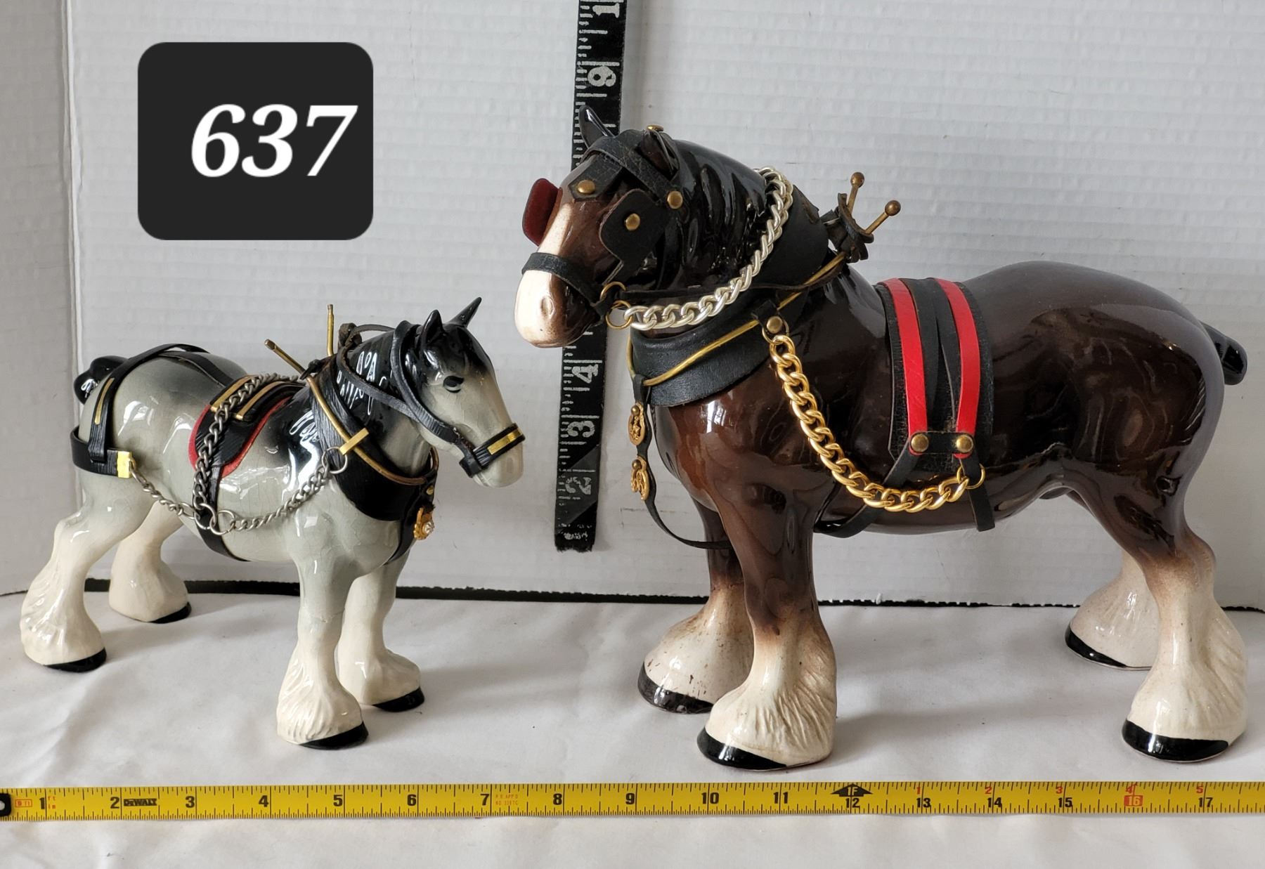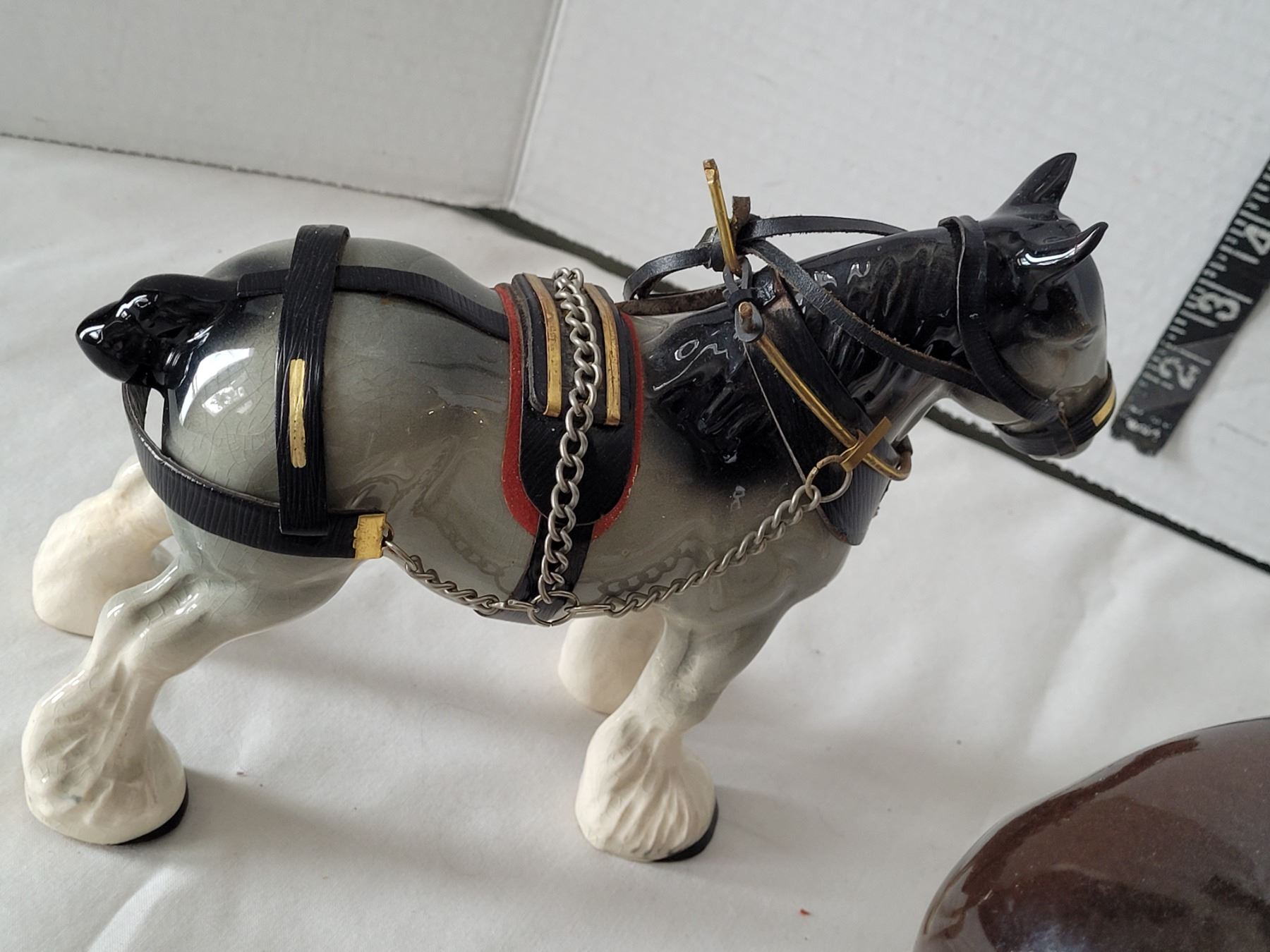 Ceramic clydesdale horses complete with full work Harness.Repaired cracks