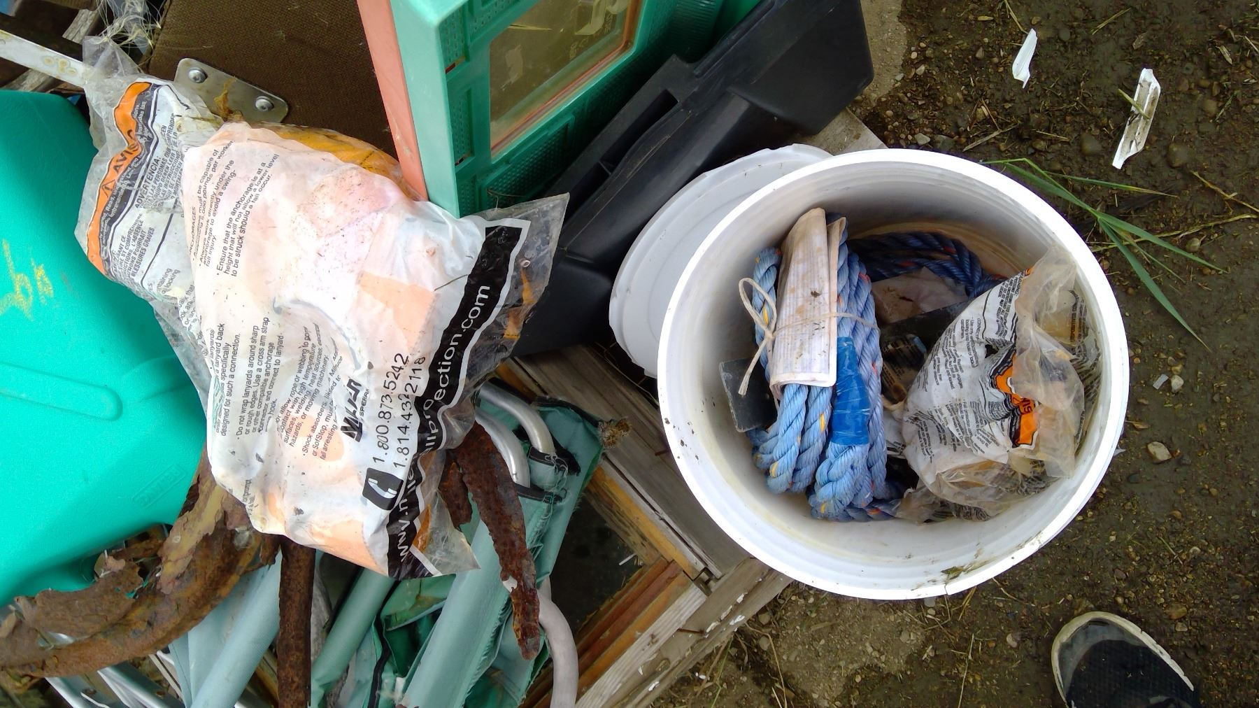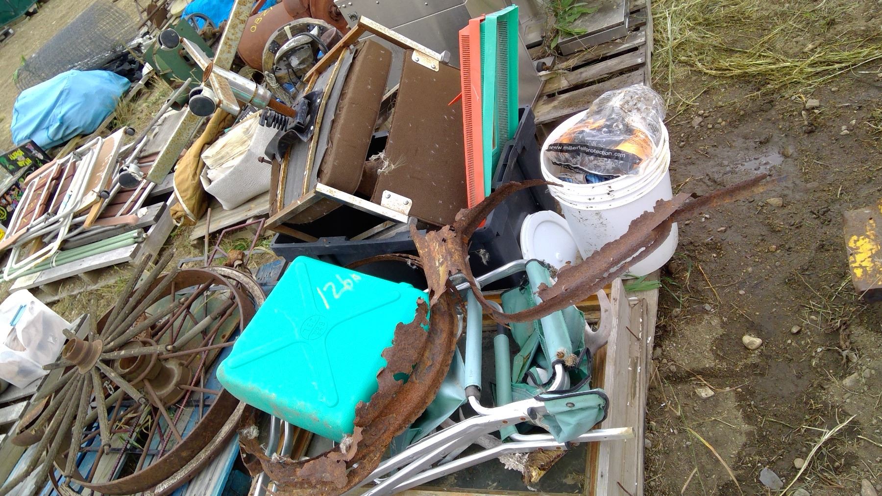 Chairs, water can, fall protection ( appears new in bags)-complaince in a can, and misc on pallet