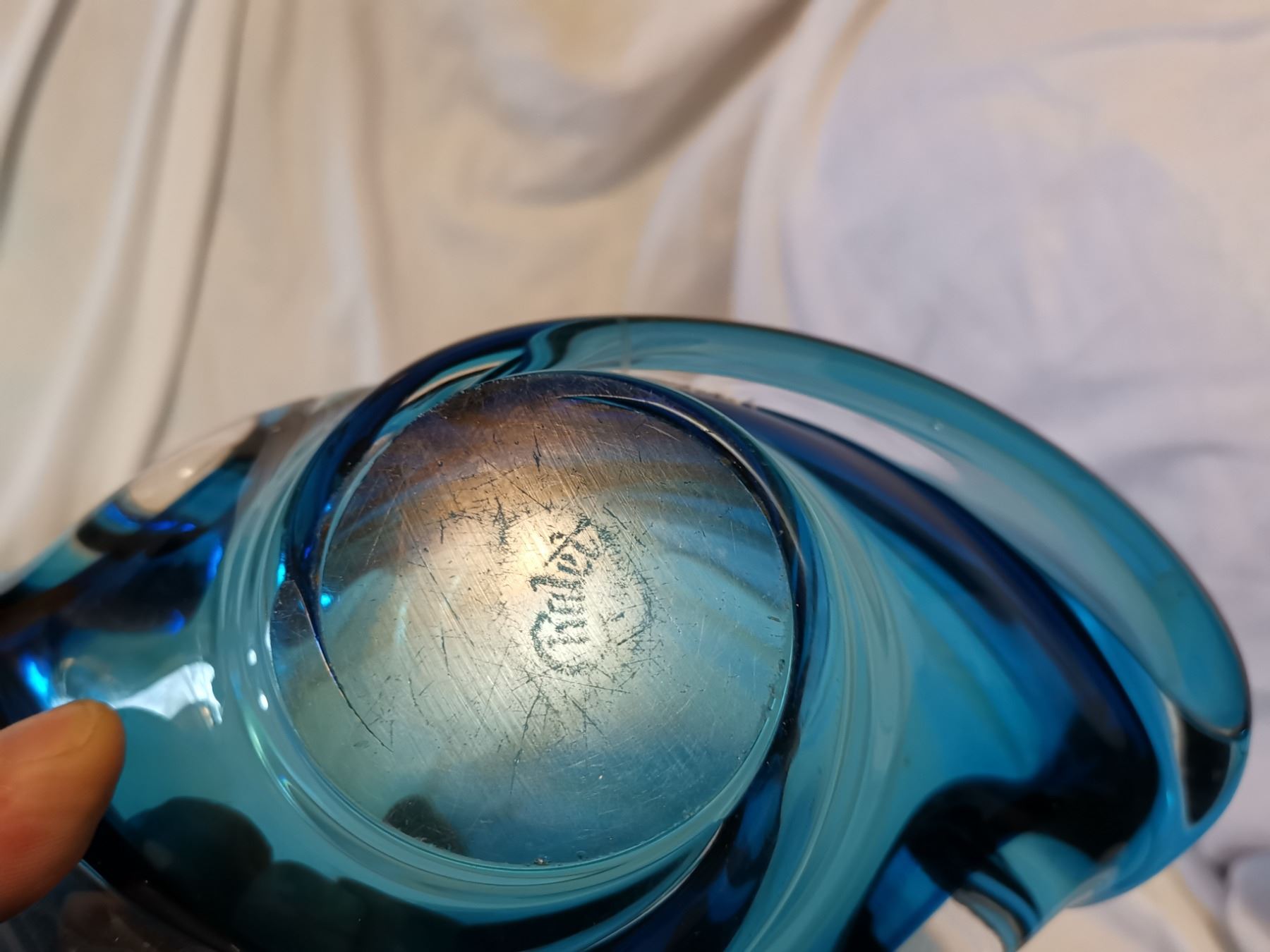 Chalet Blown Glass Blue Candy Dish, 9.5” L