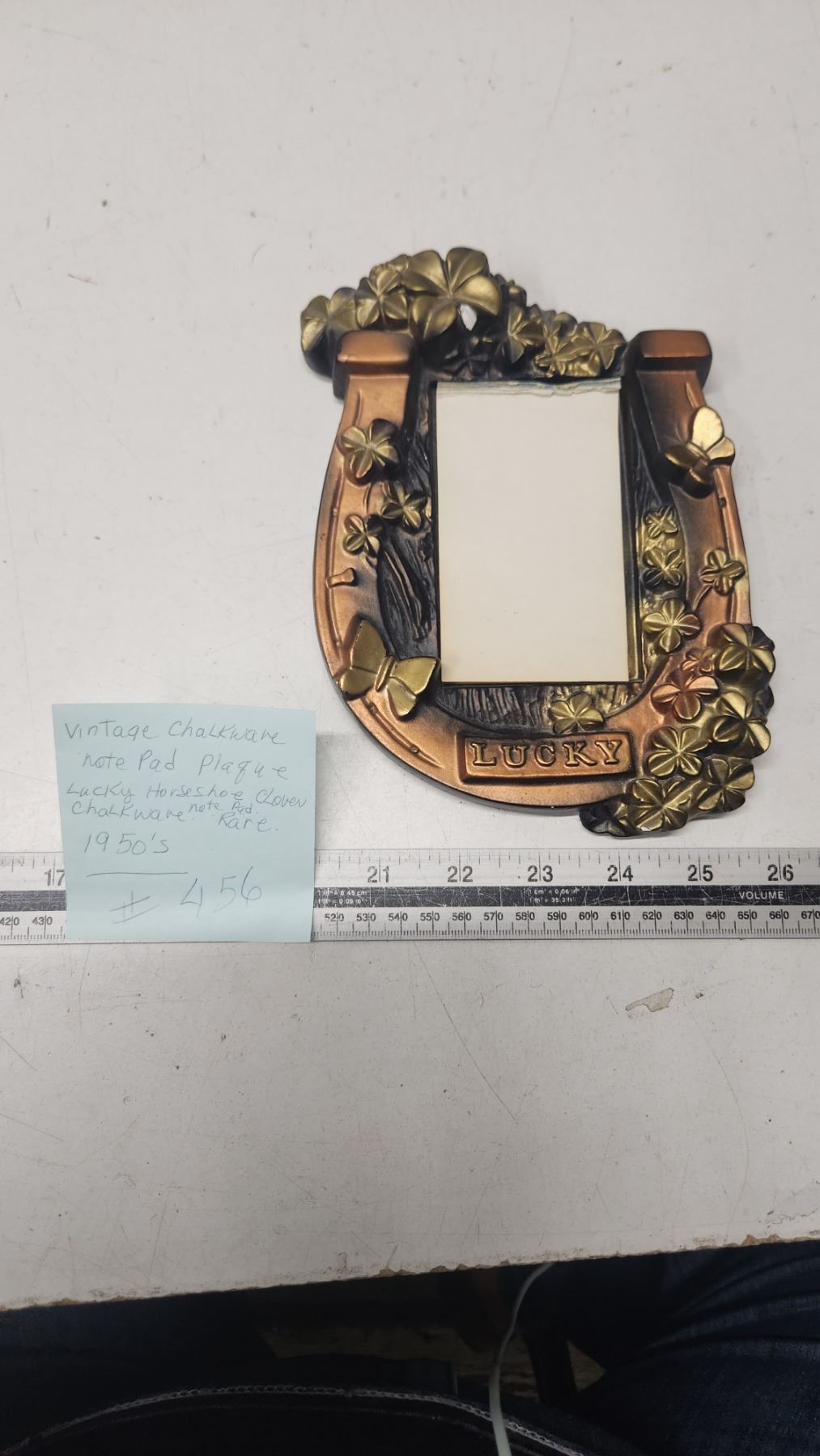 Chalkware 1950’s Lucky Horseshoe Clover Note Pad – rare