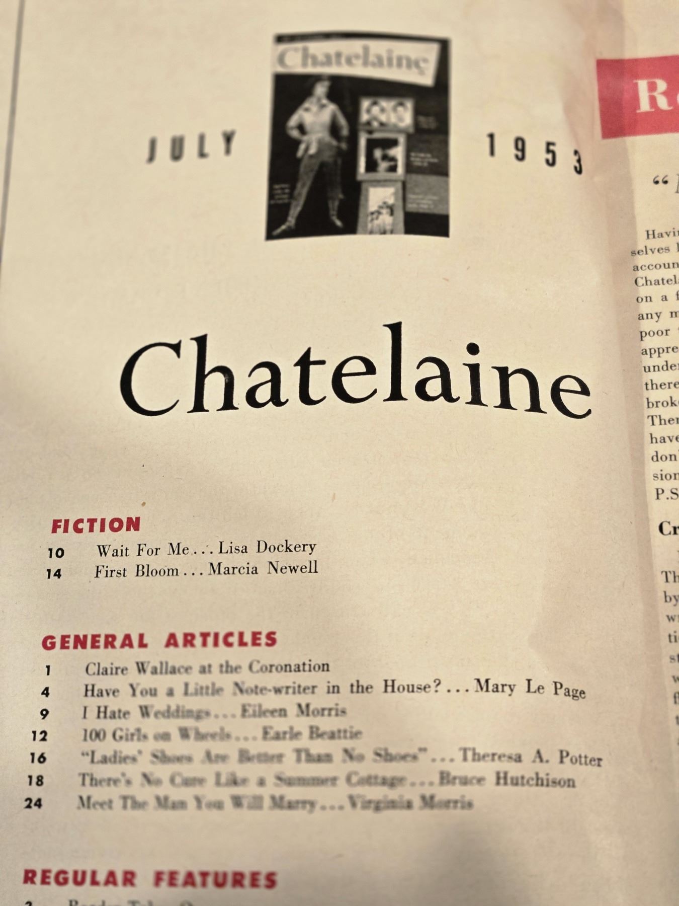 Chatelaine magazine - July, 1953. 20 cents.