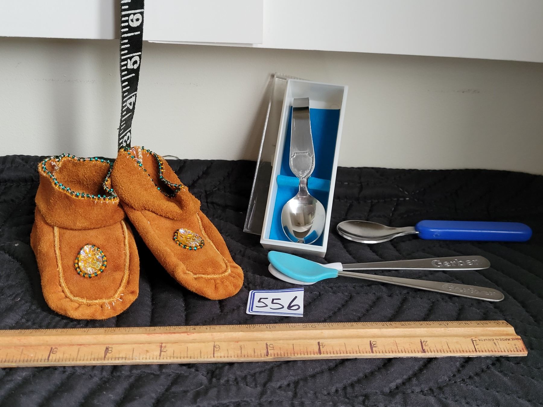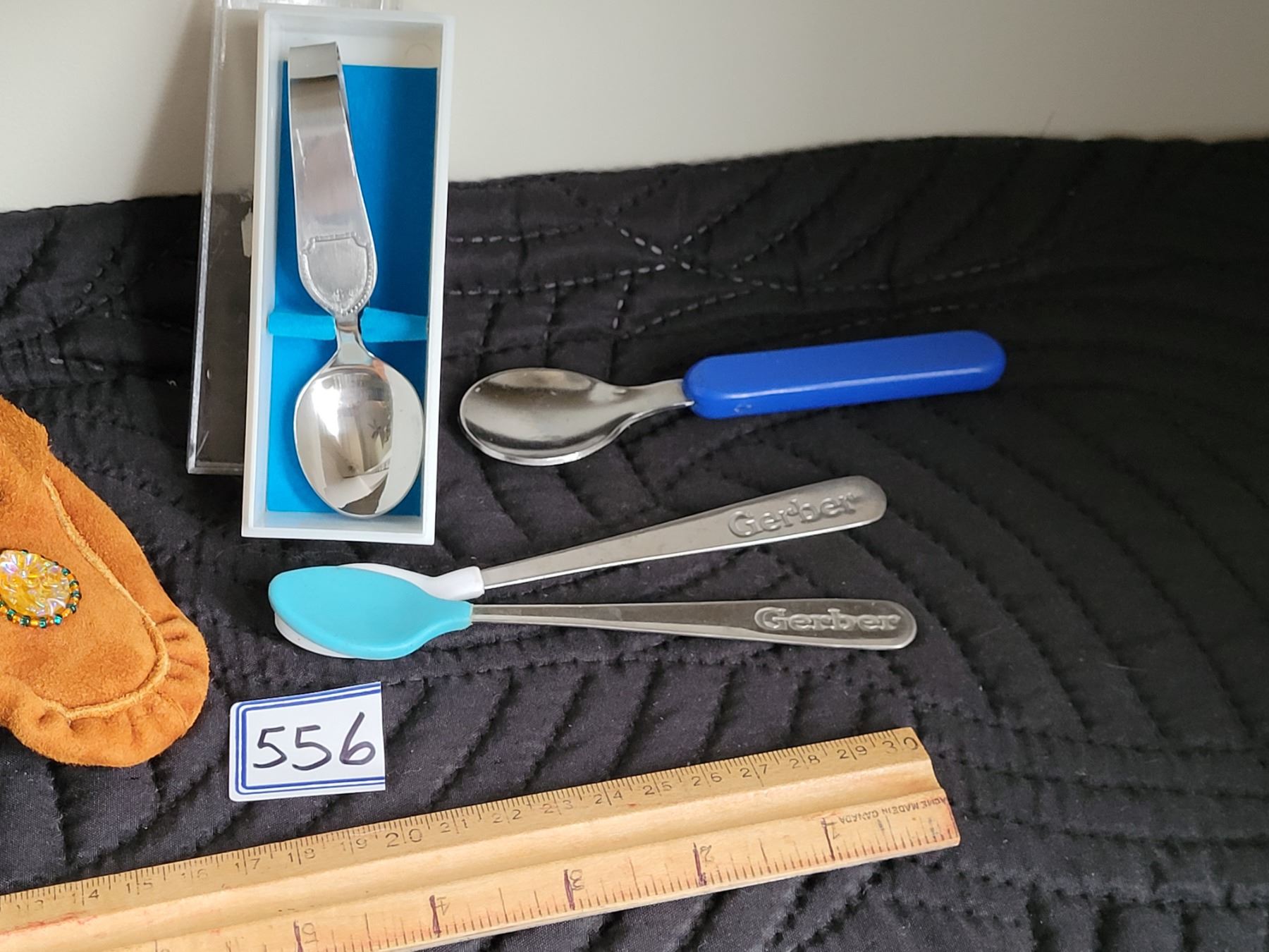 Child size beaded moccasins, 4 baby spoons (2 Gerber)
