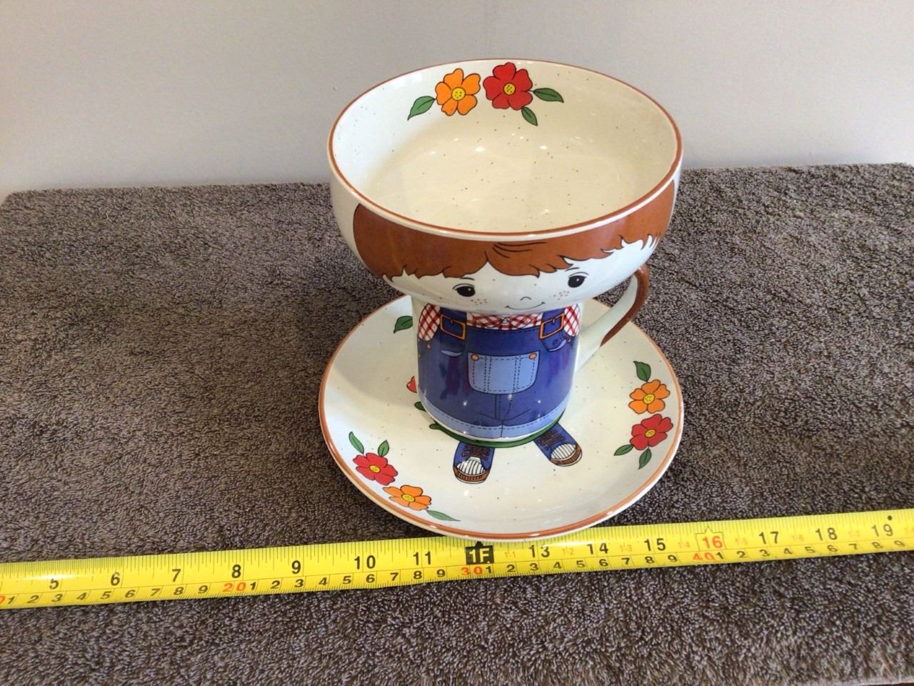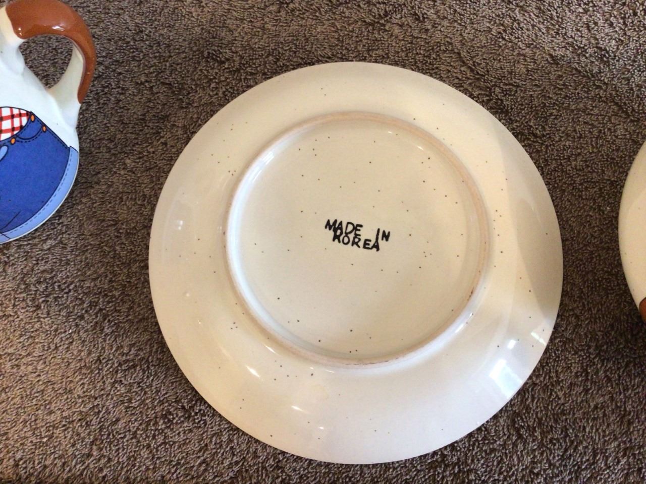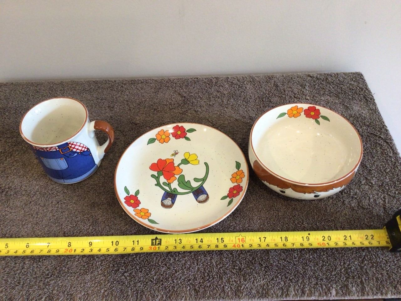 Children's 3 piece ceramic set, Gardner mug/bowl/plate. Interpur, Made in Korea. Ecx cond.