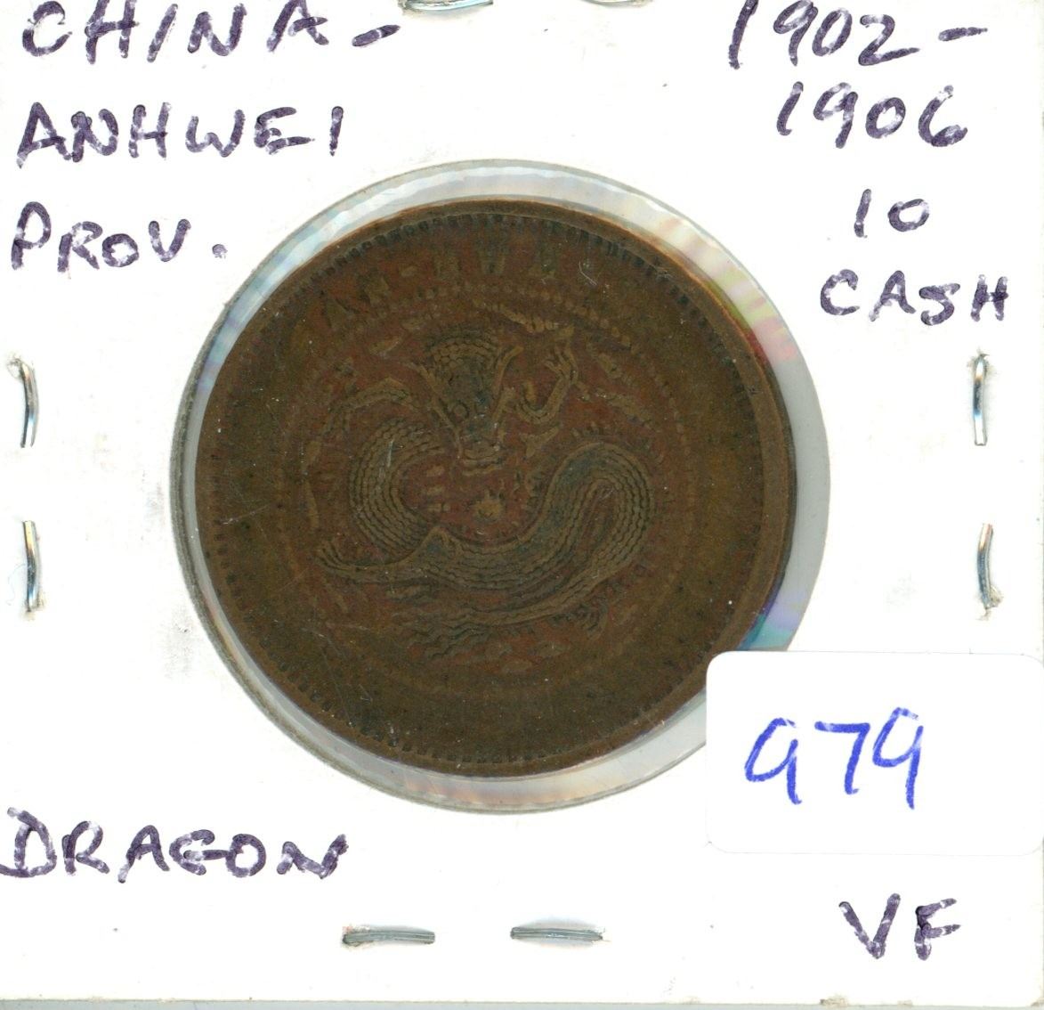 China. Anhwei Province. 1902 – 1906 10 Cash. Dragon coin. VF.