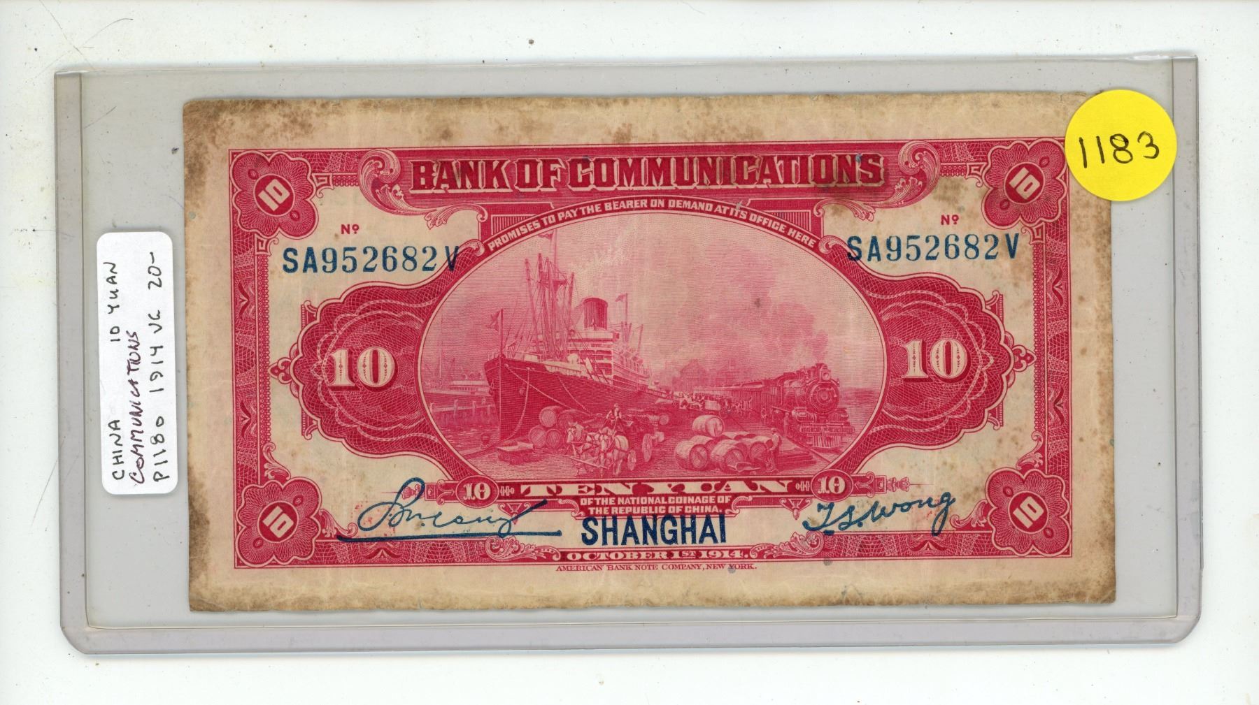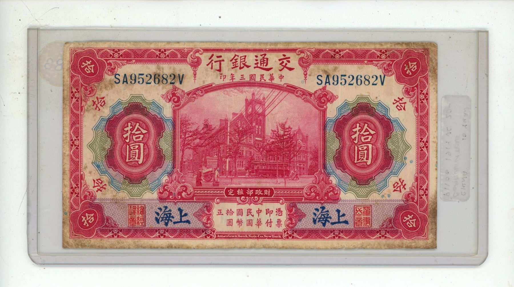 China. Bank of Communications. 1914 10 Yuan. Ship and train. VG.