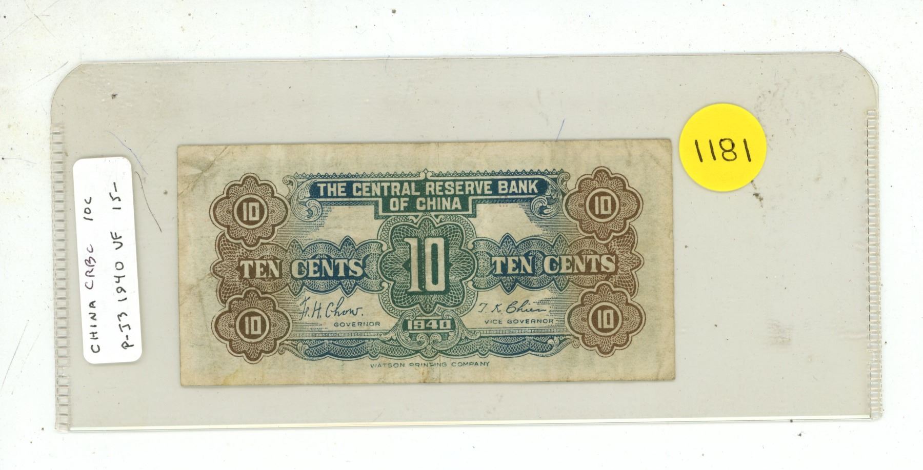 China. Central Reserve Bank of China. 1940 10 Cents. VF.