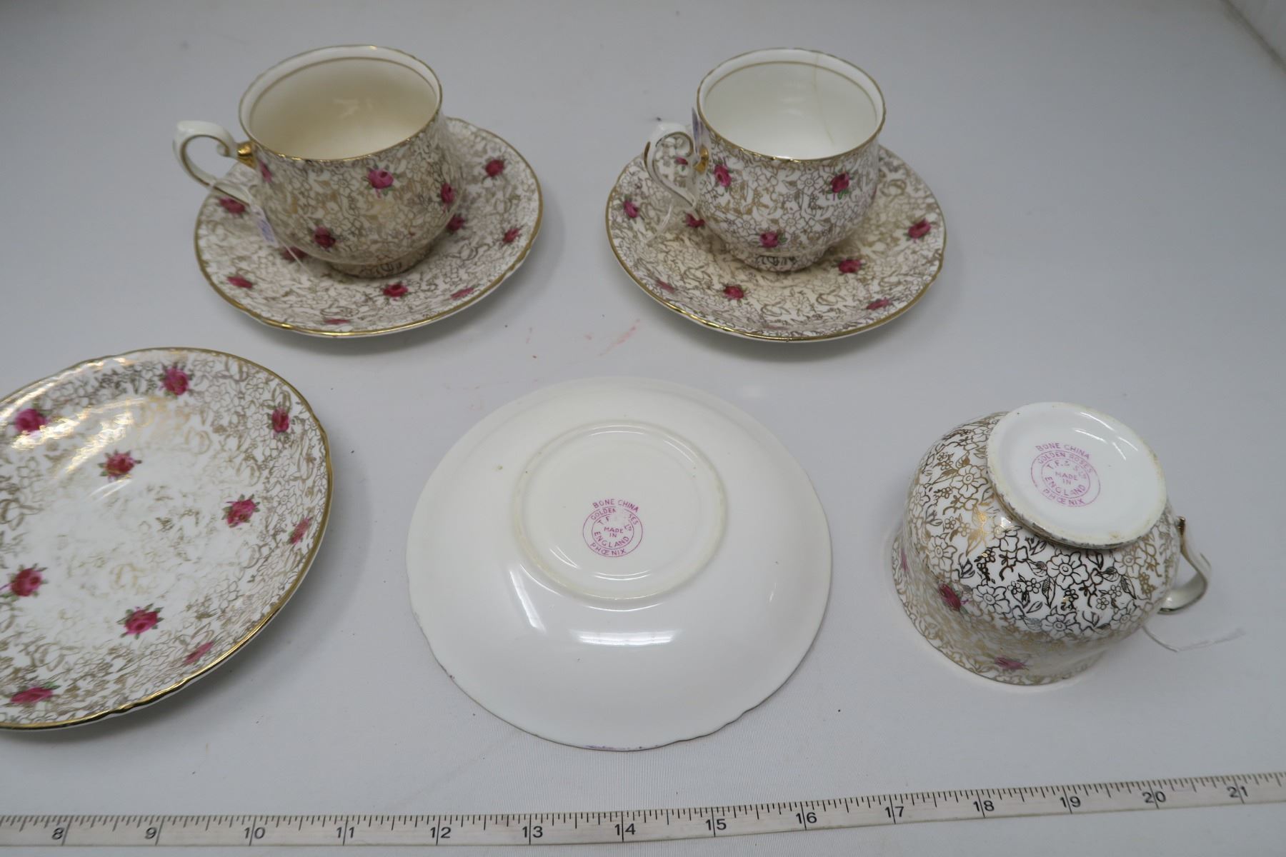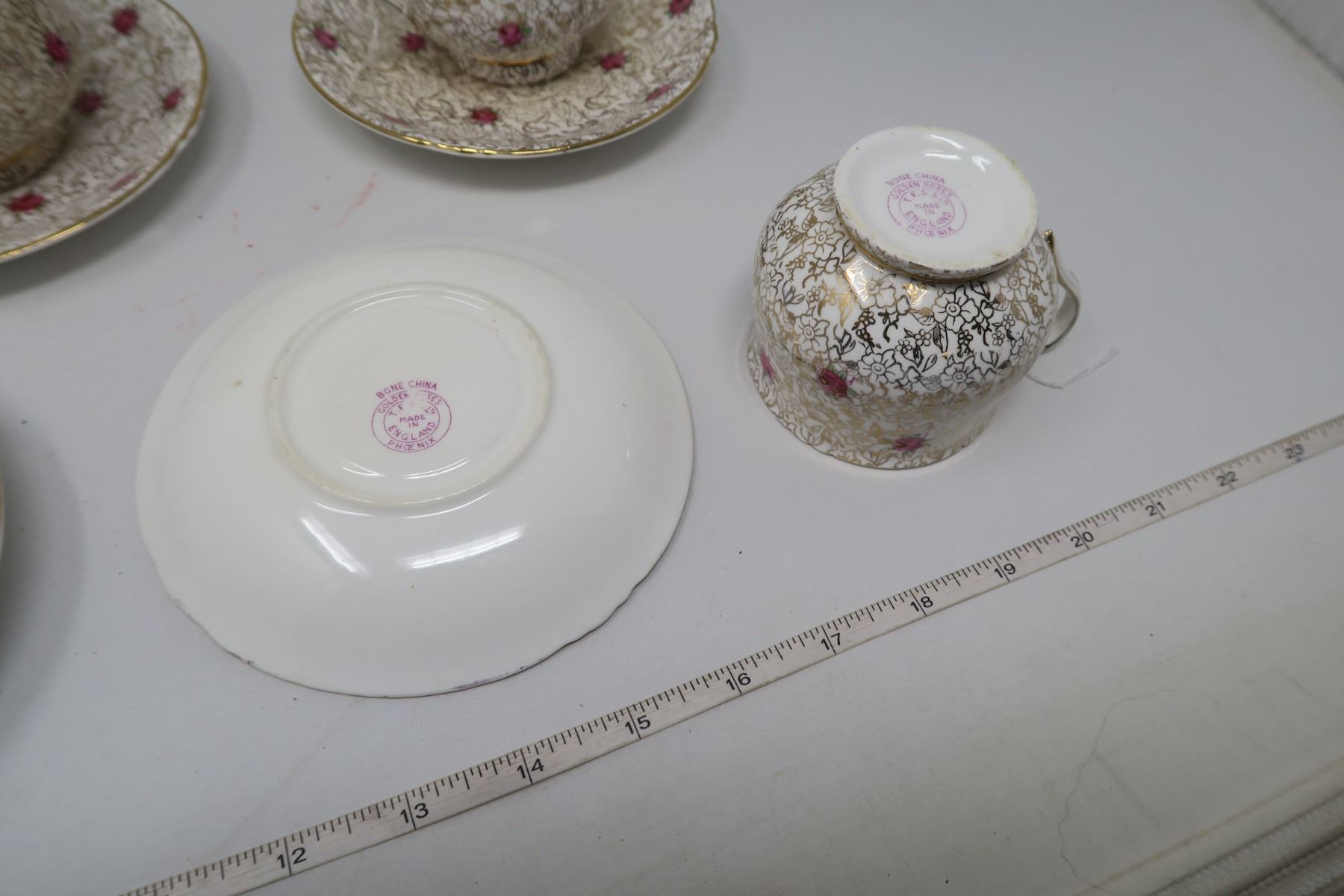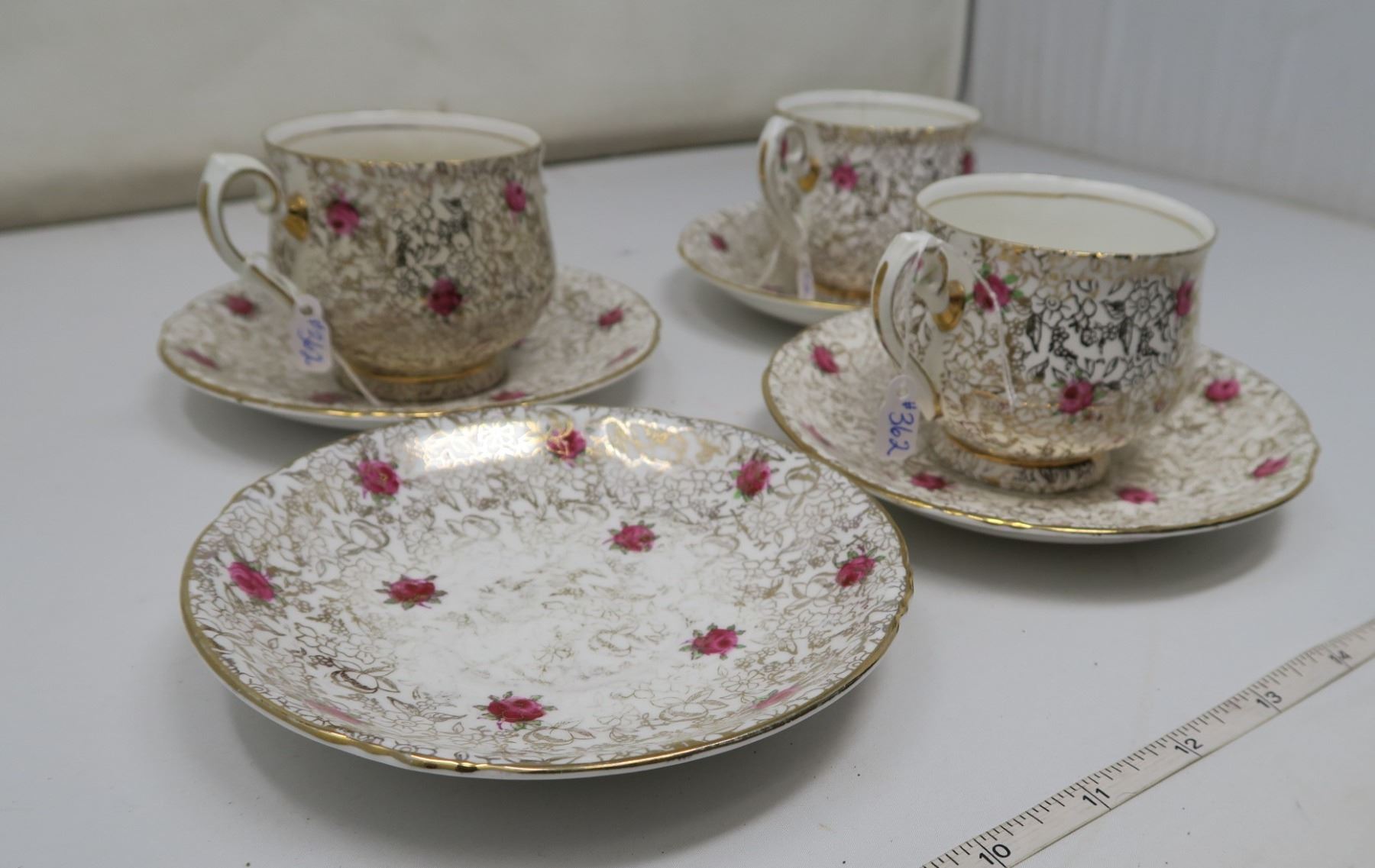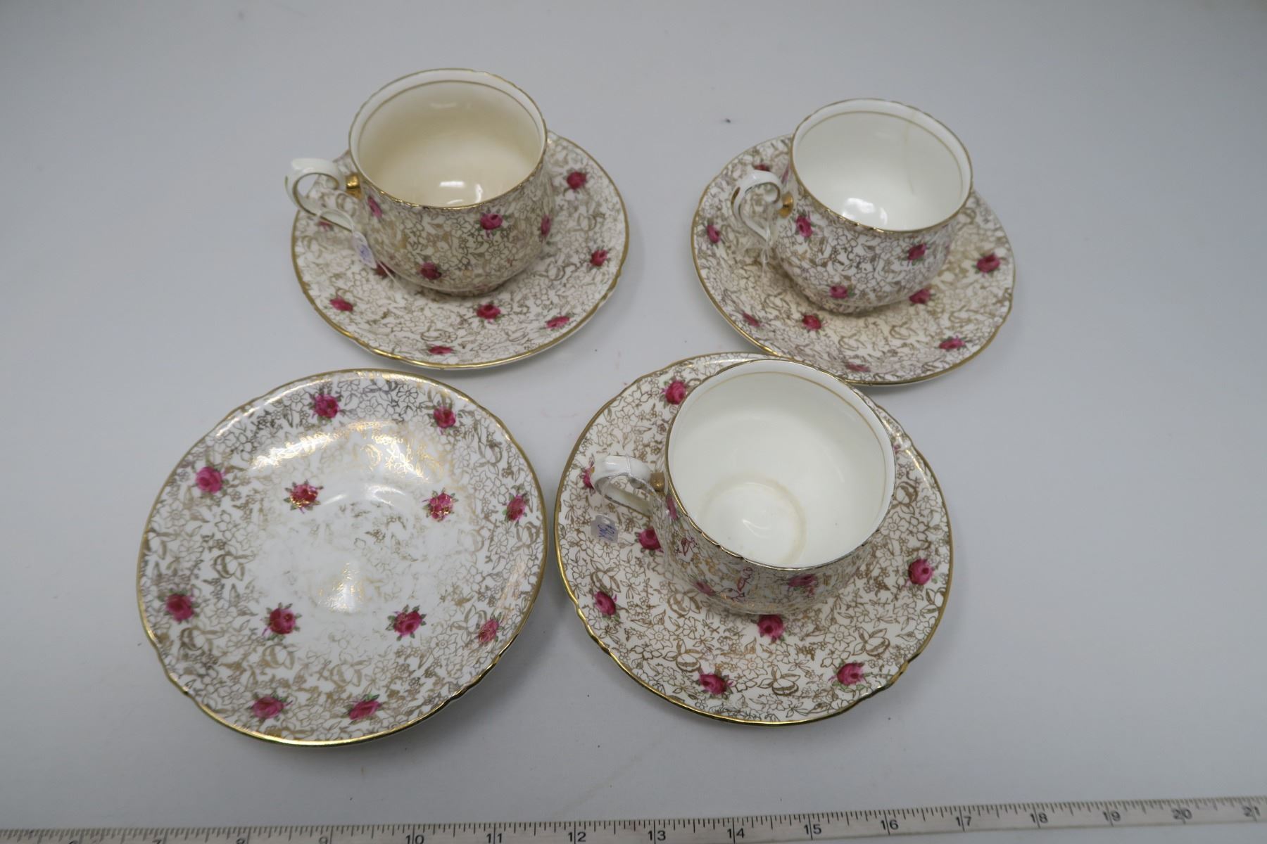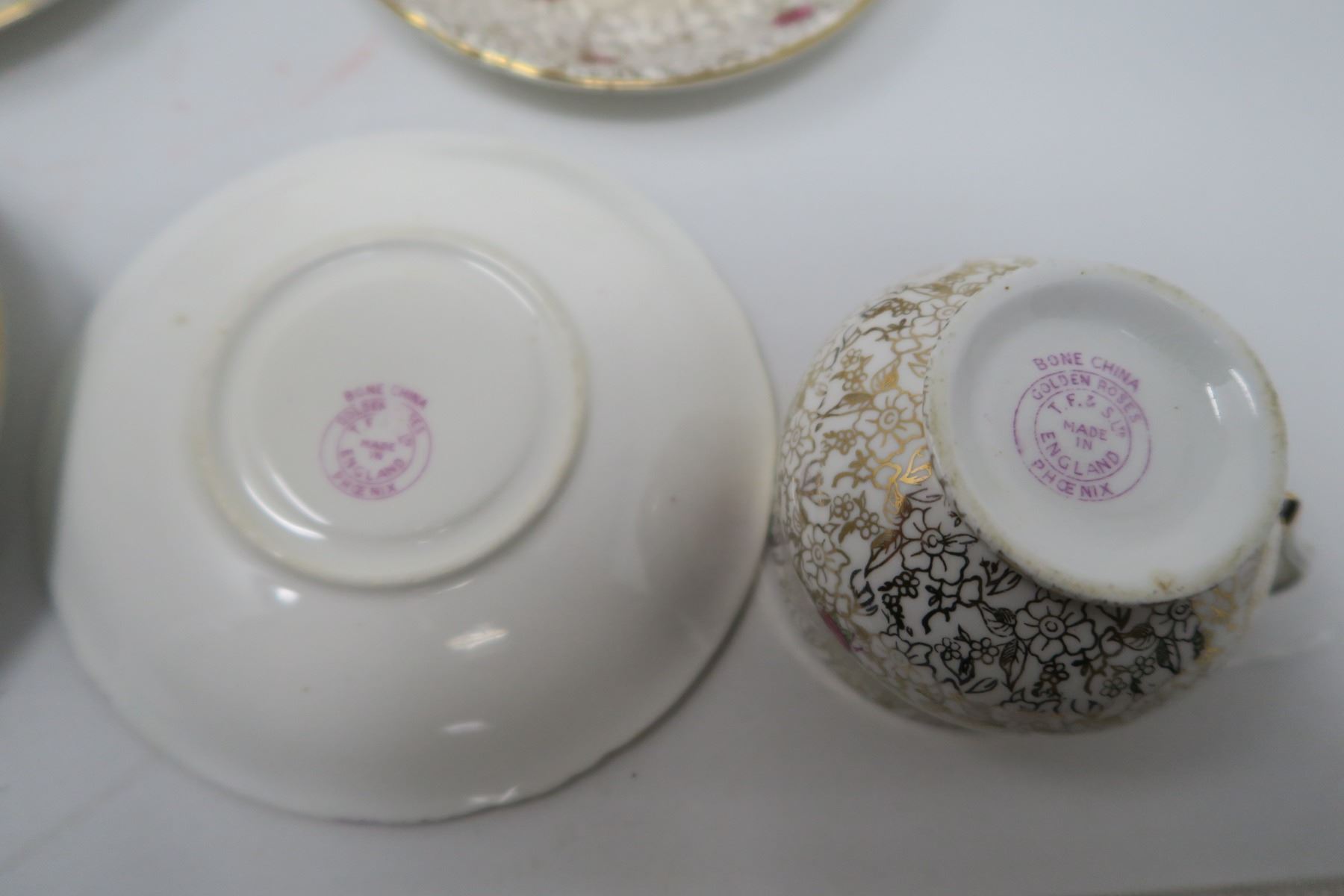 Chintz cups and saucers (3), Golden Roses pattern, Phoenix bone china, England