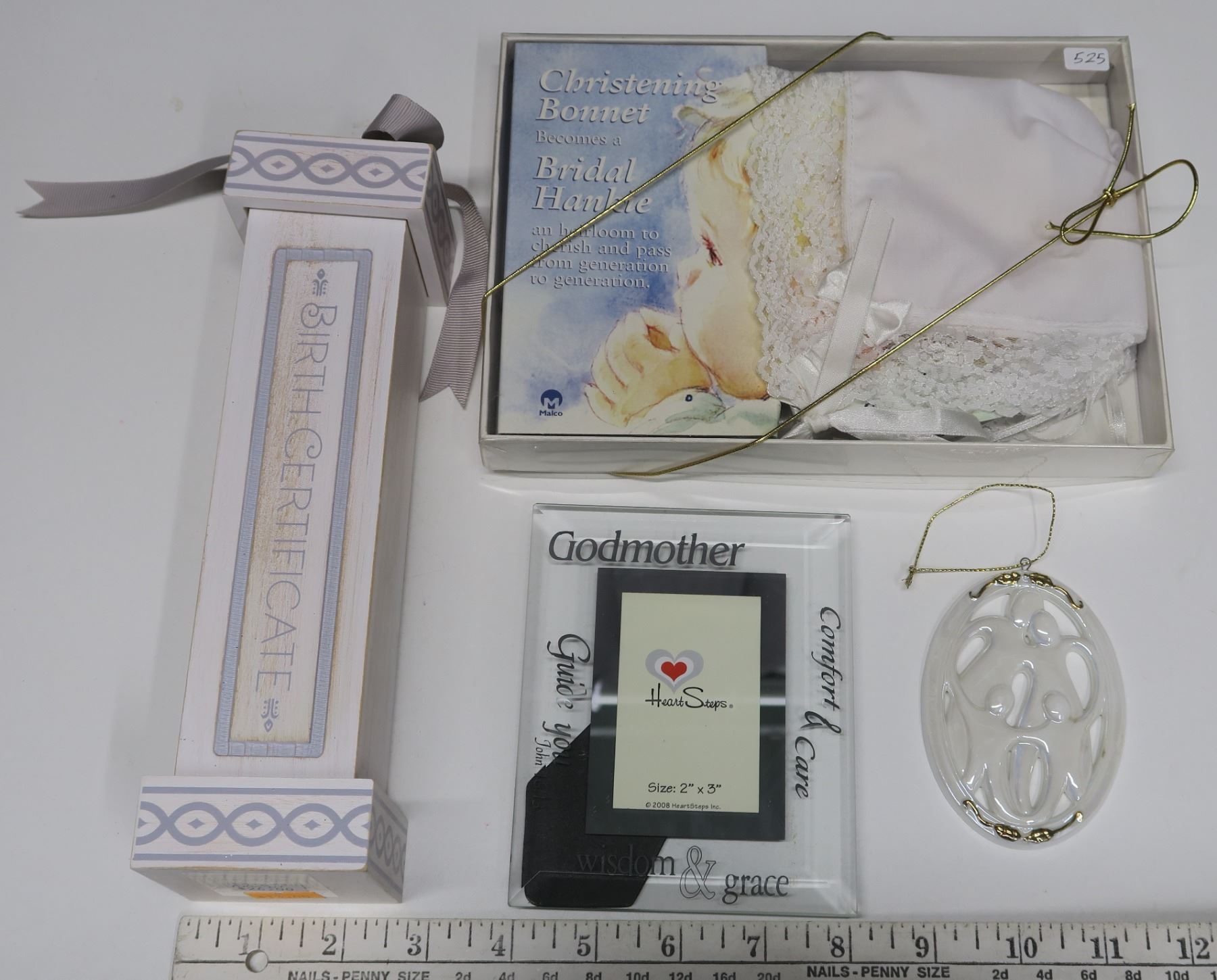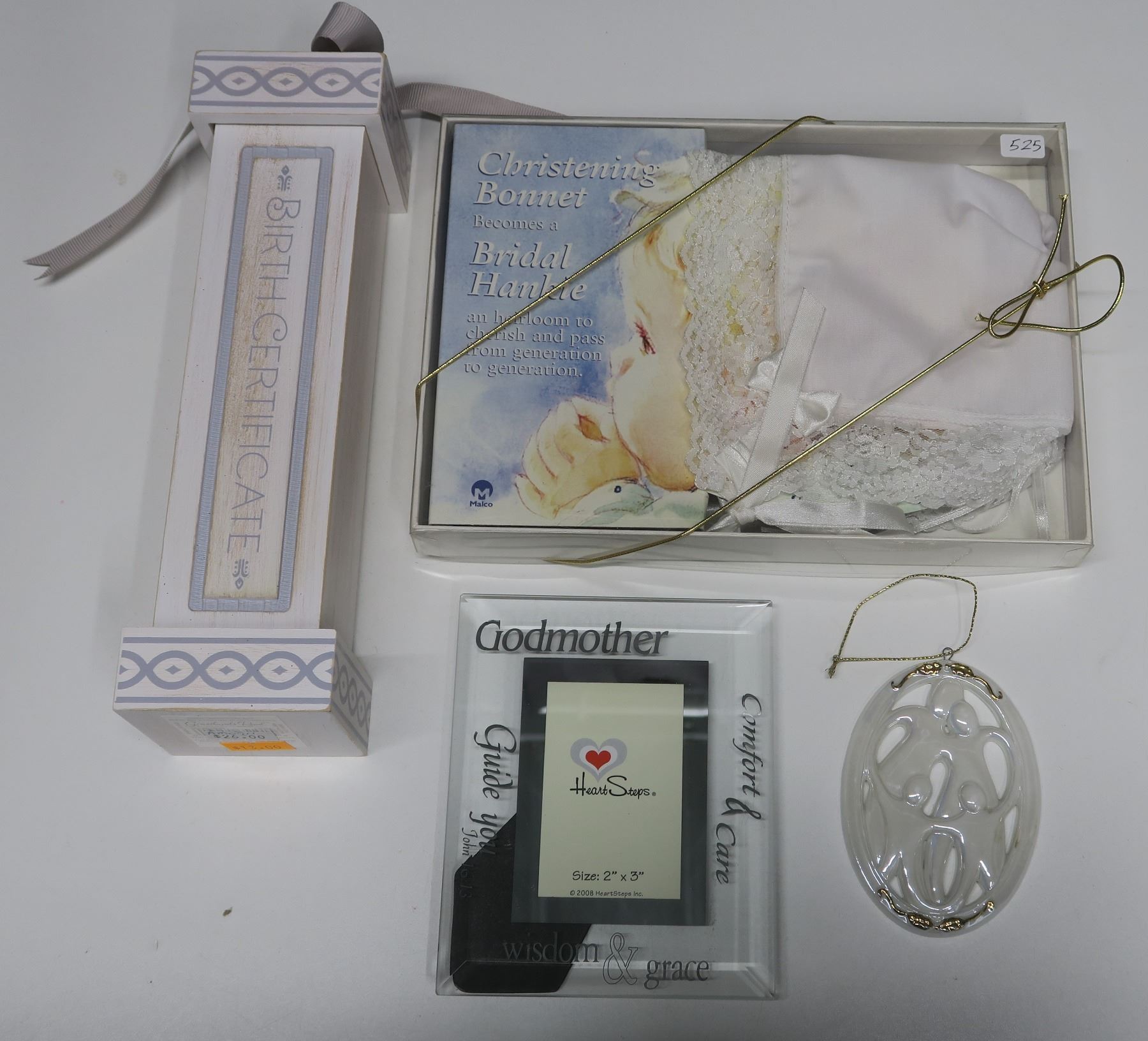 Christening Bonnet + Birth Certificate holder + frame