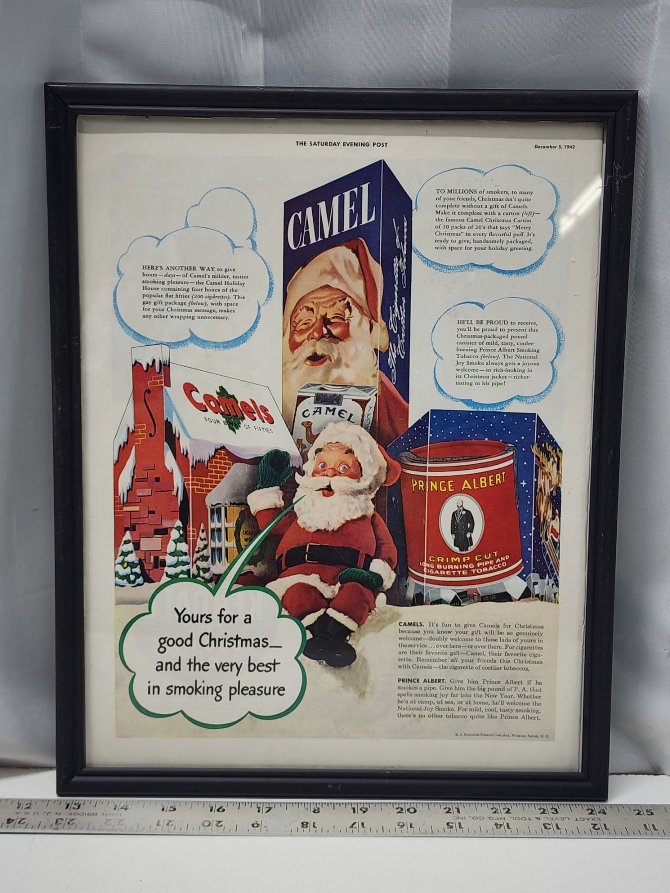 "Christmas cigarette" ad - Prince Albert, Camel - framed magazine cut out - 12"x15"