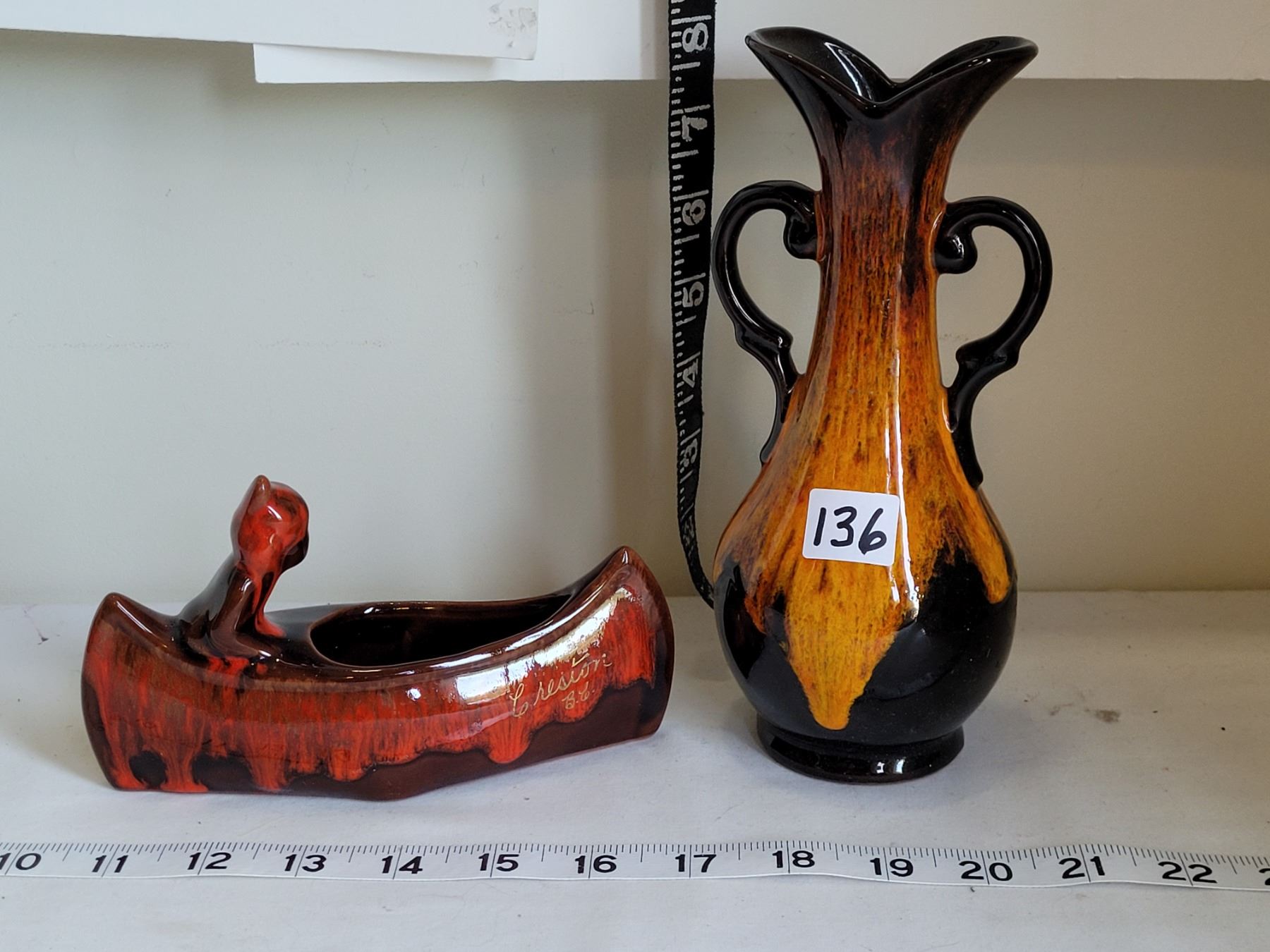 Clay pottery ( Blue mountain) vase & native canoeist.