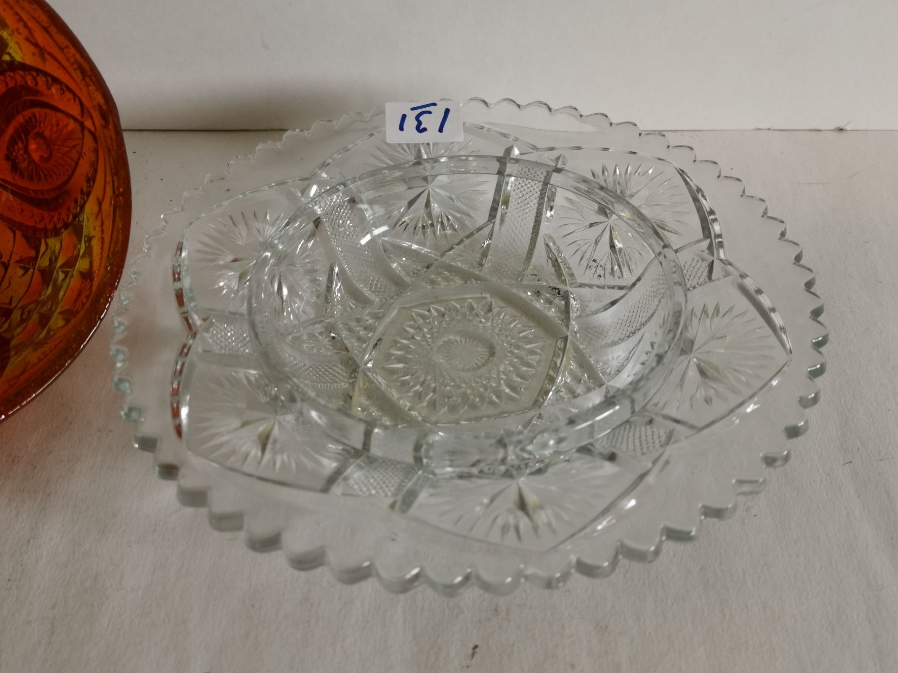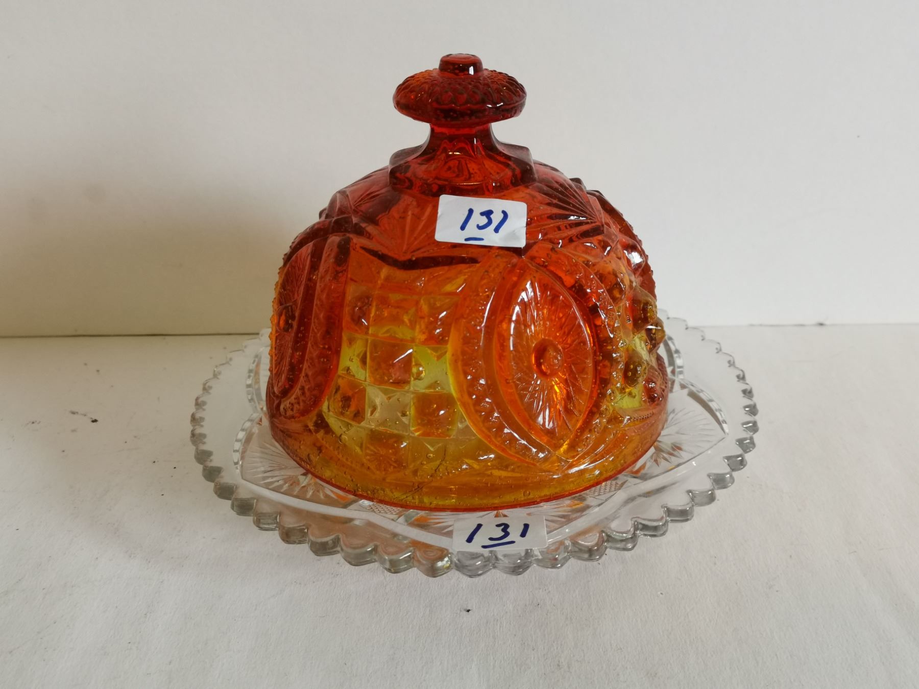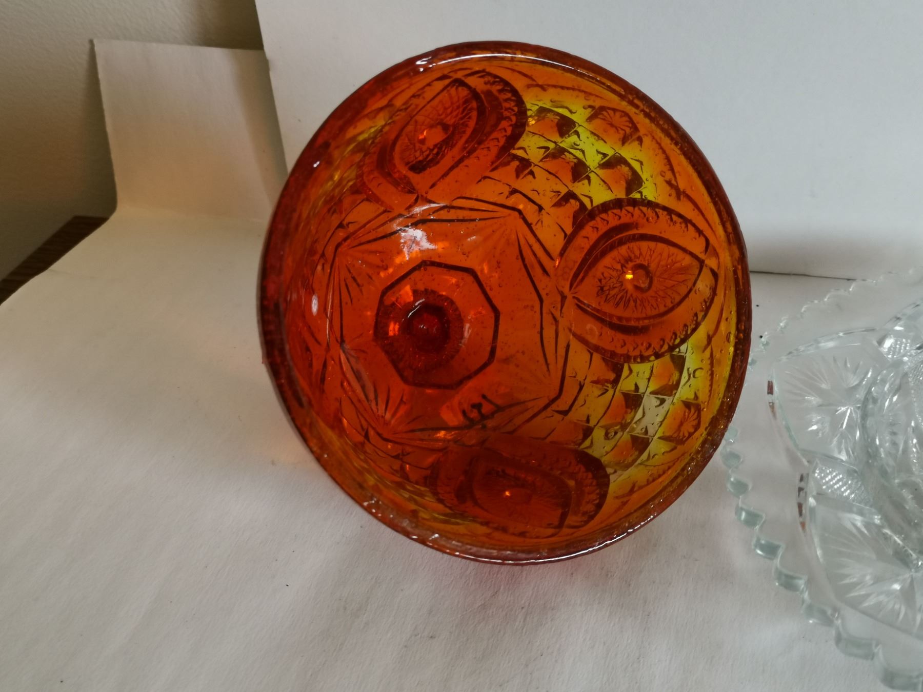 Clear Candy Dish with red Amberina LID 7" 5.5 Talls