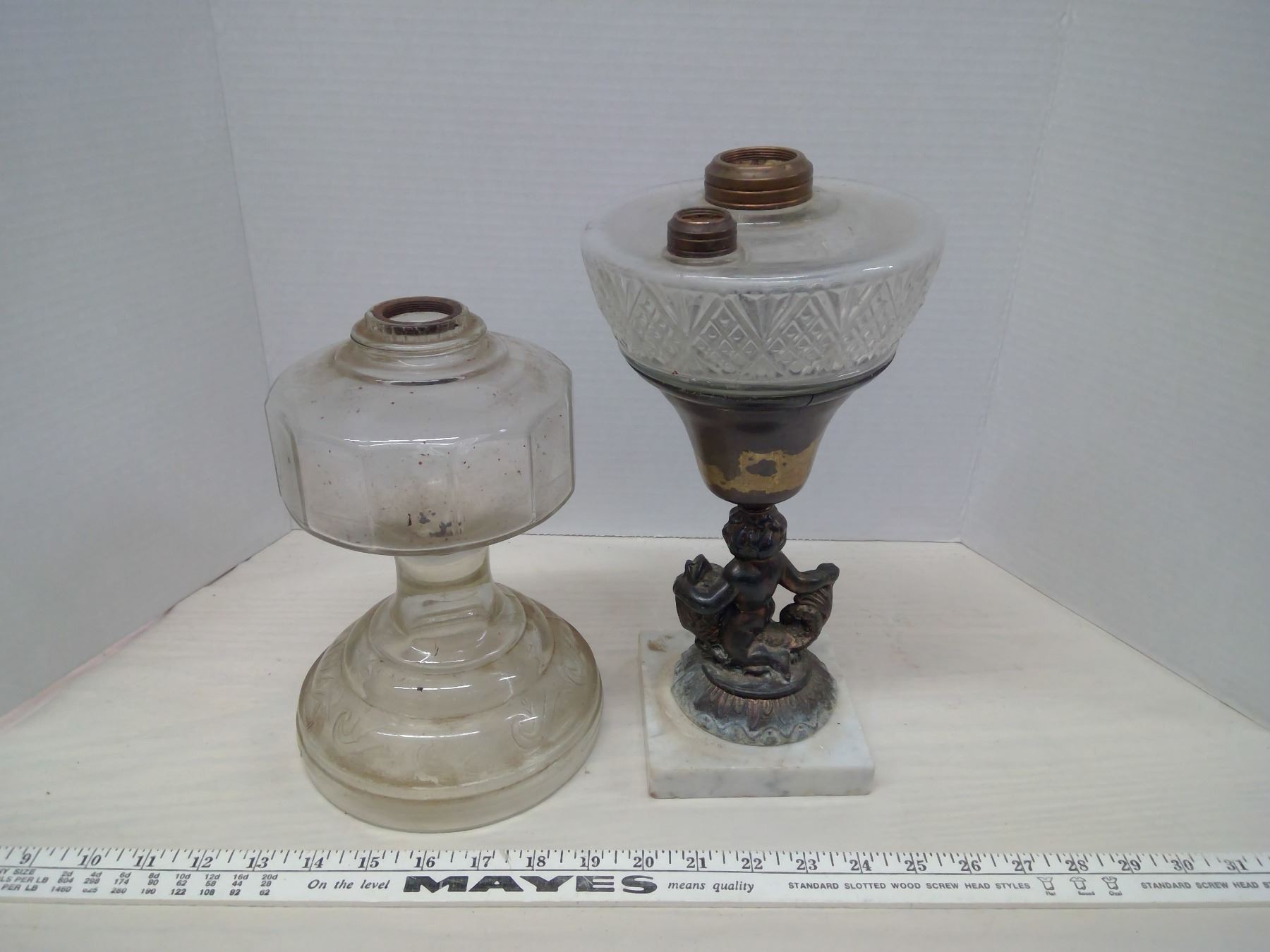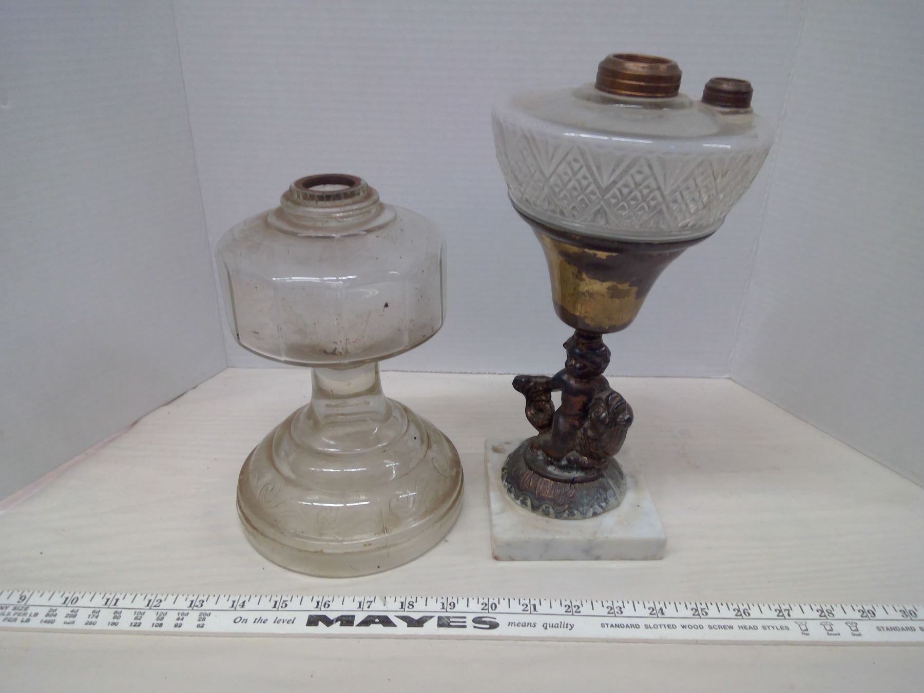 Coal Oil Lamp Base x2, One w/ Marble Footing