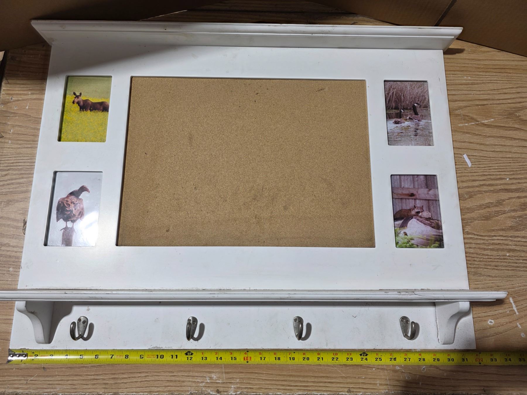 Coat rack with space for a mirror and pictures- 32" by 23"