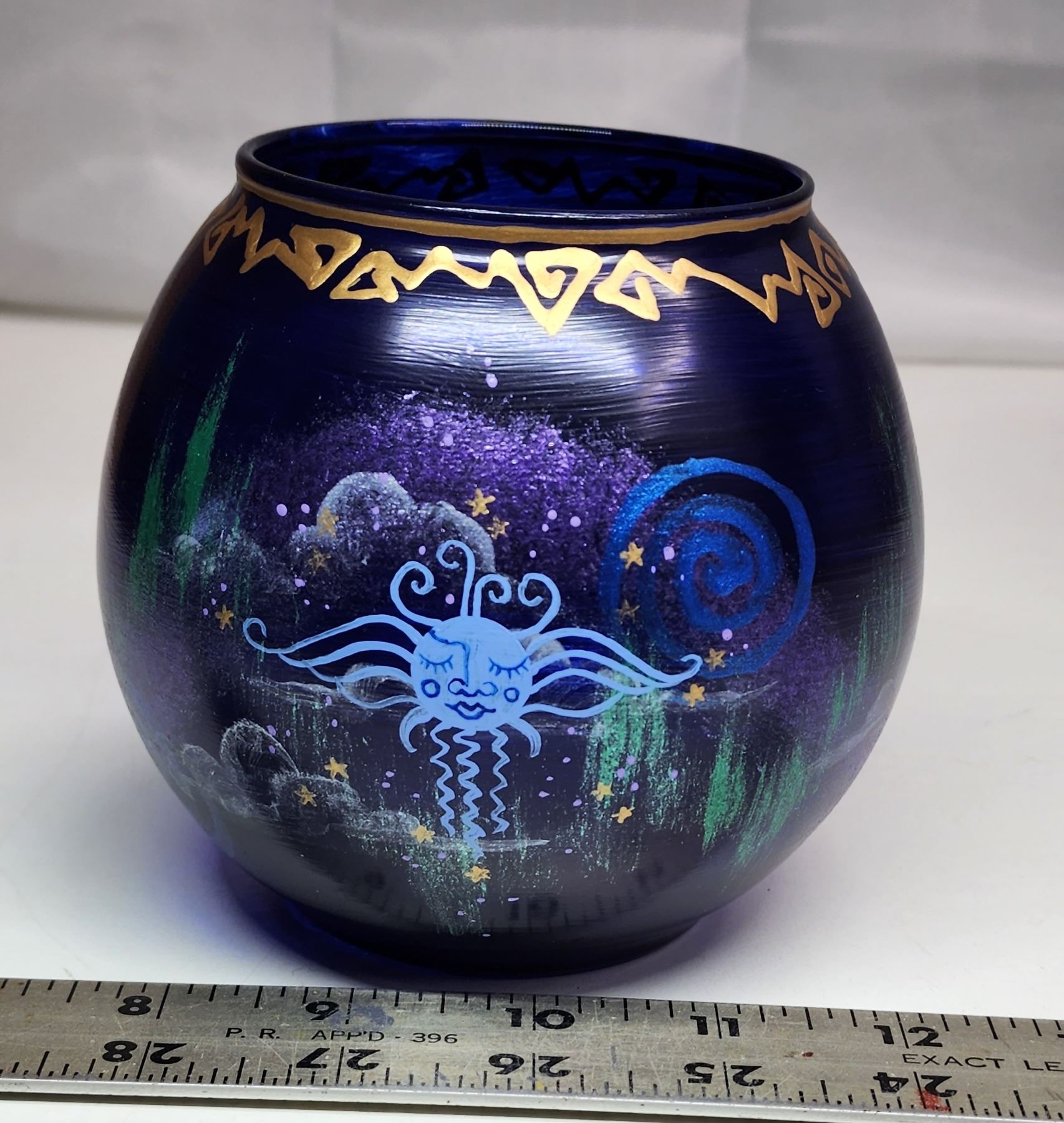 Cobolt Blue Hand Painted Art Piece "Sundance" 1990's Lovely!