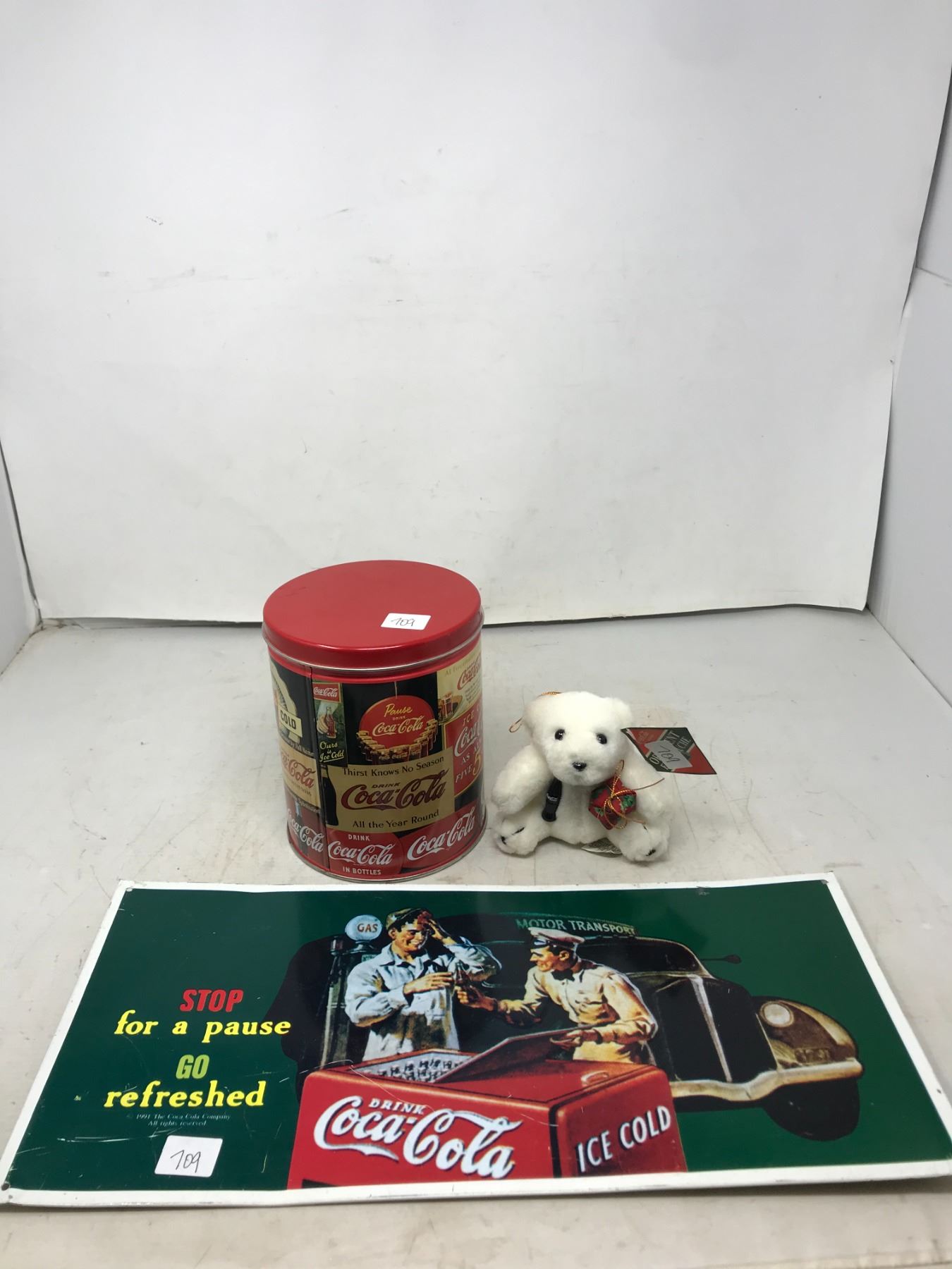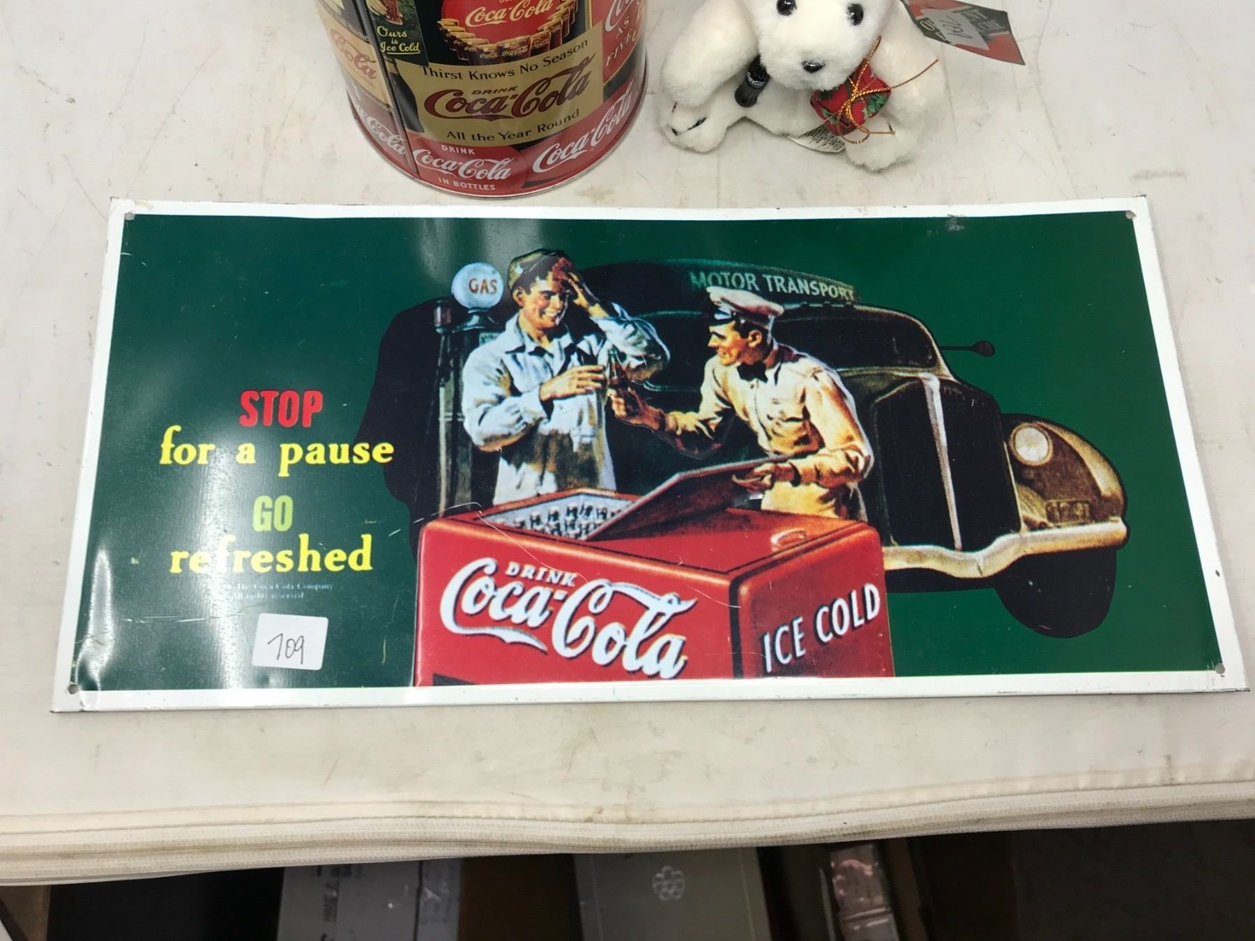 Coca-Cola Advertising Sign, Tin & Coca-Cola Bear