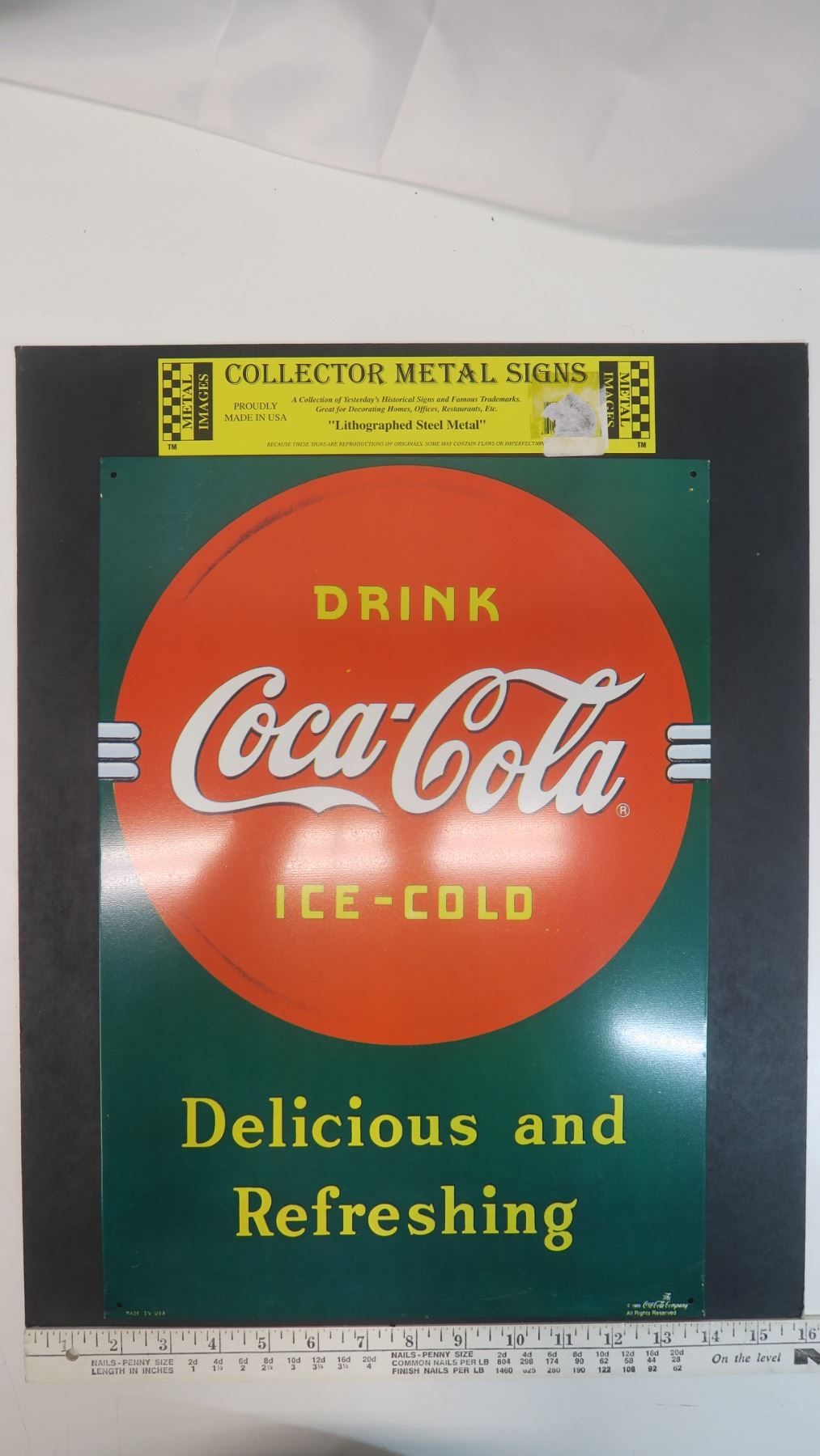 Coca-Cola Collector metal sign, red/orange & Green Coca-Cola