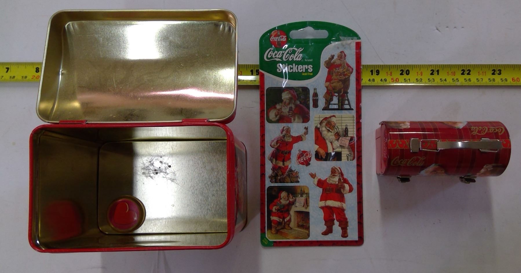 Coca Cola Lot - 2 Tins & Stickers