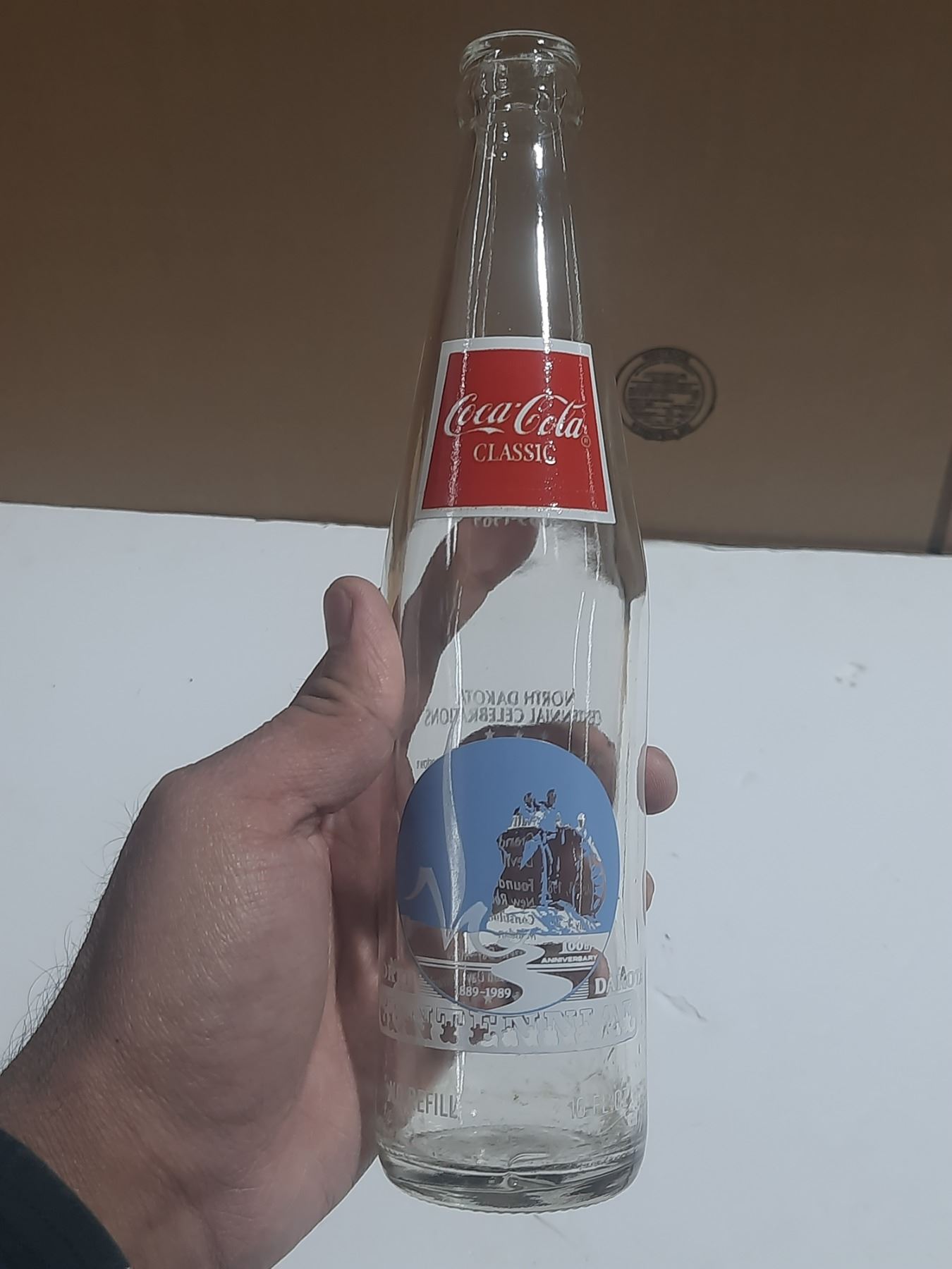 Coca Cola North Dakota 1889-1989 Empty Bottle.