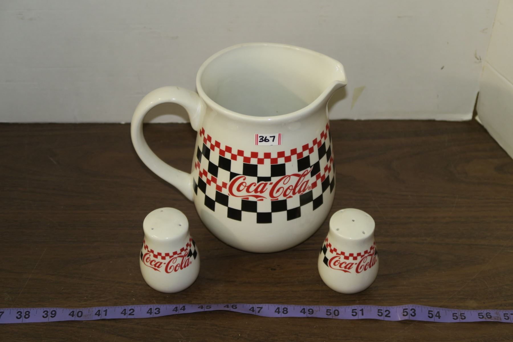 Coca Cola Pitcher & salt and pepper Shakers by Gibson