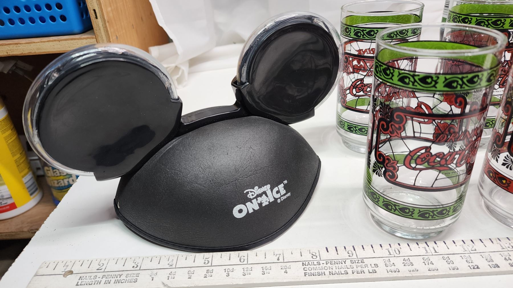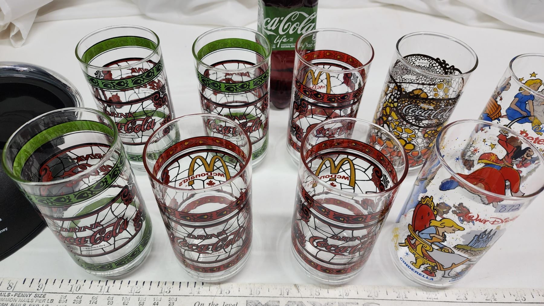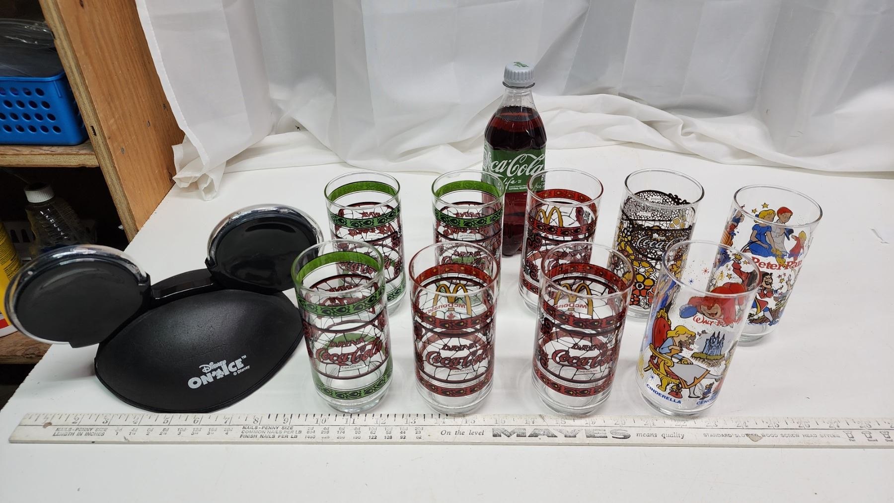 Coca-Cola vintage glasses - some disney - like new & Coco-Cola Life bottle, and Disney on Ice hat