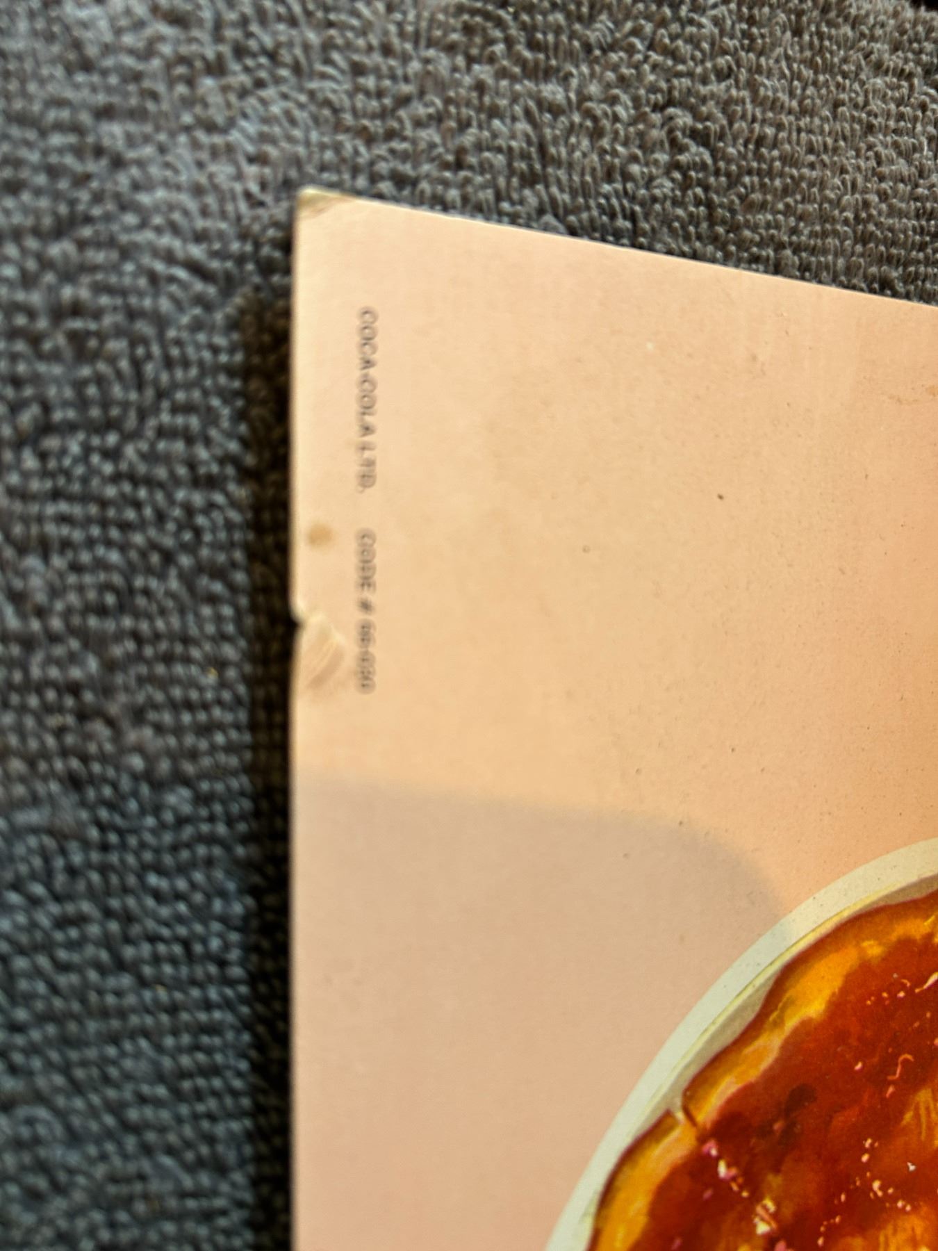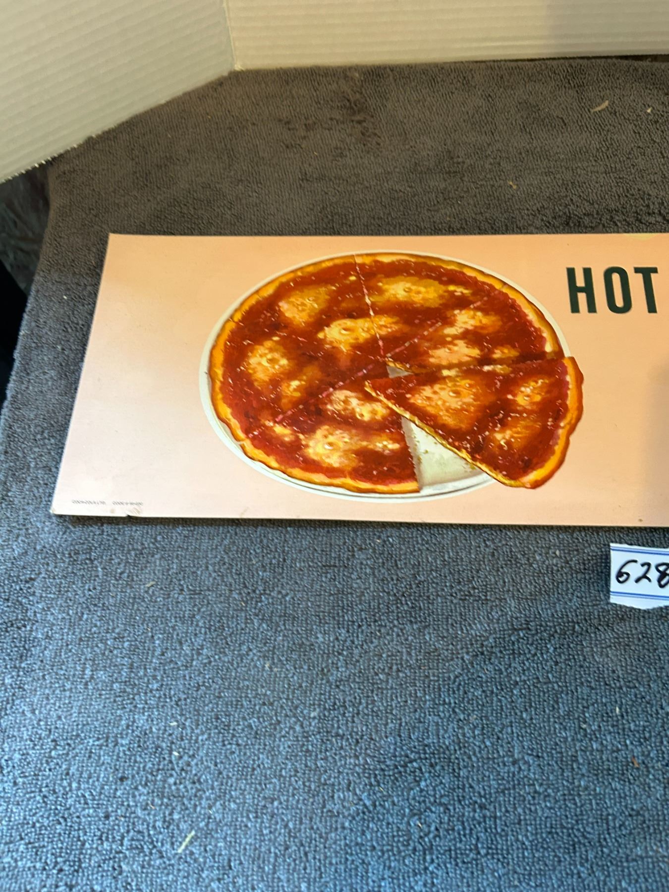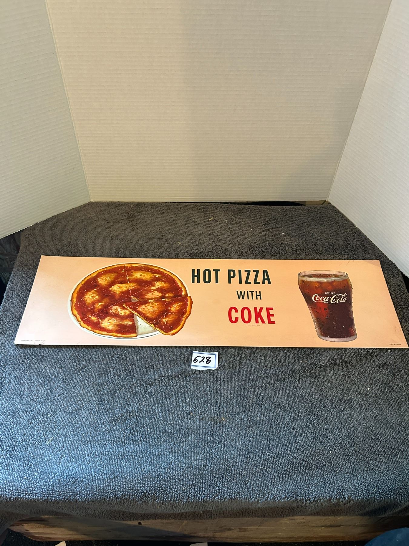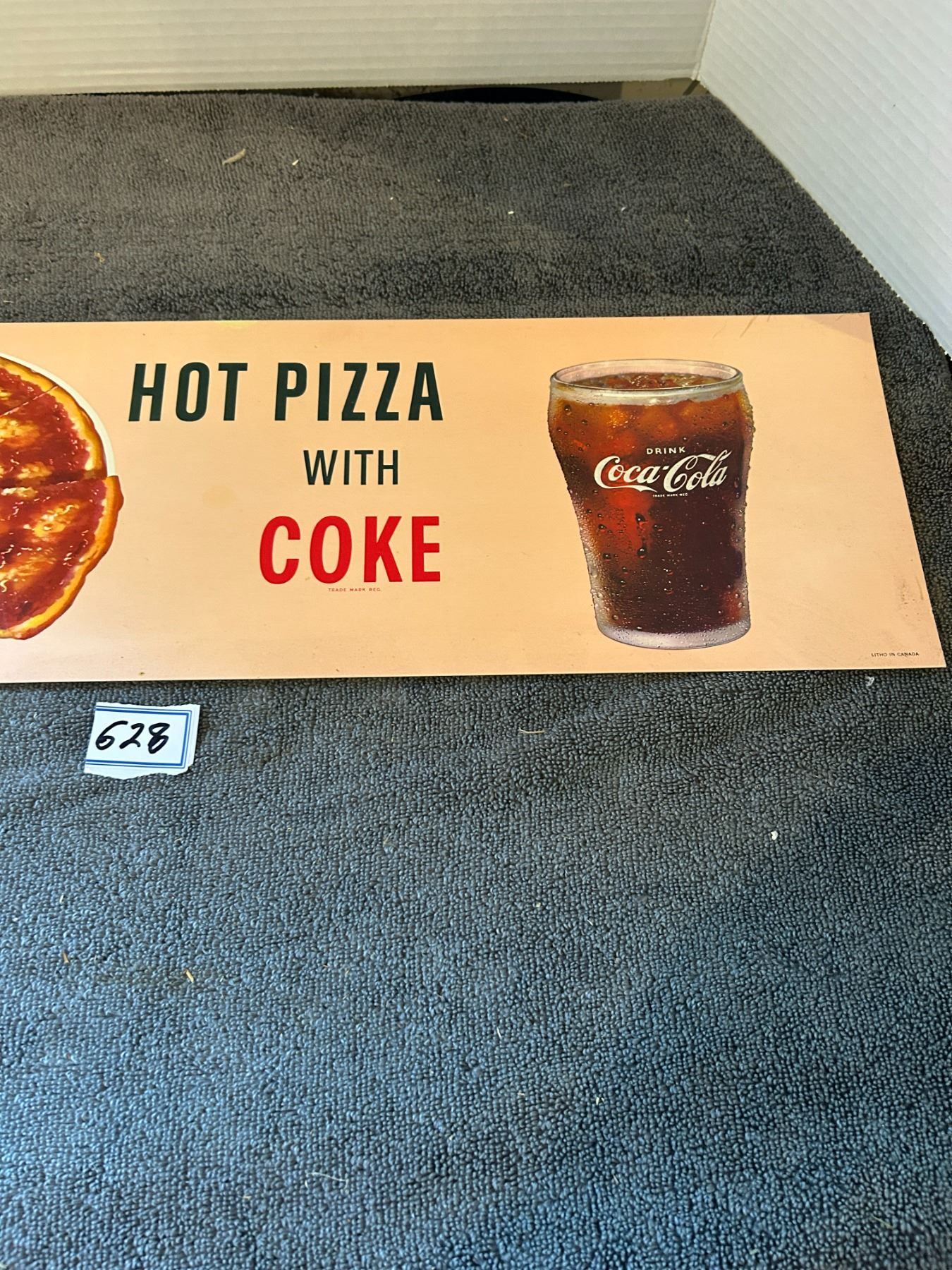 Coca cola cardboard sign- 1960's from soda shop "NOS" 24"x 7" hot pizza