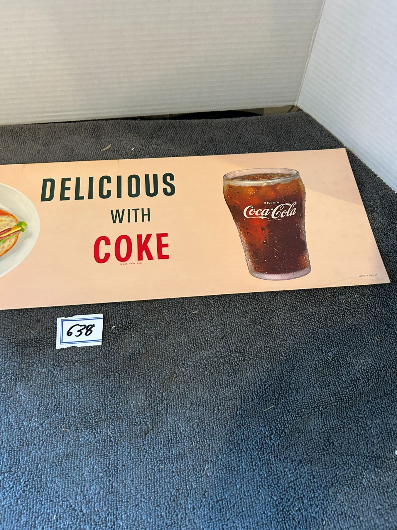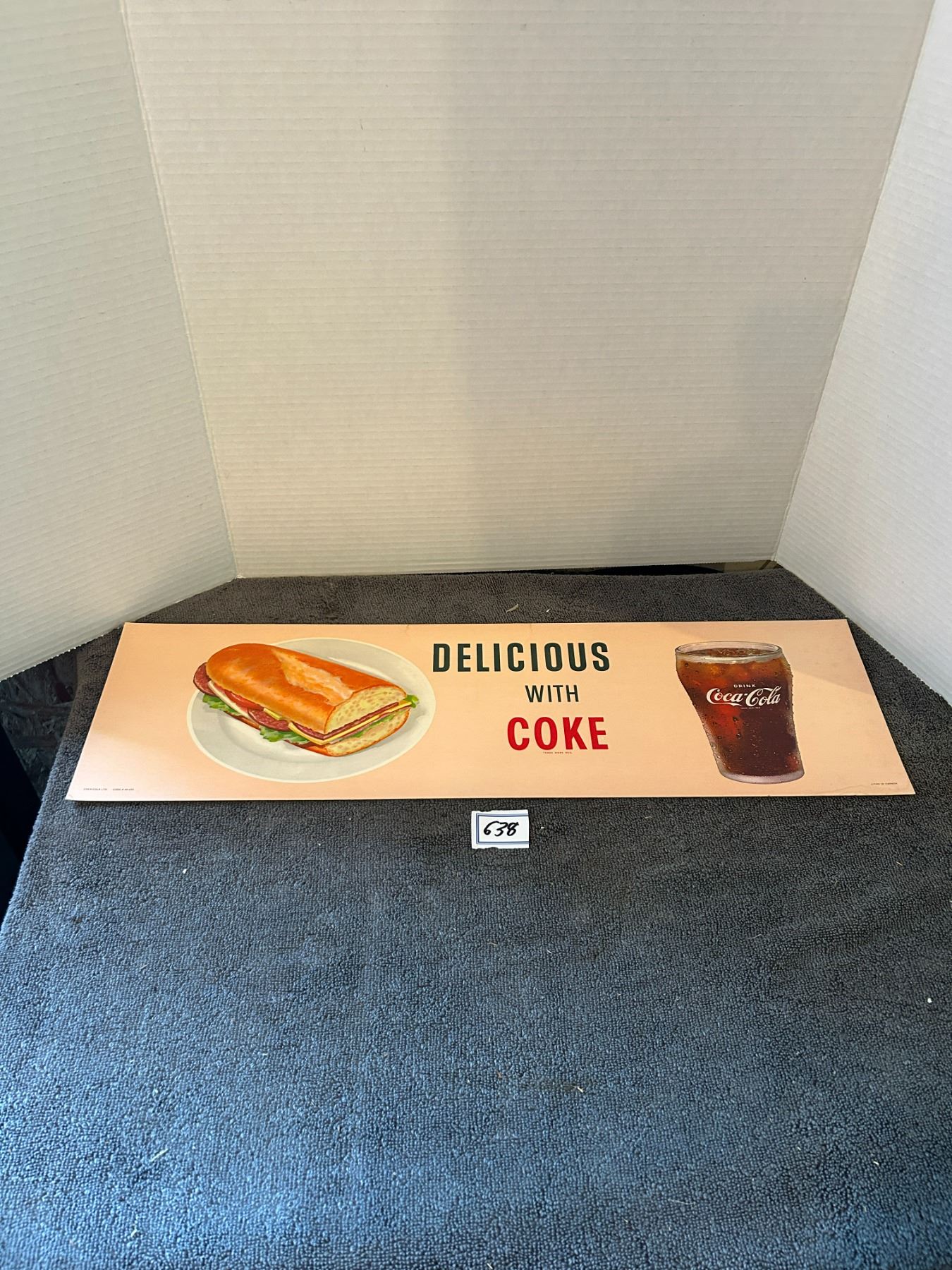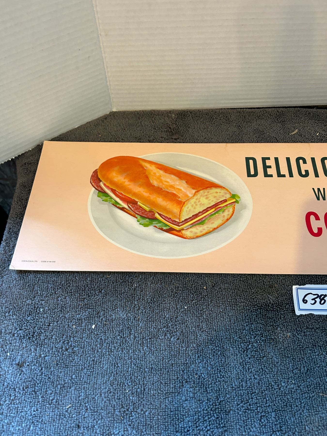 Coca cola cardboard sign- 1960;s from soda shop "NOS 24"x7"- Delicious