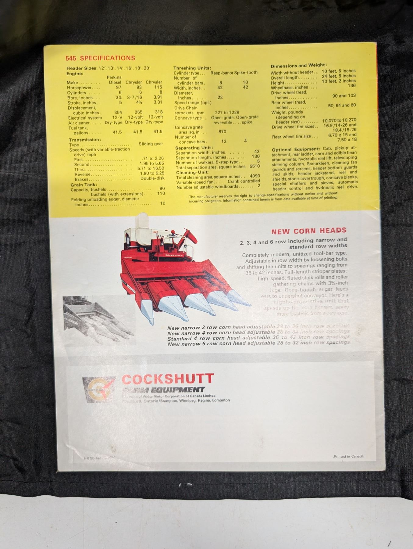 Cockshutt 545 Combine Brochure