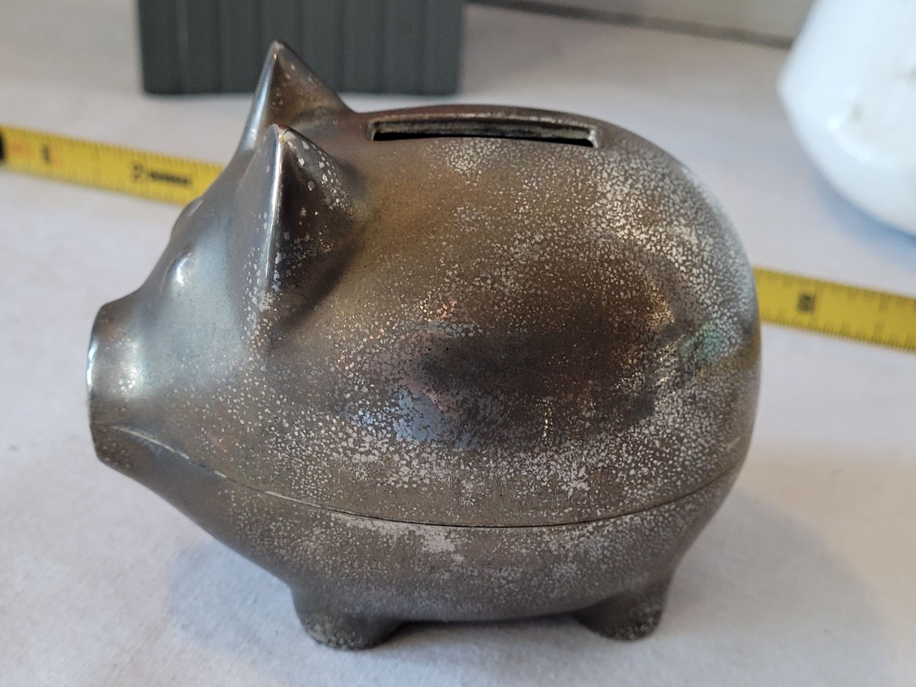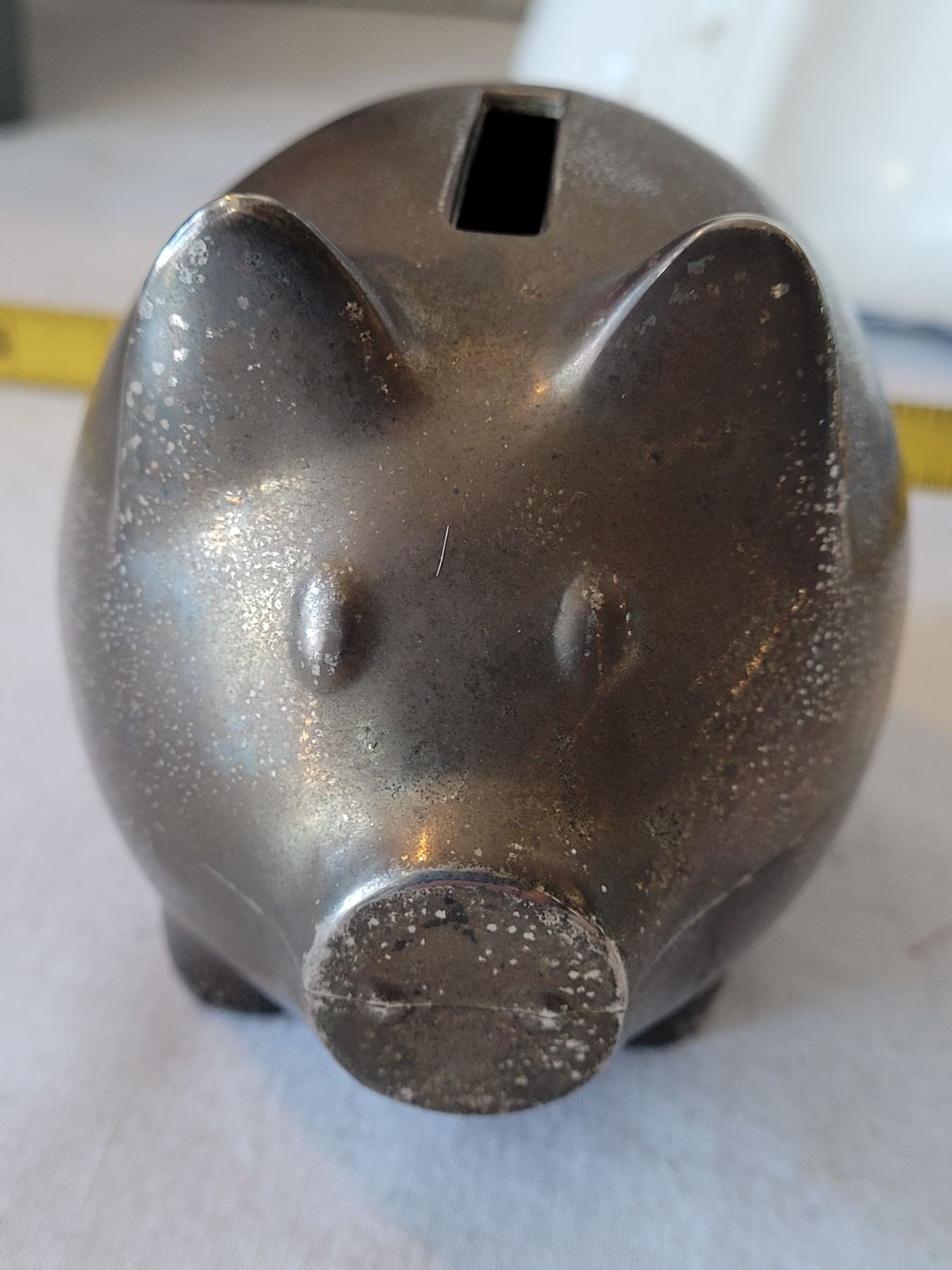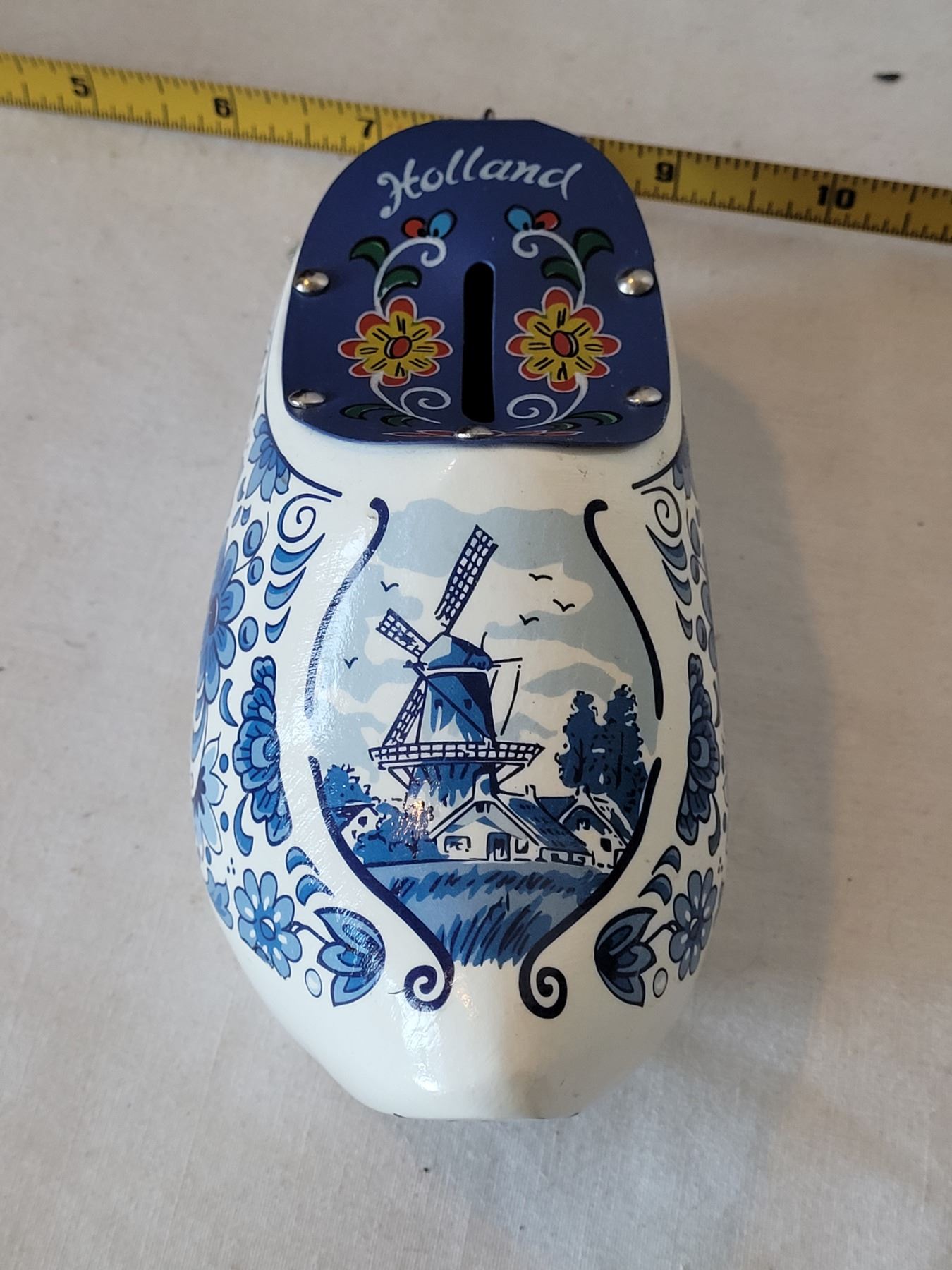 Coin Banks. Silver plated piggy, Canada post box & Holland hand painted shoe.(lock & key)