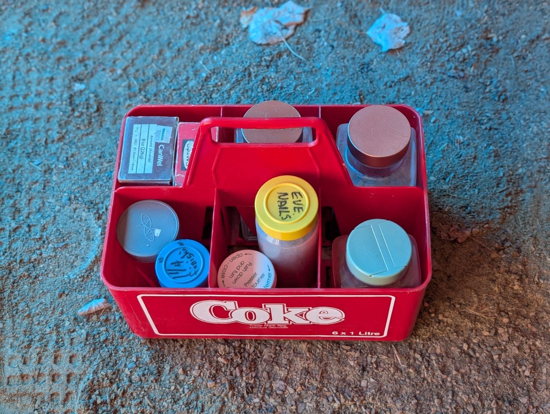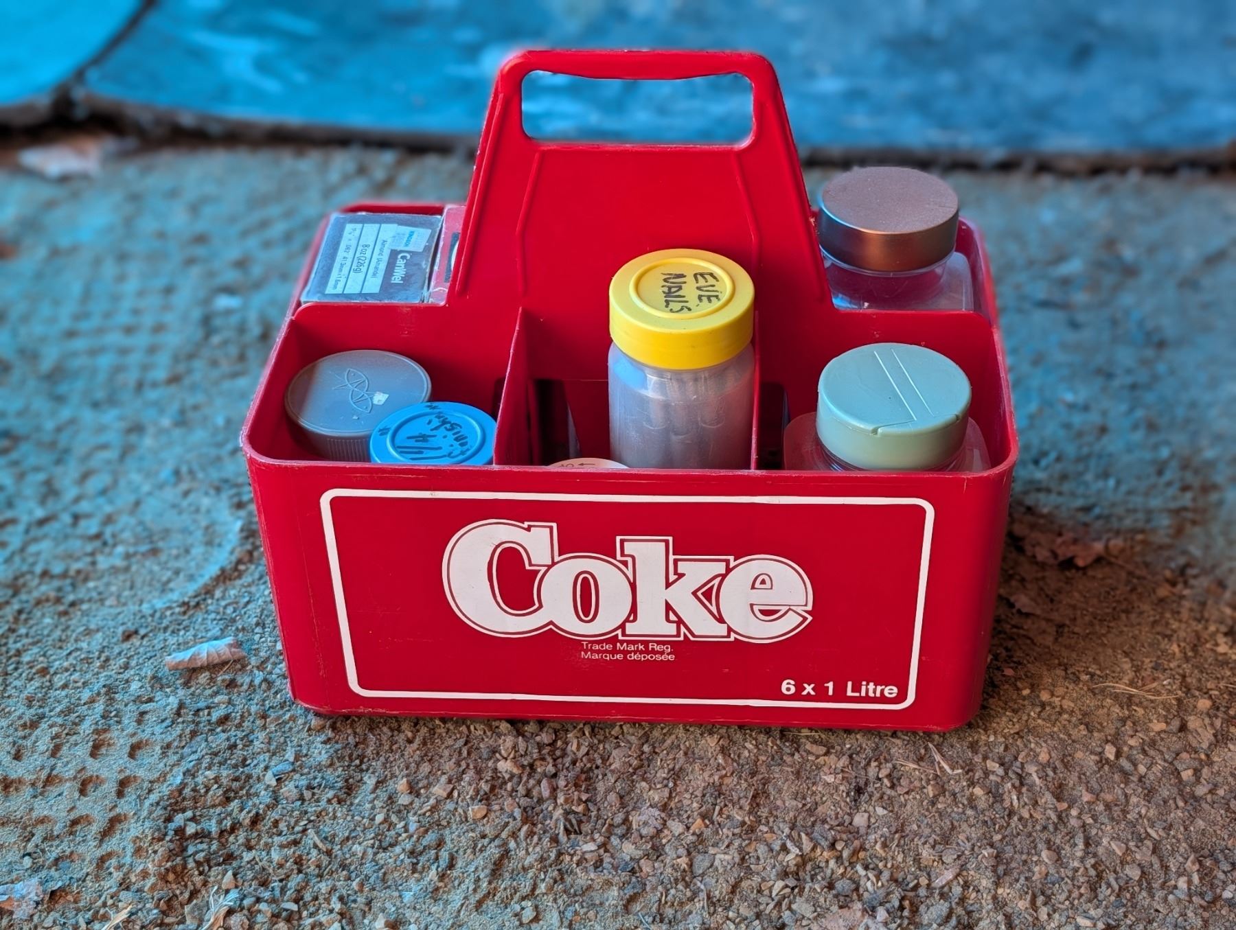 Coke Bottle holder w/ Variety of nails and etc.