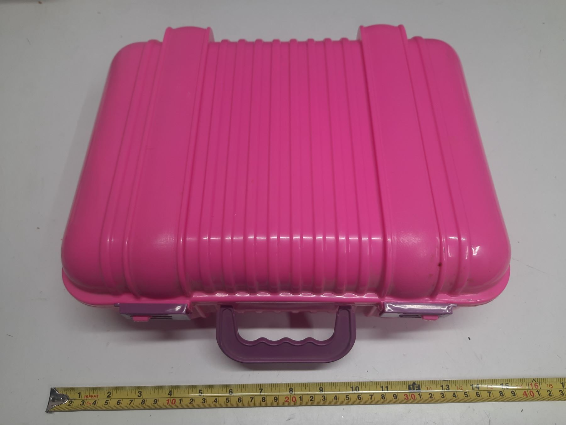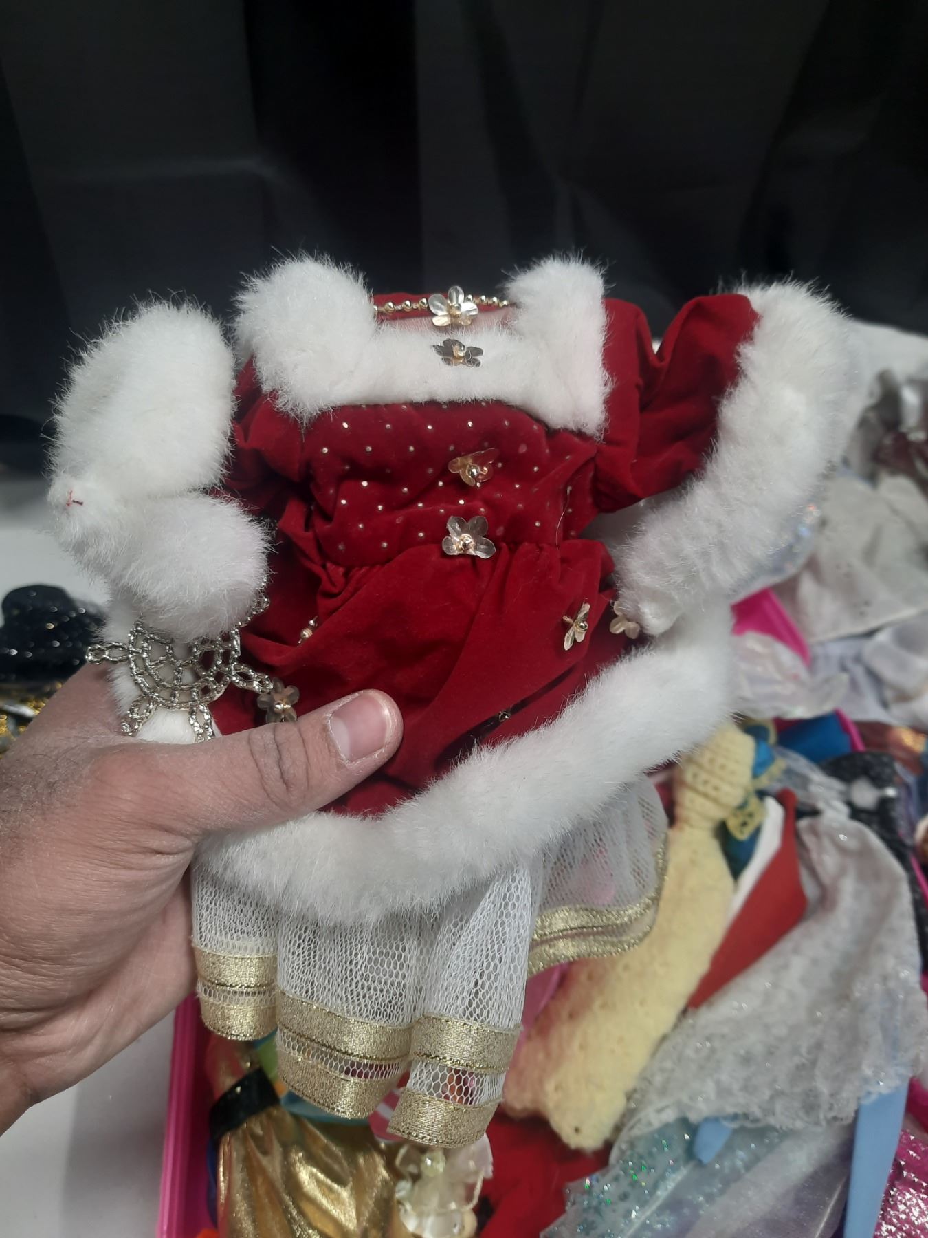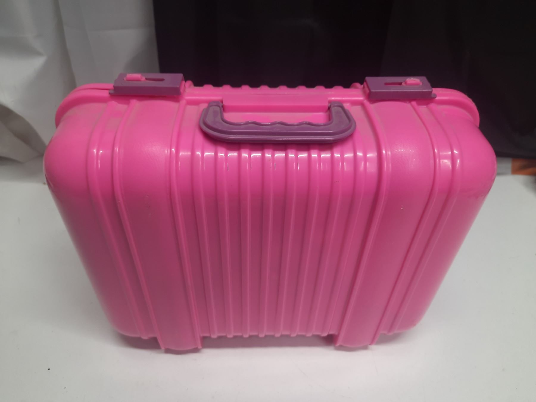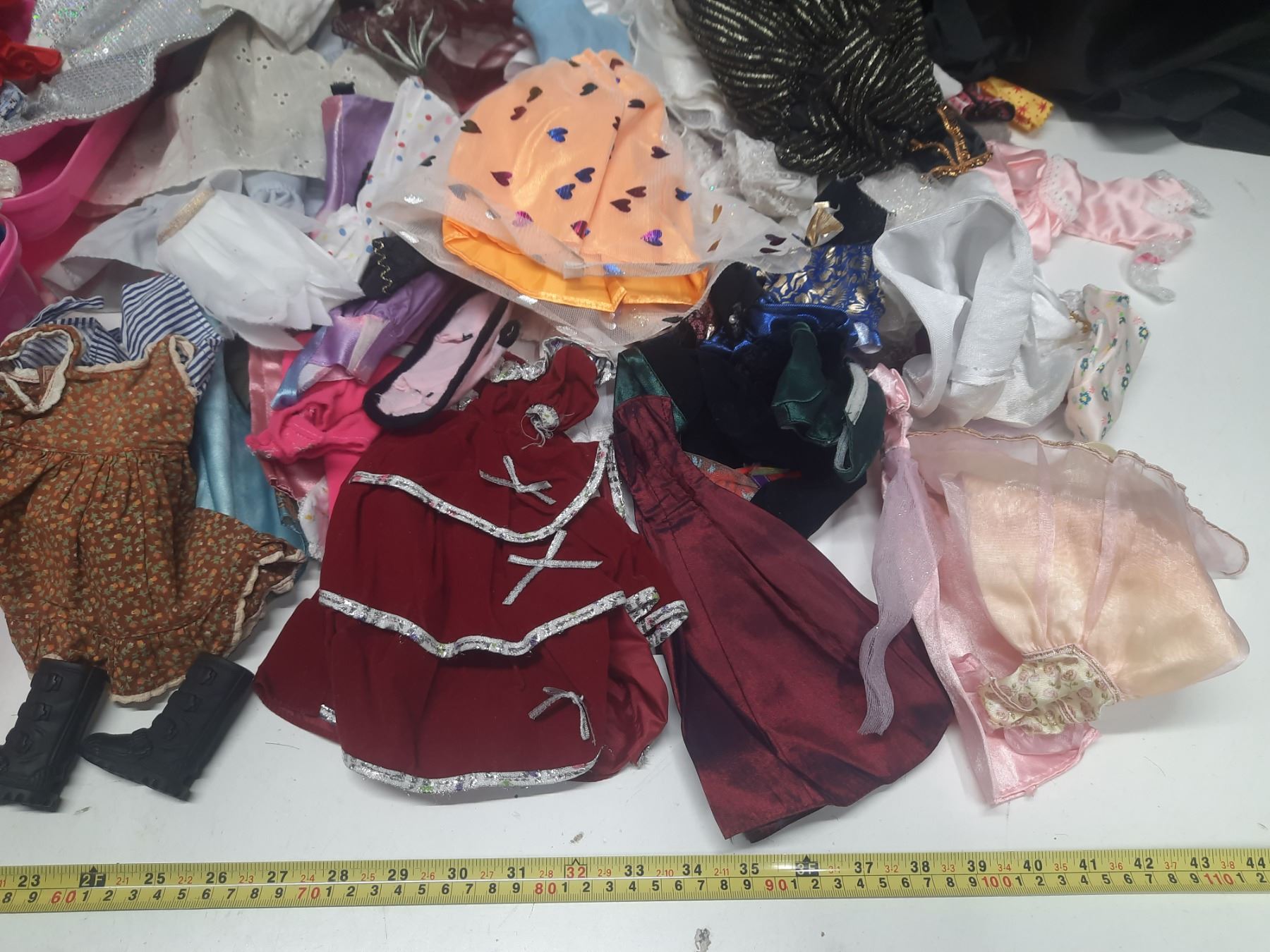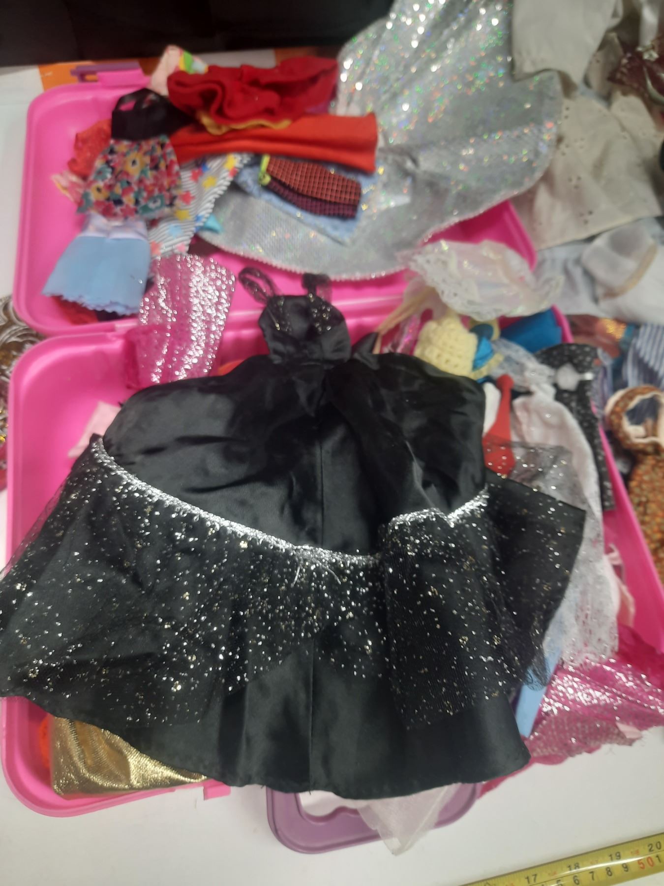 Collection of Vintage Doll Clothes of Different Sizes In Pink Case.