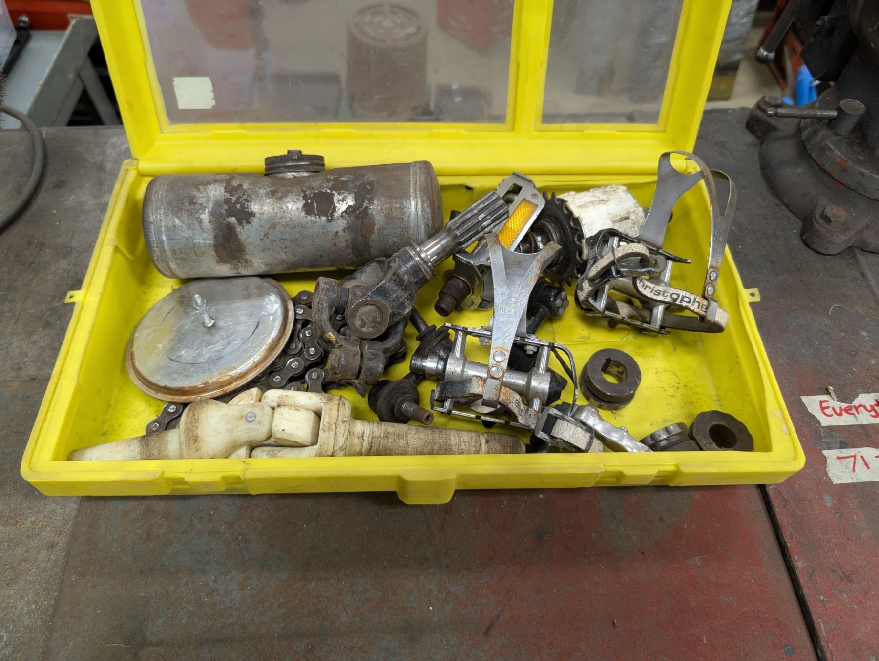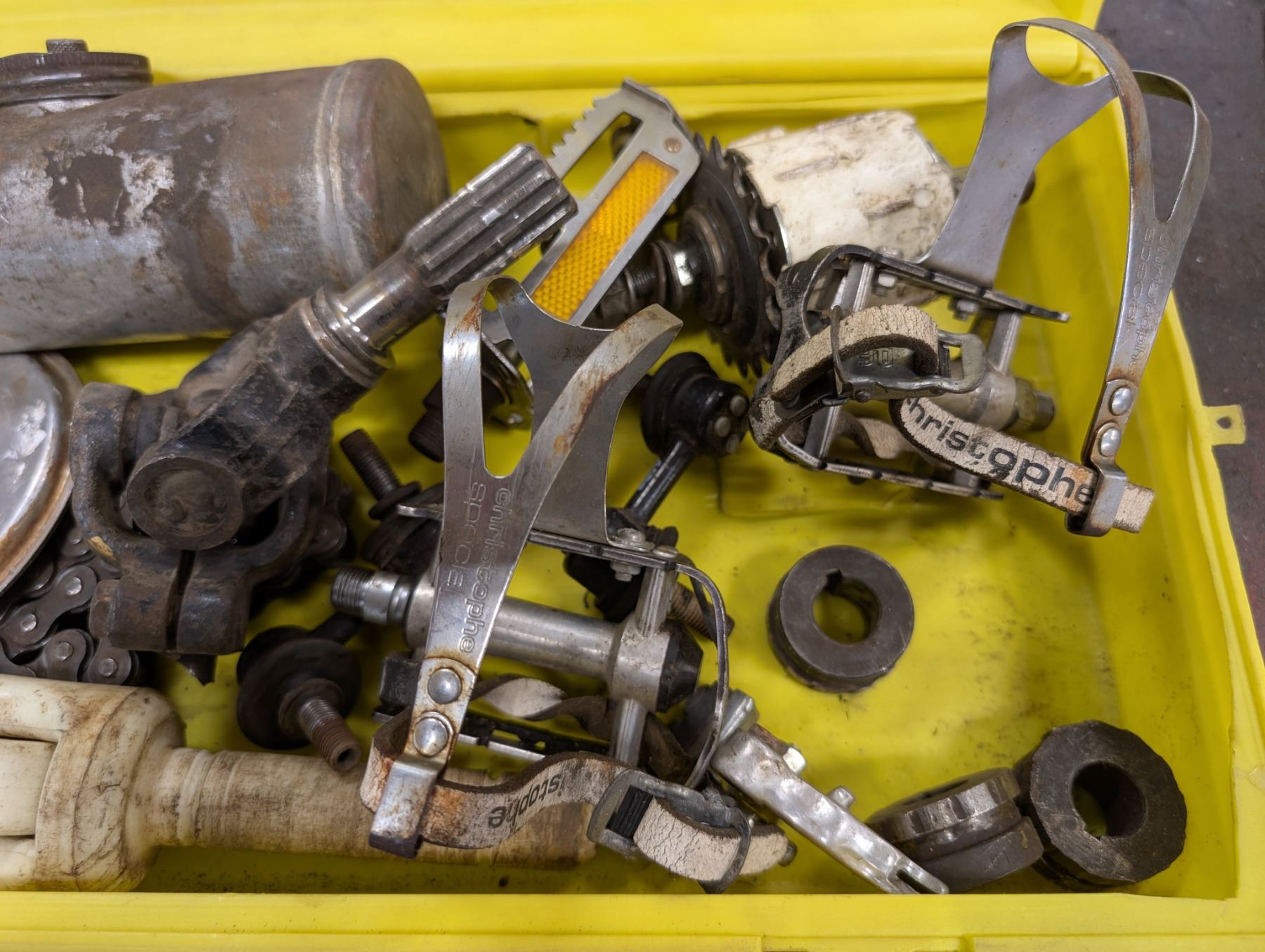 Collection of bike parts (Chains, Pedals, Gears, and etc.)