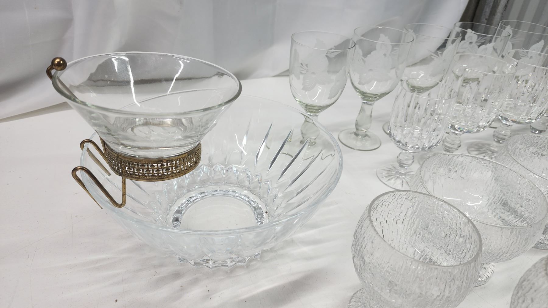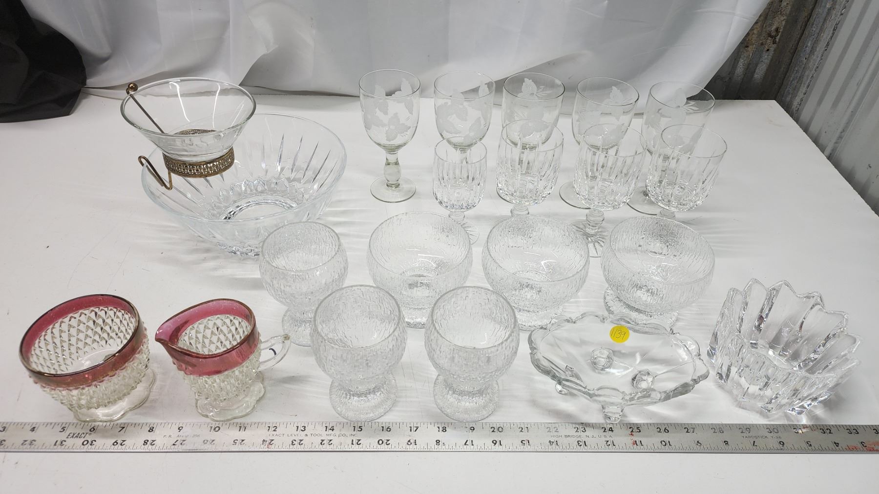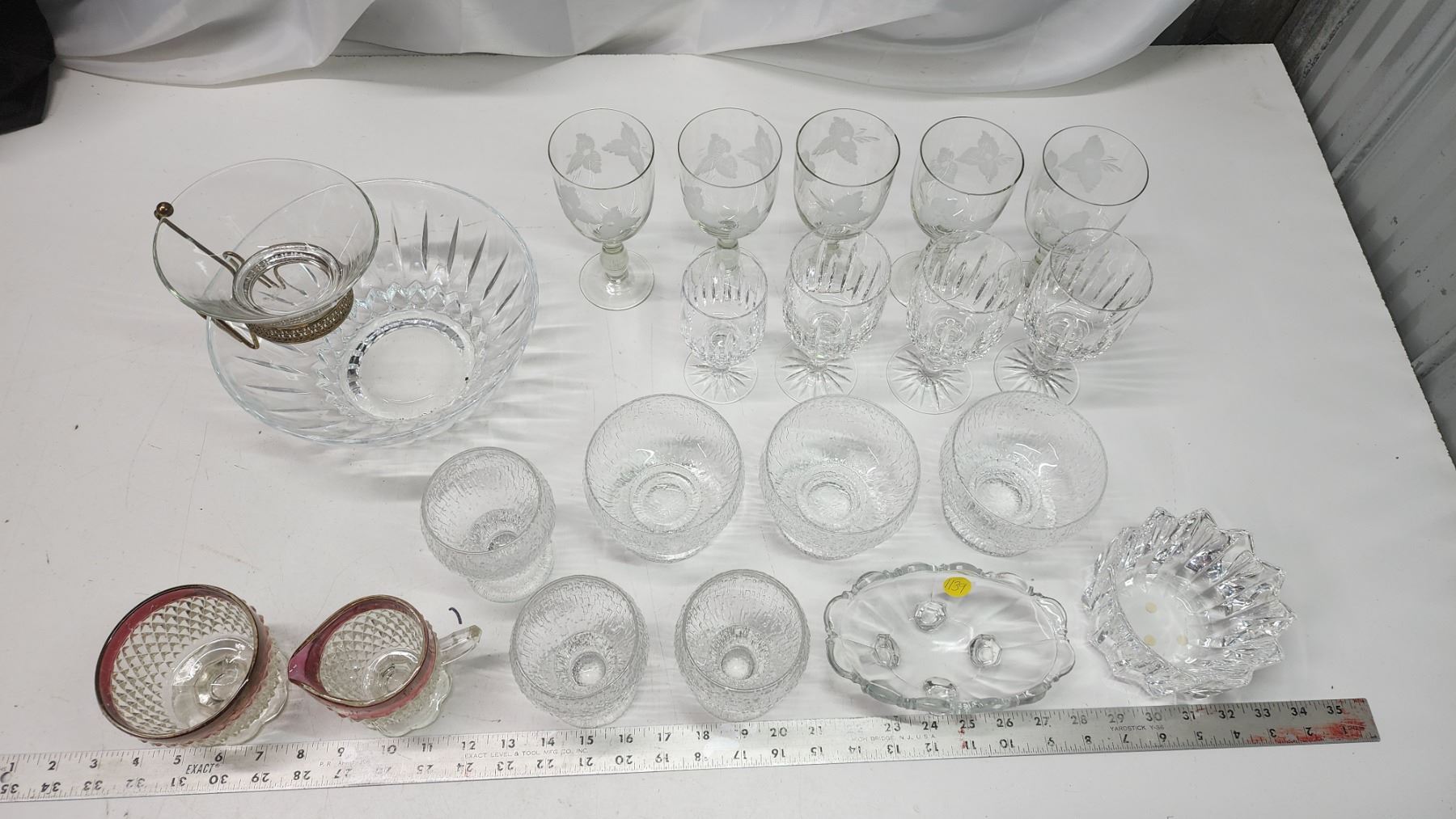 Collection of crystal glasswares - drinking glasses, bowl, vase, etc.