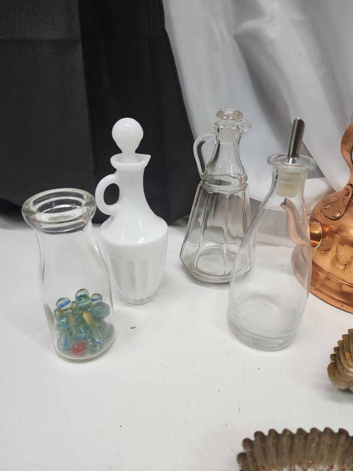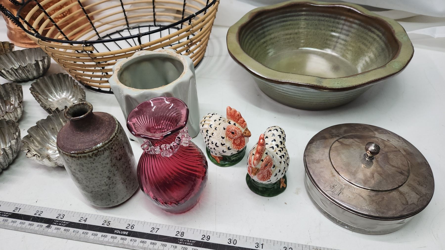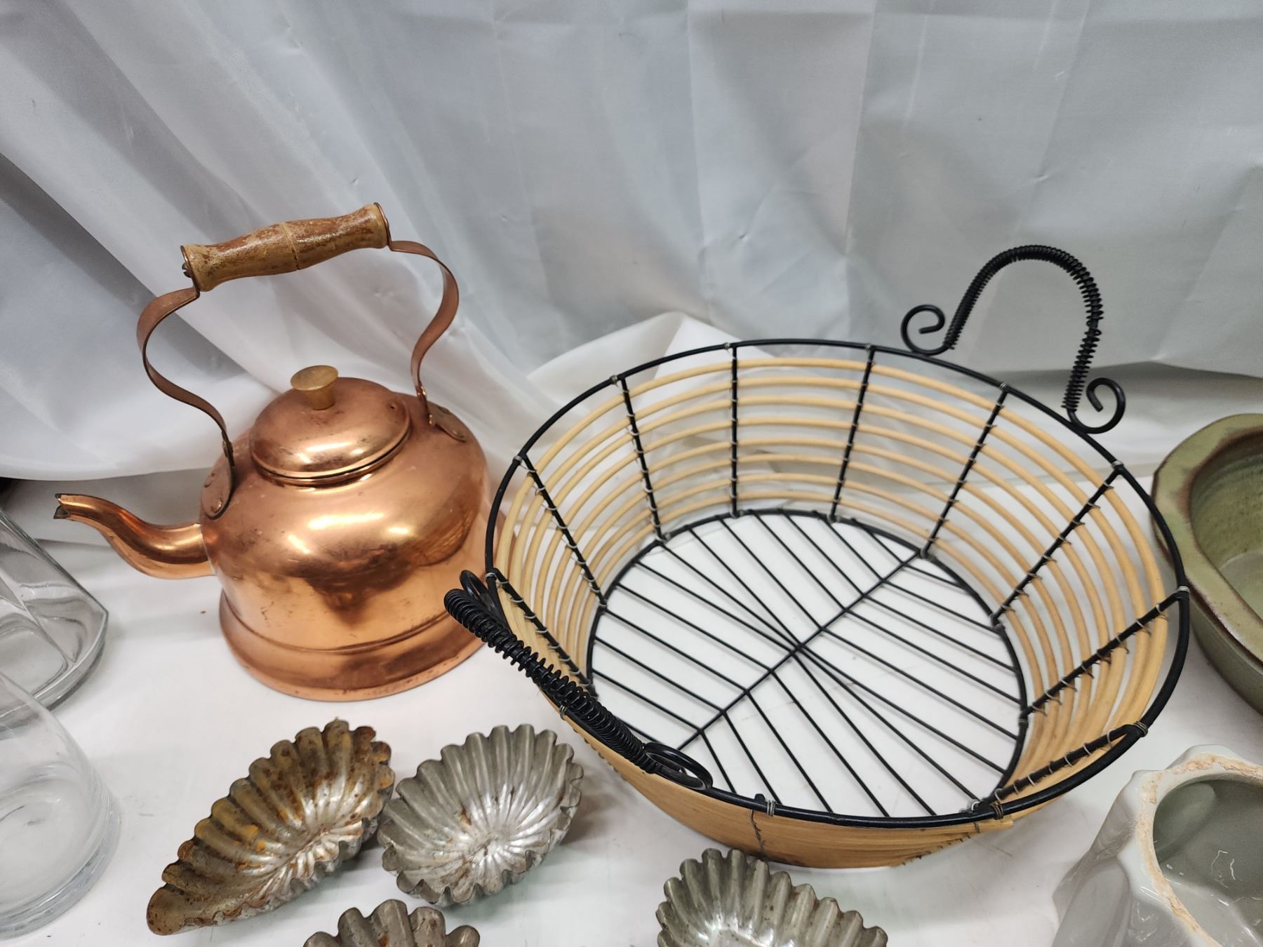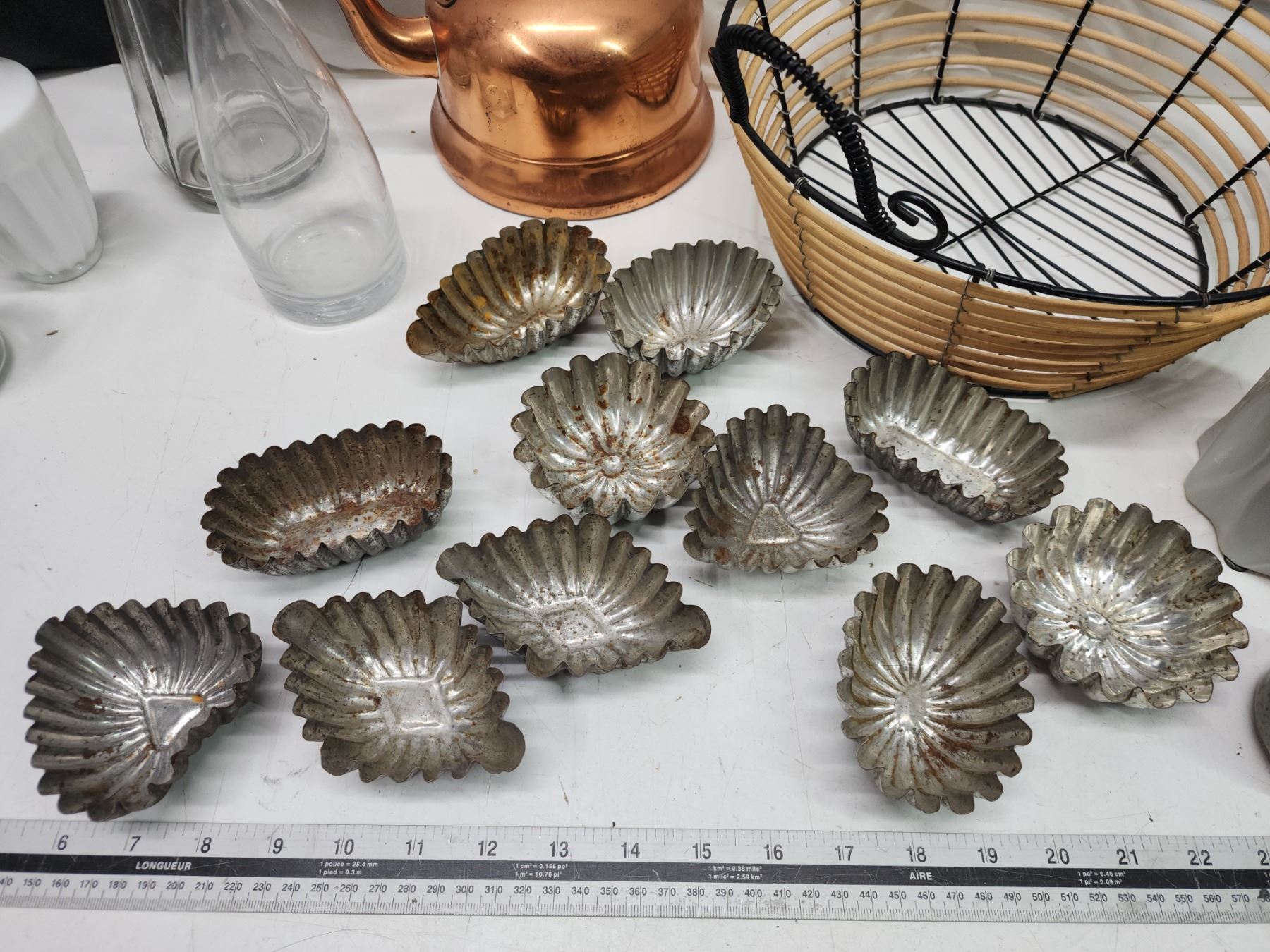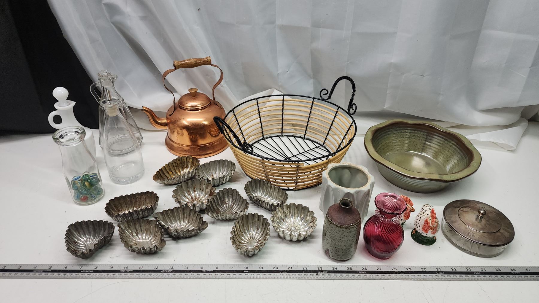 Collection of household items - Vases, tart molds, basket, copper teapot, etc.