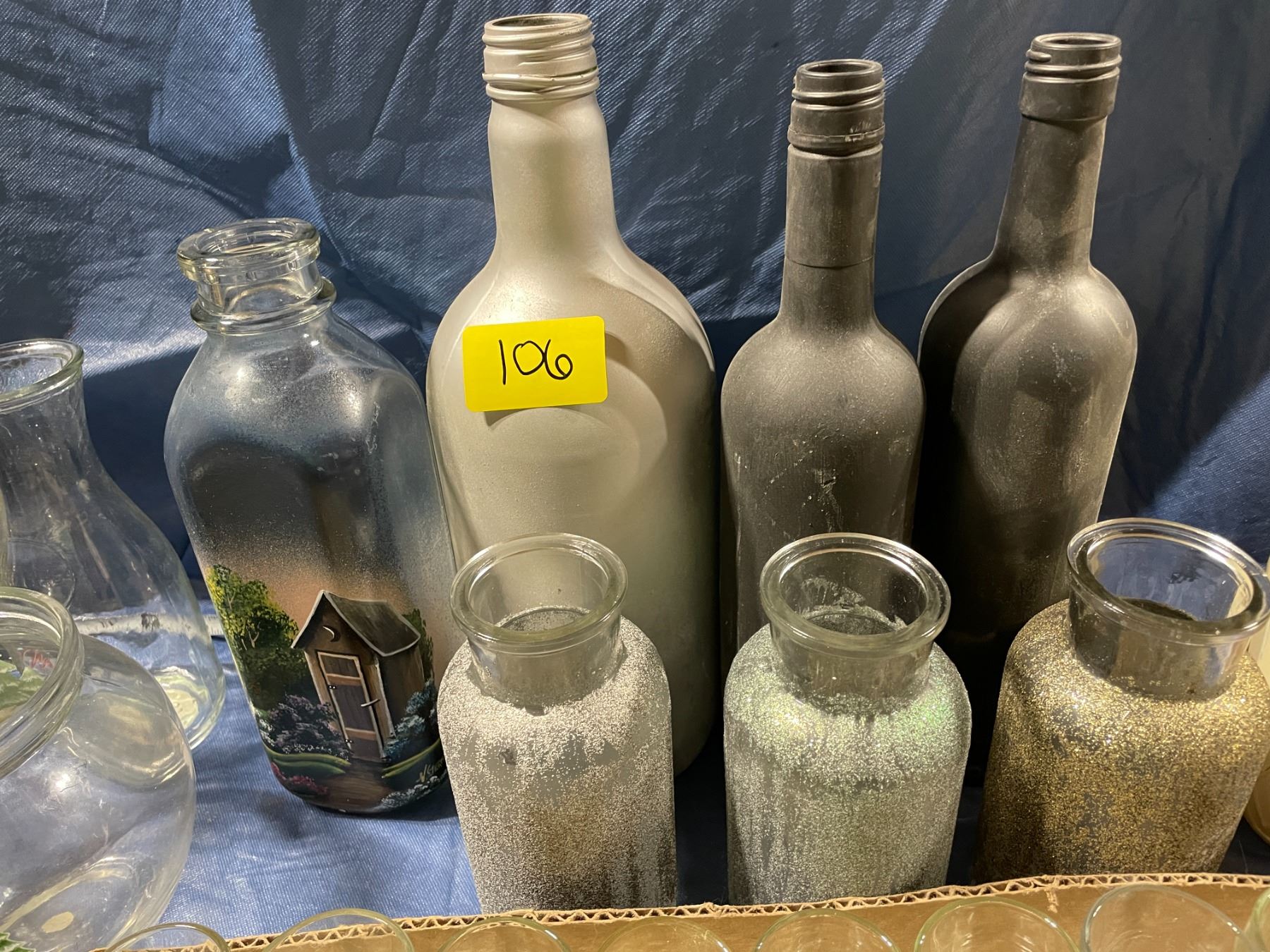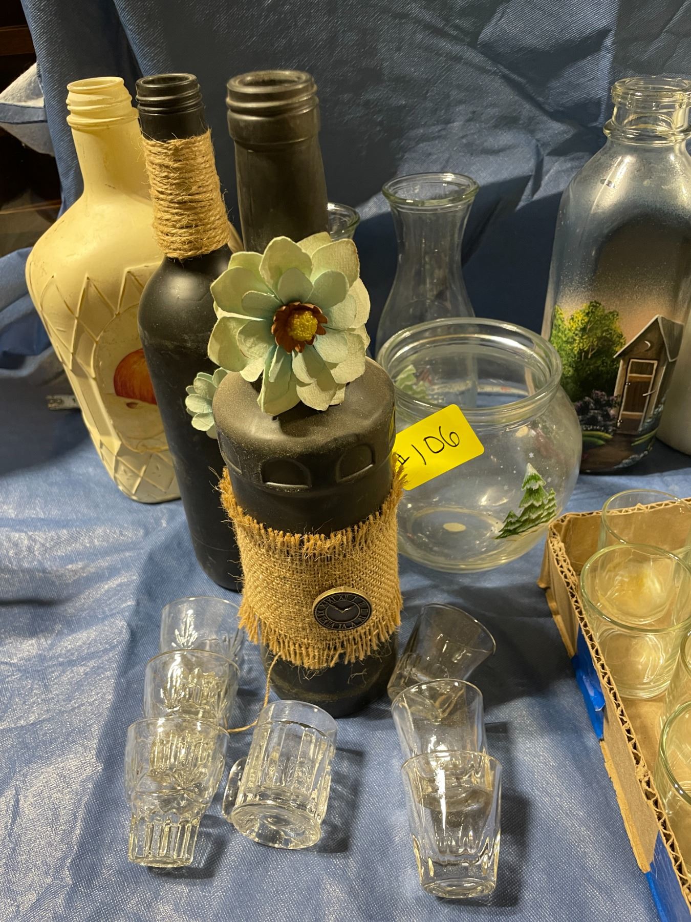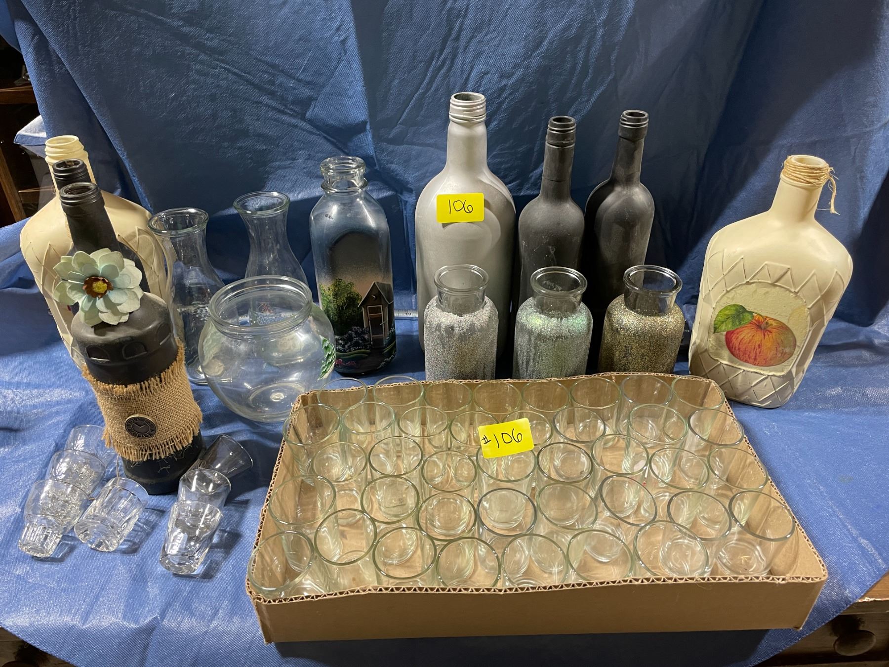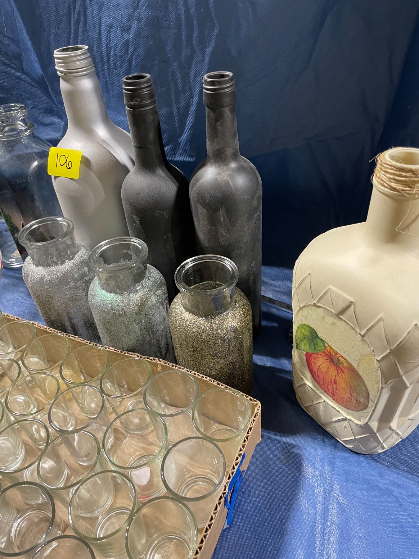 Collection of miscellaneous glass bottles, and shot glasses/ votive holders