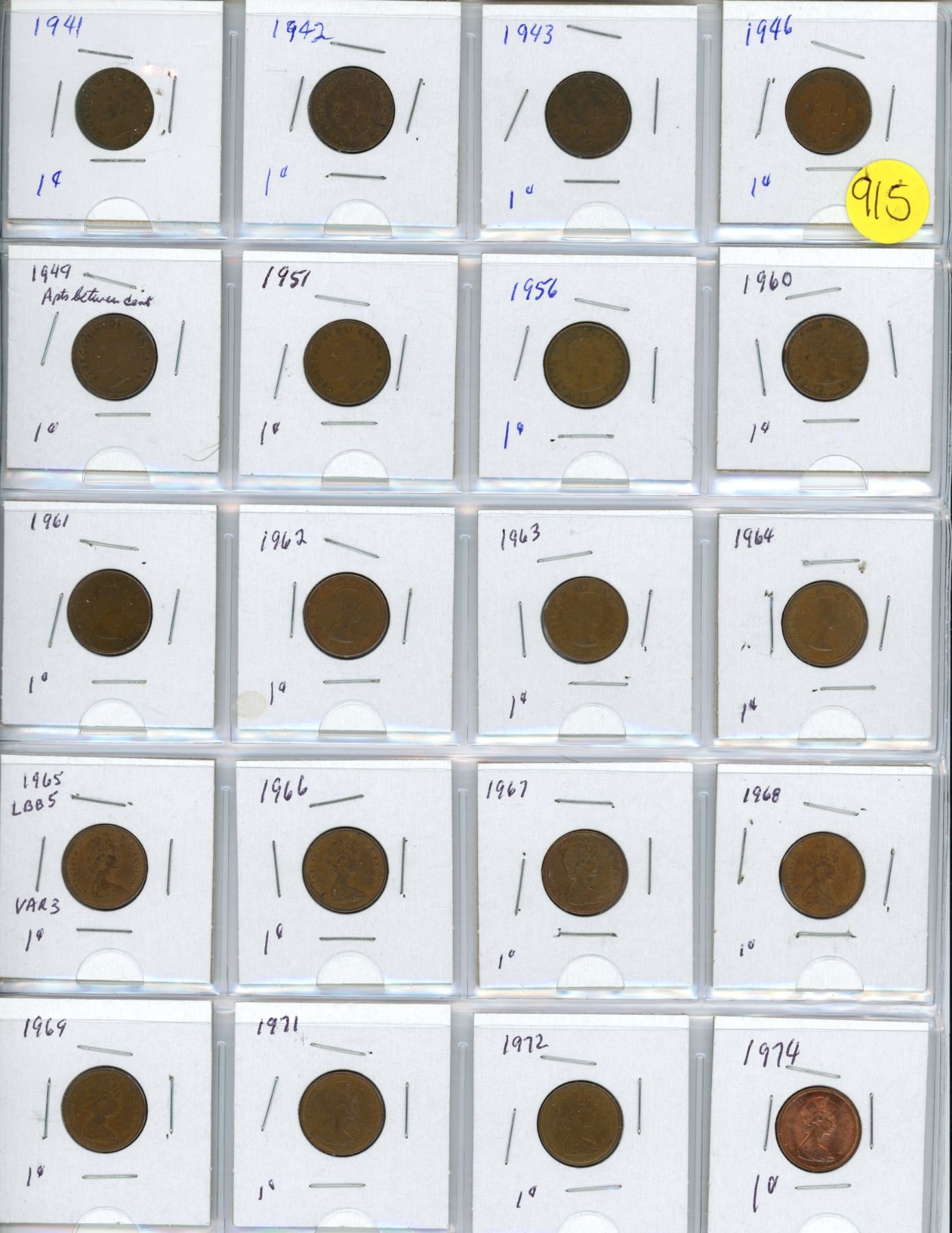 Collection of pennies 1941-1987 24 pennies 1965 LBBS var 3