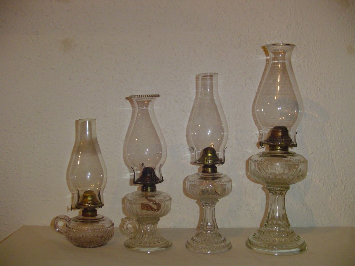 Complete Set Of 4 Late 1800'S Dog Tooth Coal Oil Lamps