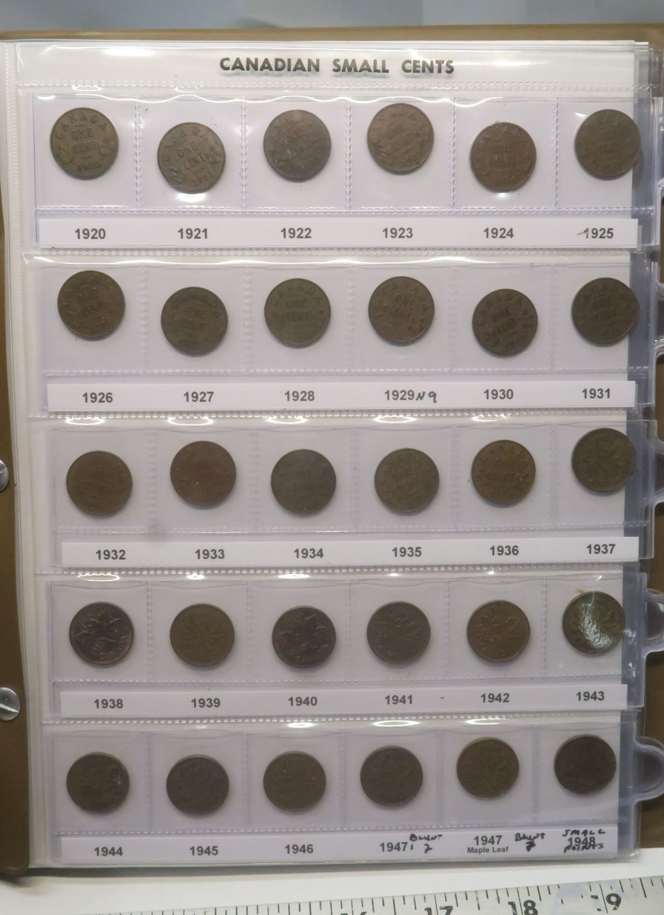 Complete Set of Canadian Small Cents 1920 – 2012. Includes Key Dates 1922, 1923, 1924, 1925 & 1926.