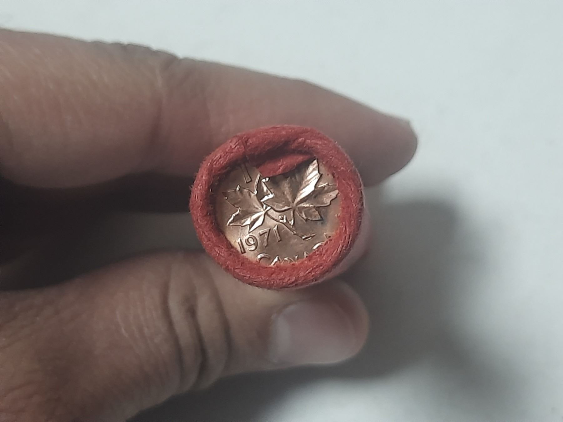 Complete original roll of 50 1971 Canadian Small Cents. Still in their original Brink’s roll. BU Red.